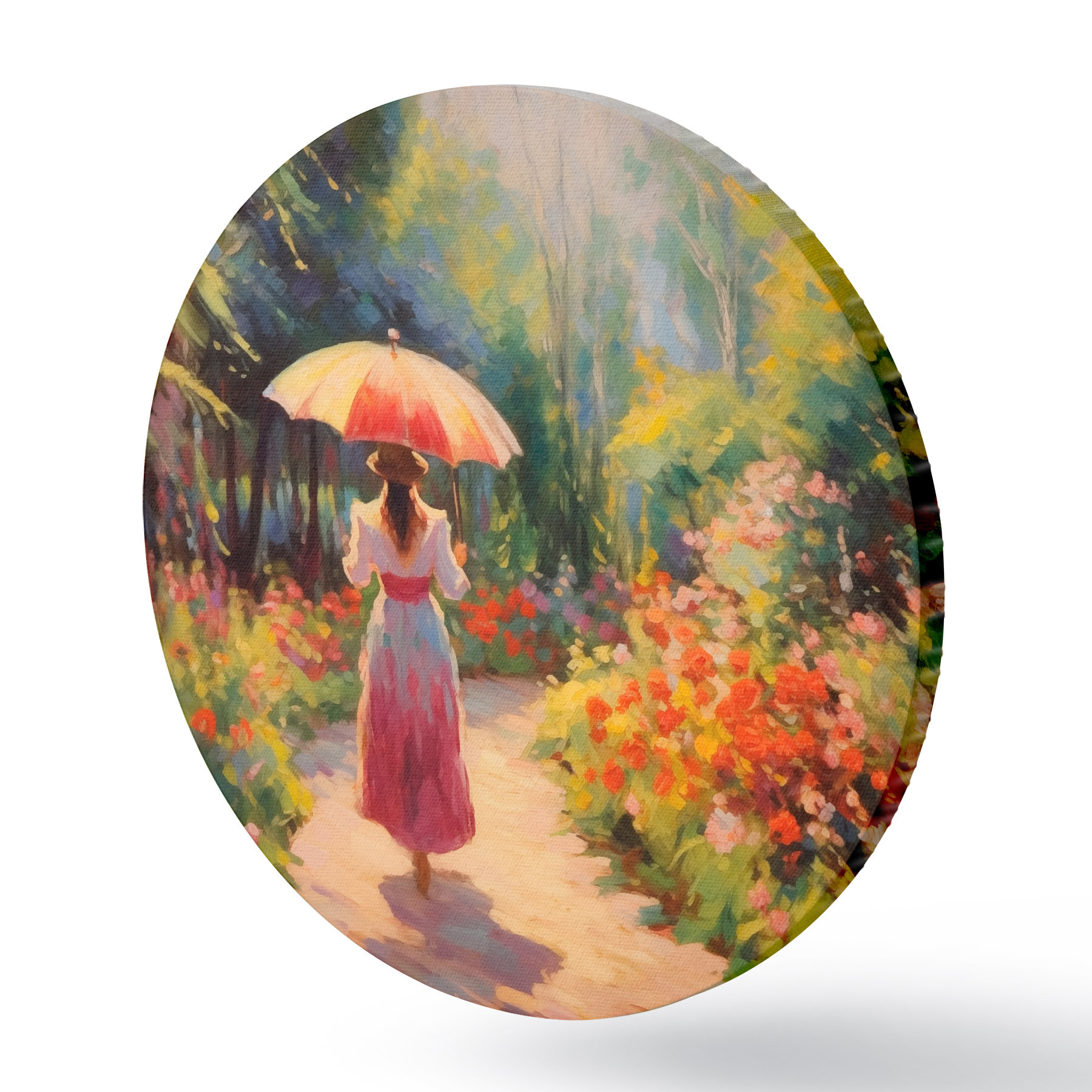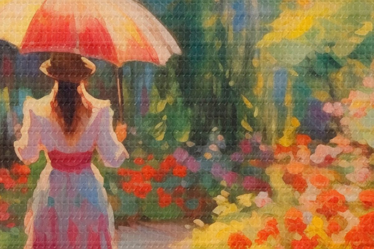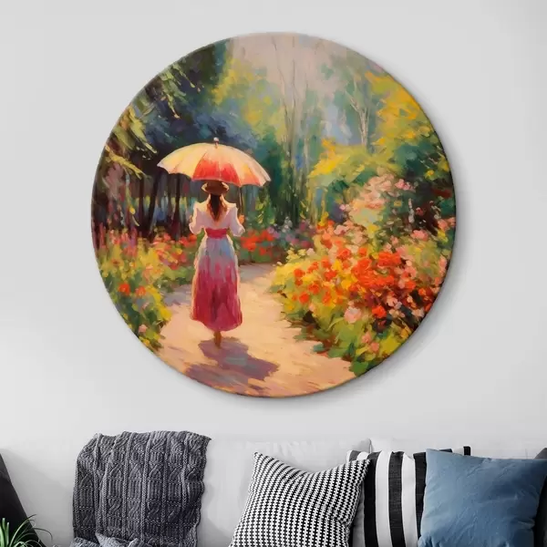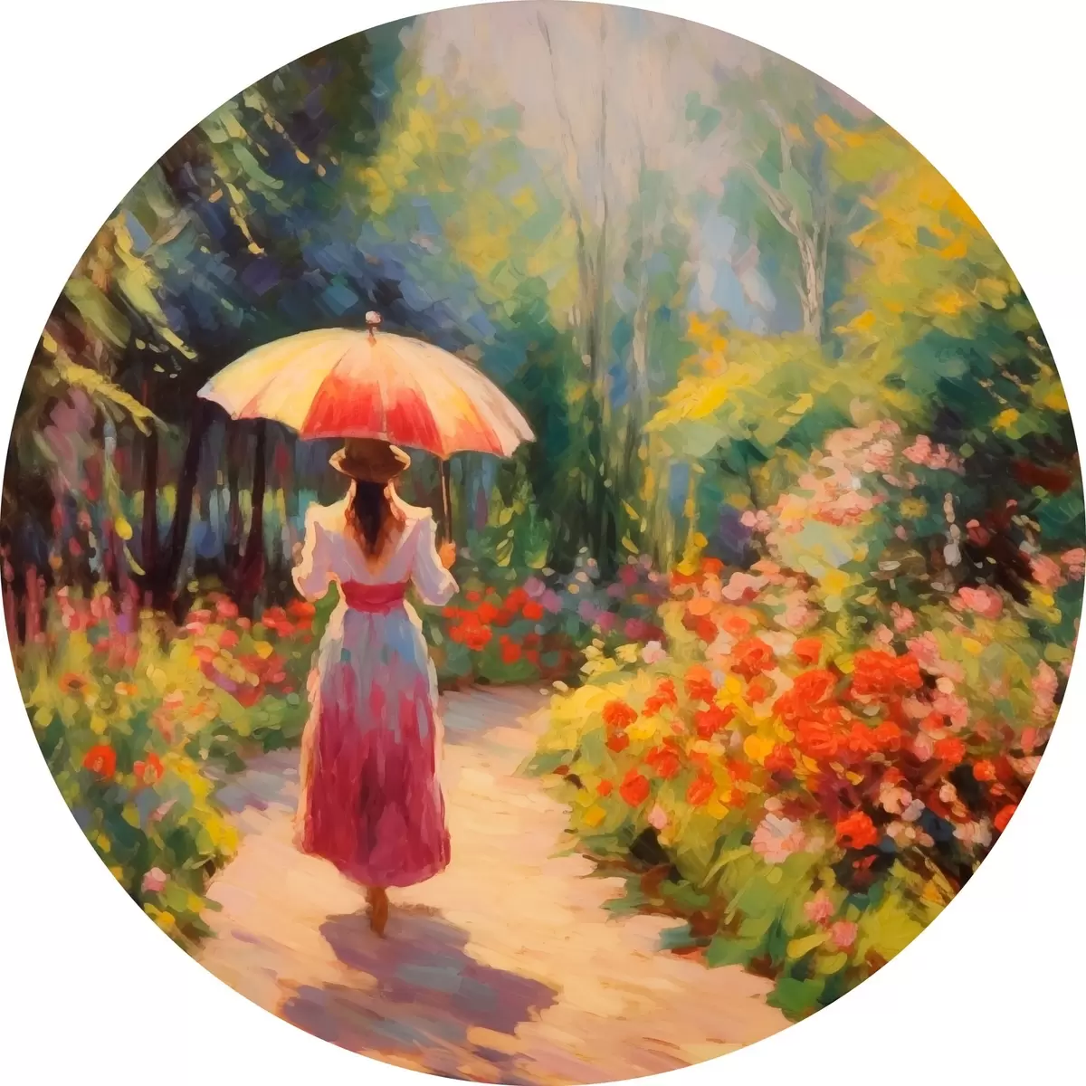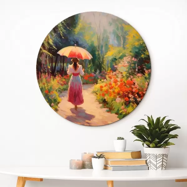 Pilt Daam vihmavarjuga õitsvas aias Nr r41495