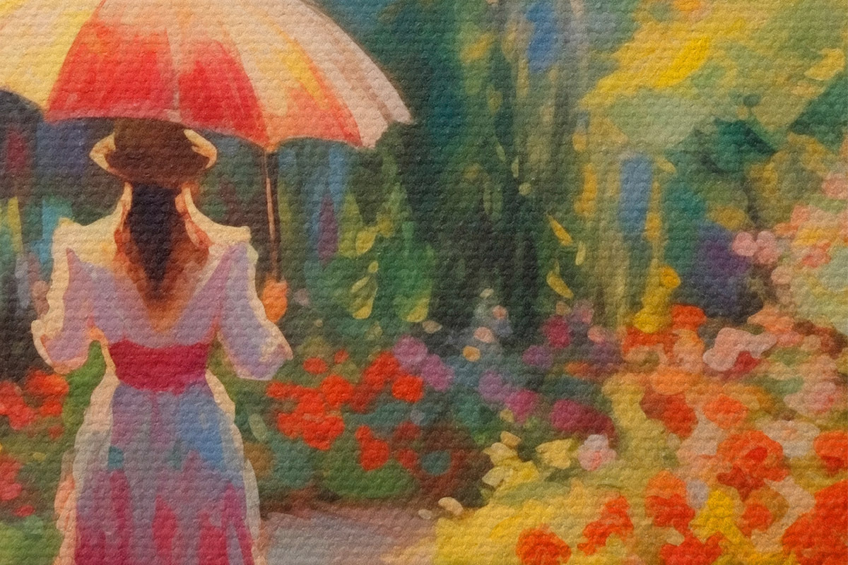 Selle lõuendi peenike niidipunus meenutab professionaalse kunstniku lõuendi pinda.