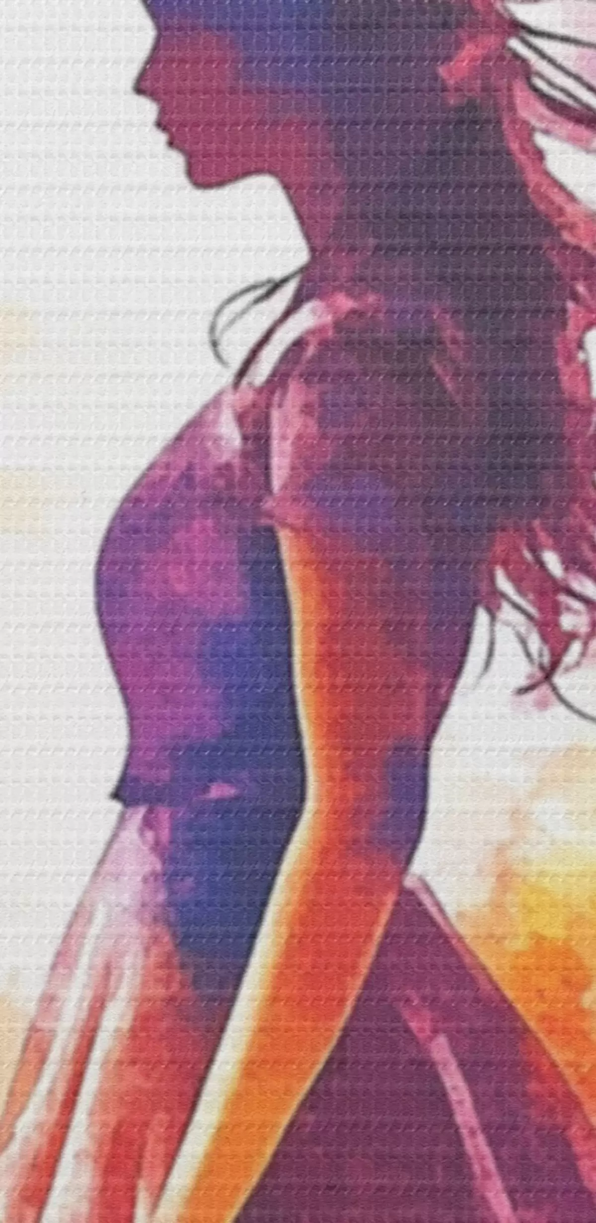Selle lõuendi peenike niidipunus meenutab professionaalse kunstniku lõuendi pinda.