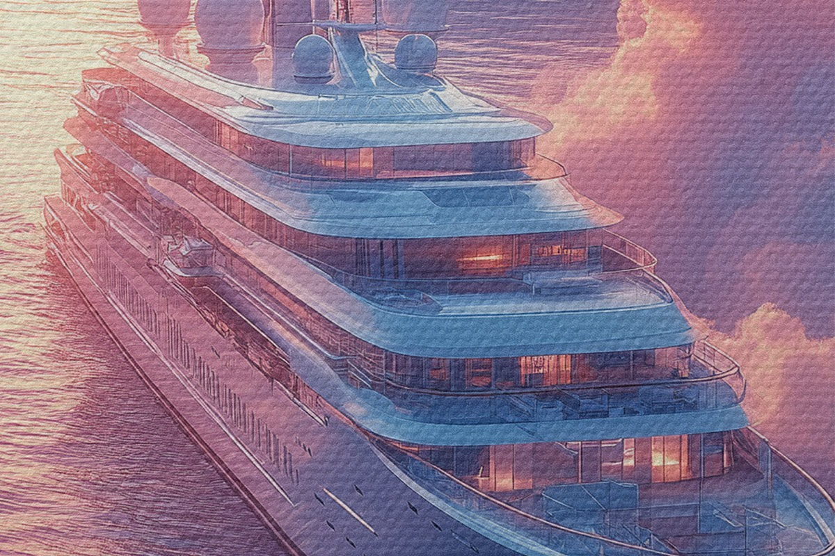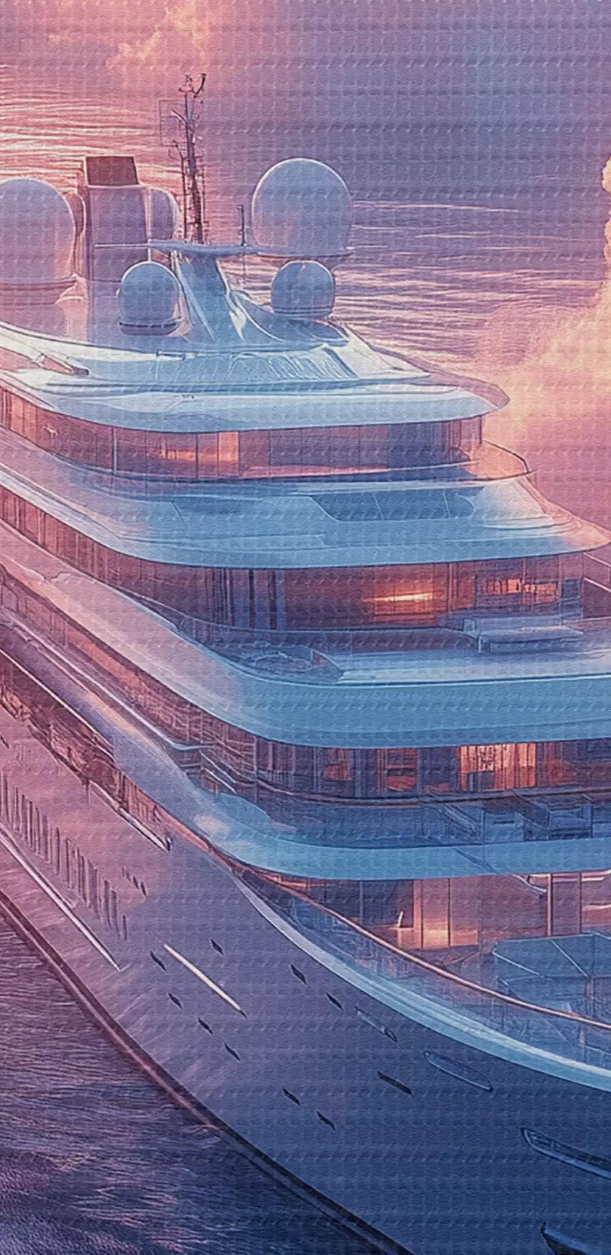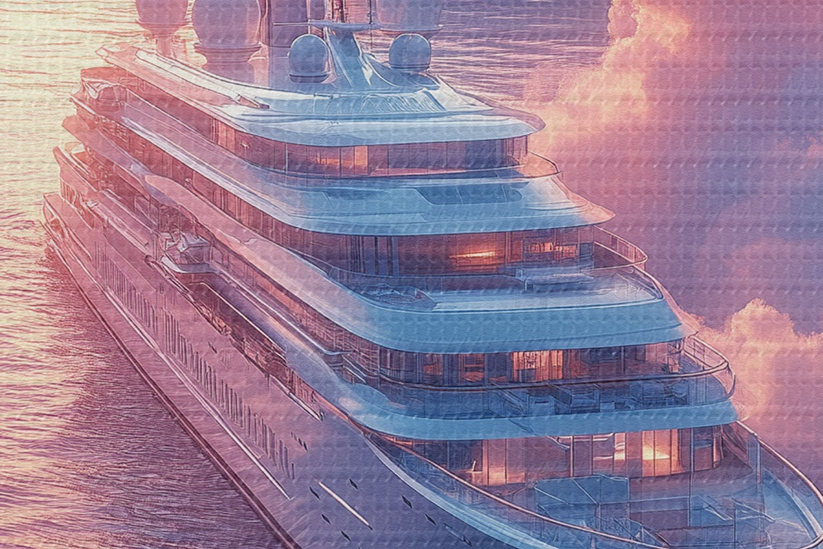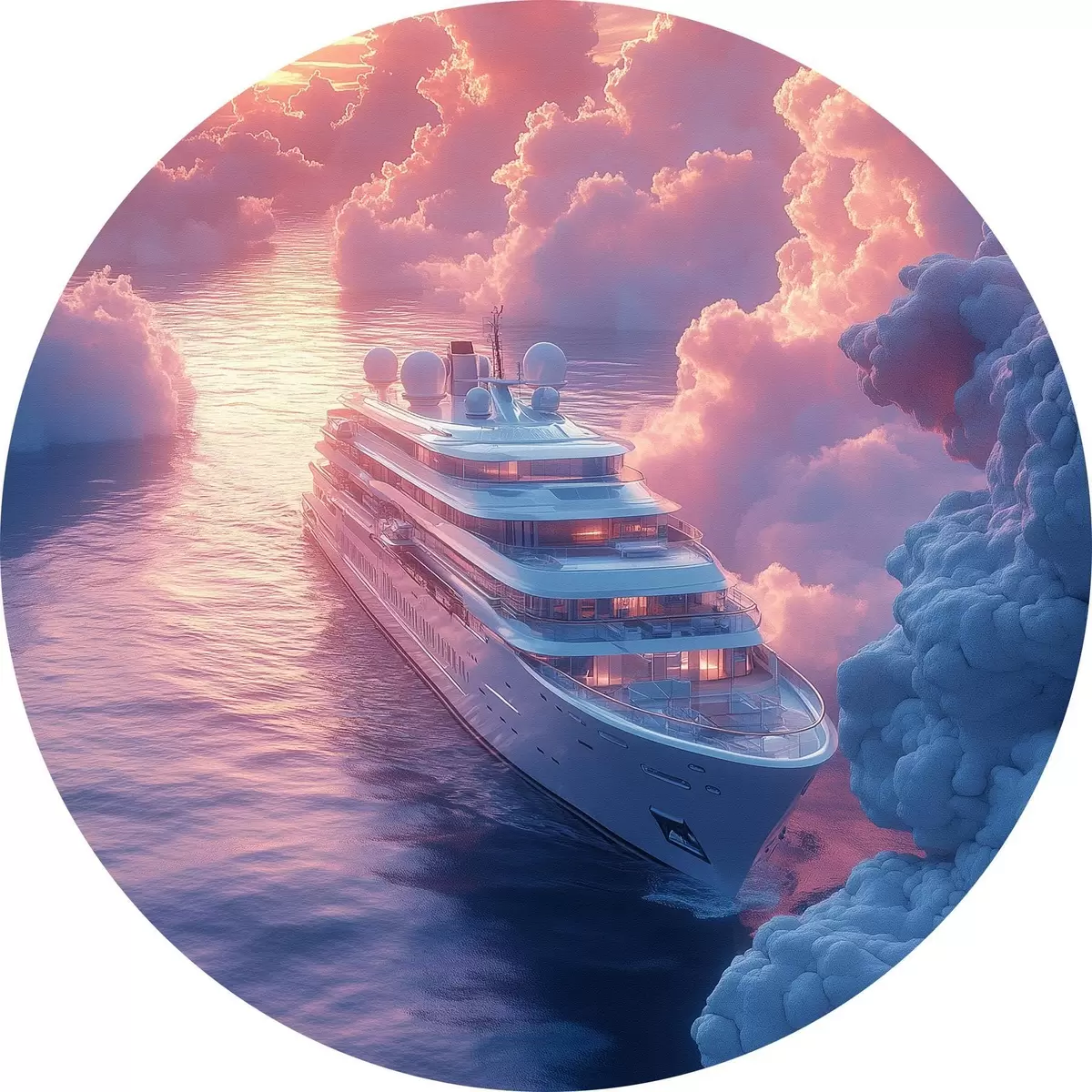 Pilt Kruiisilaev roosa päikeseloojangu taustal Nr r42085
