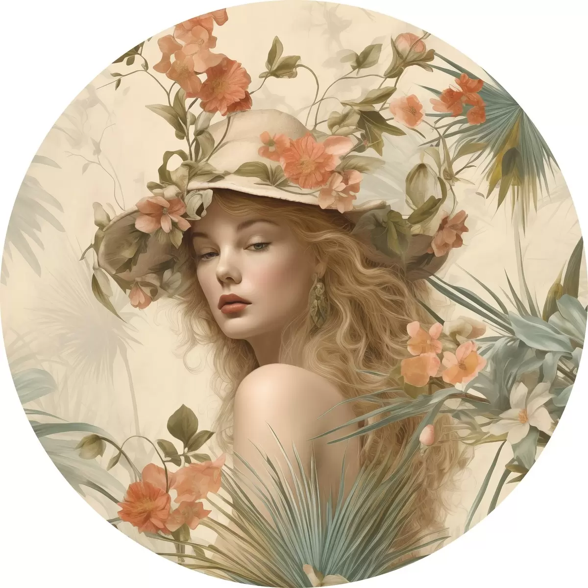 Pilt Tüdruk mütsiga troopikas vintage stiilis Nr r42115