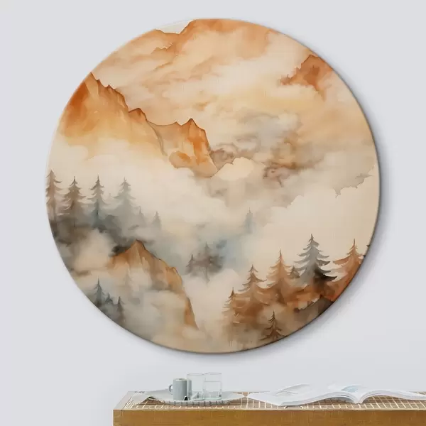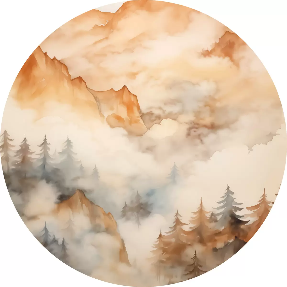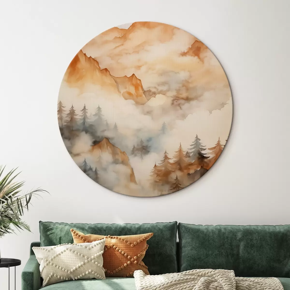 Pilt Mets ja mäed akvarelli imitatsioon, oranžid toonid Nr r42119