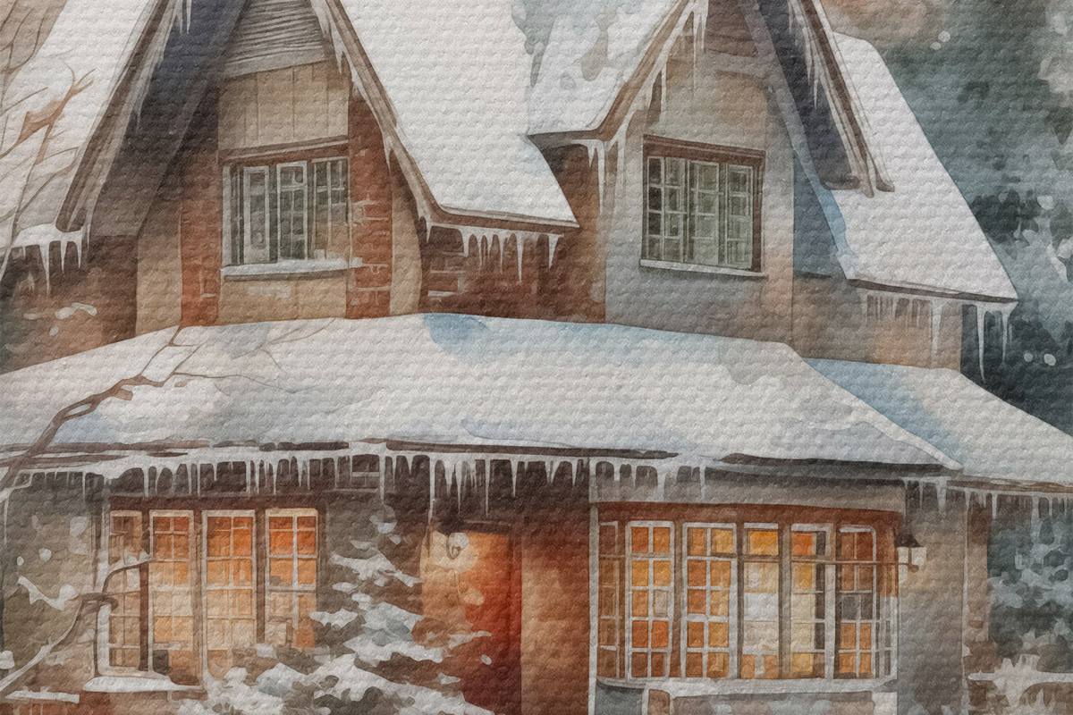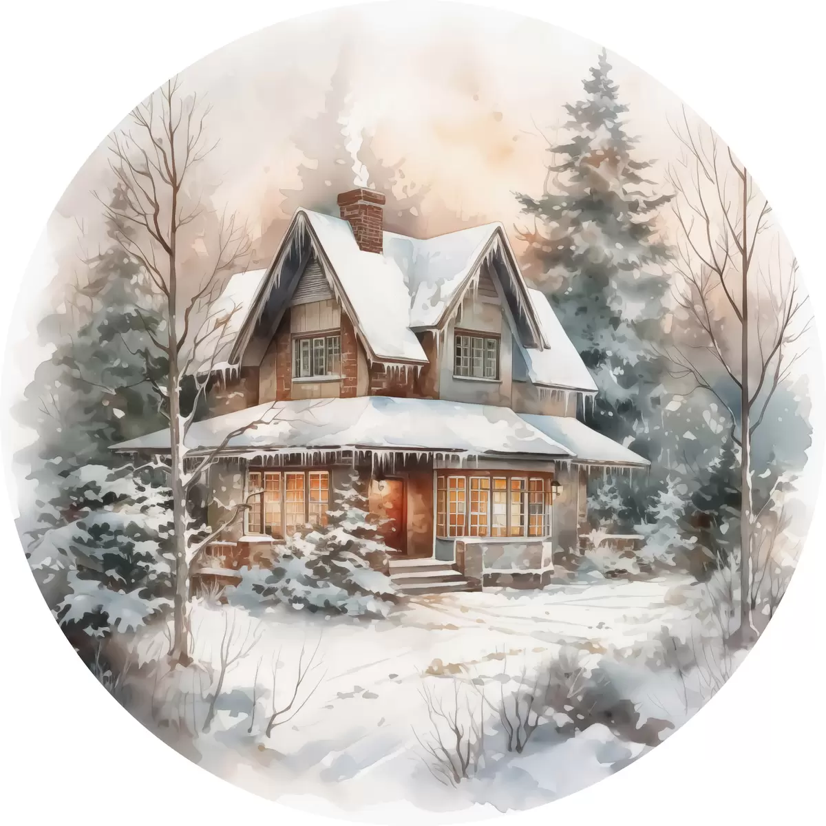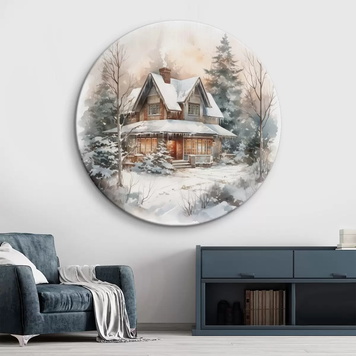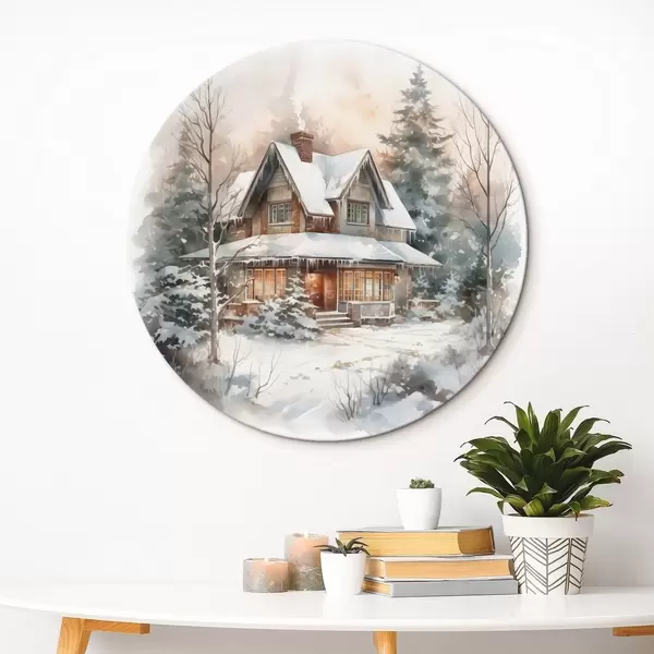 Pilt Maja lumises metsas imitatsioon akvarellilt Nr r42137