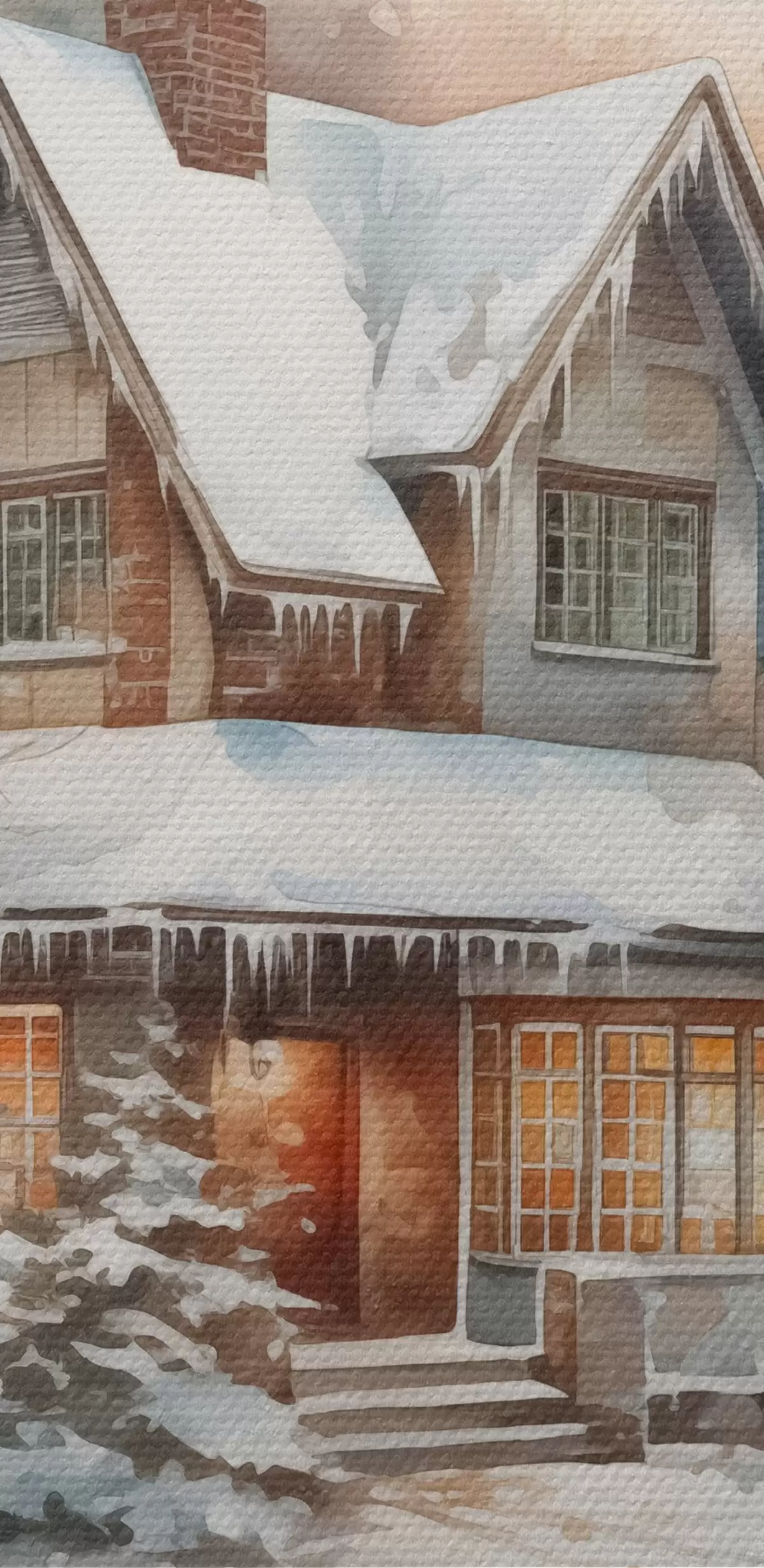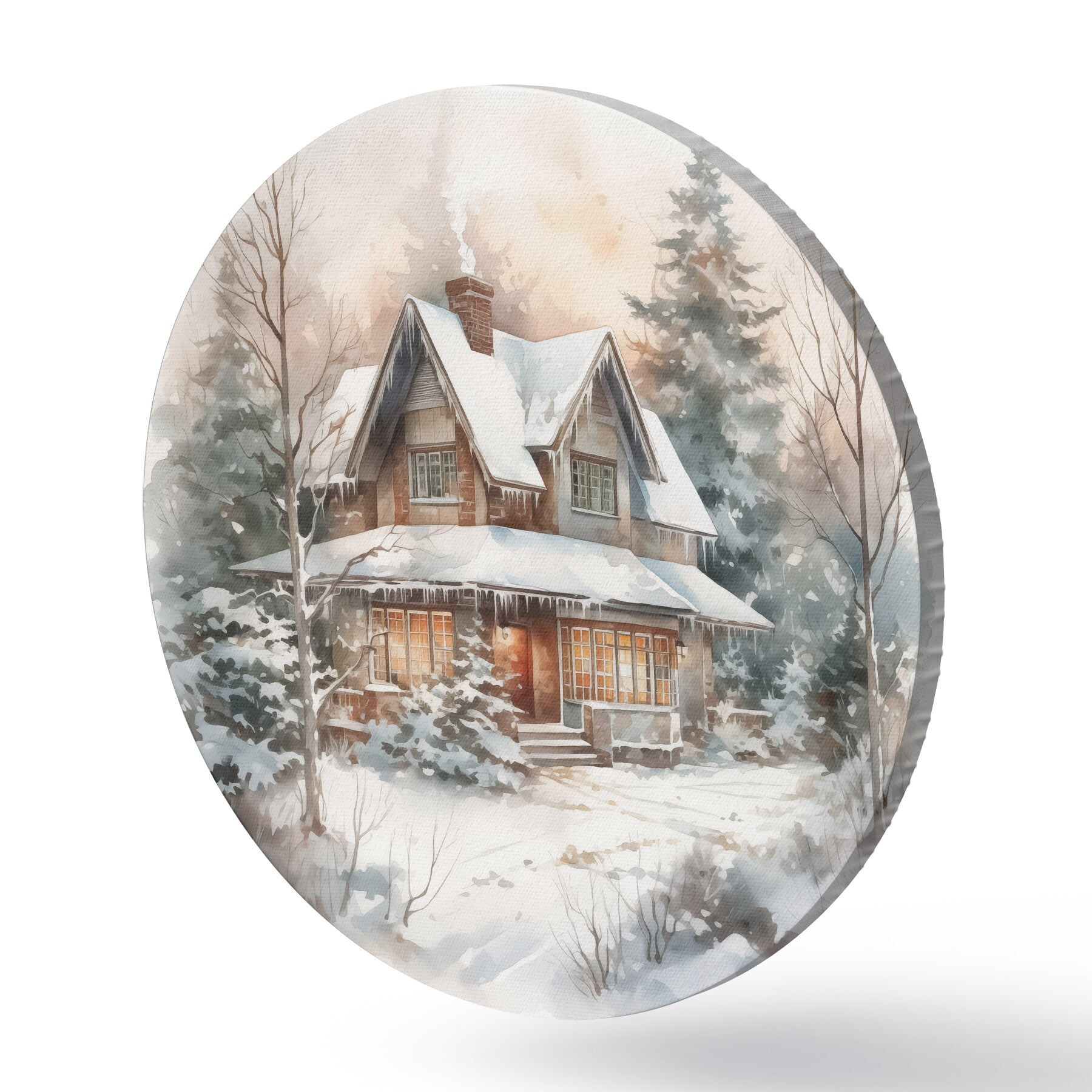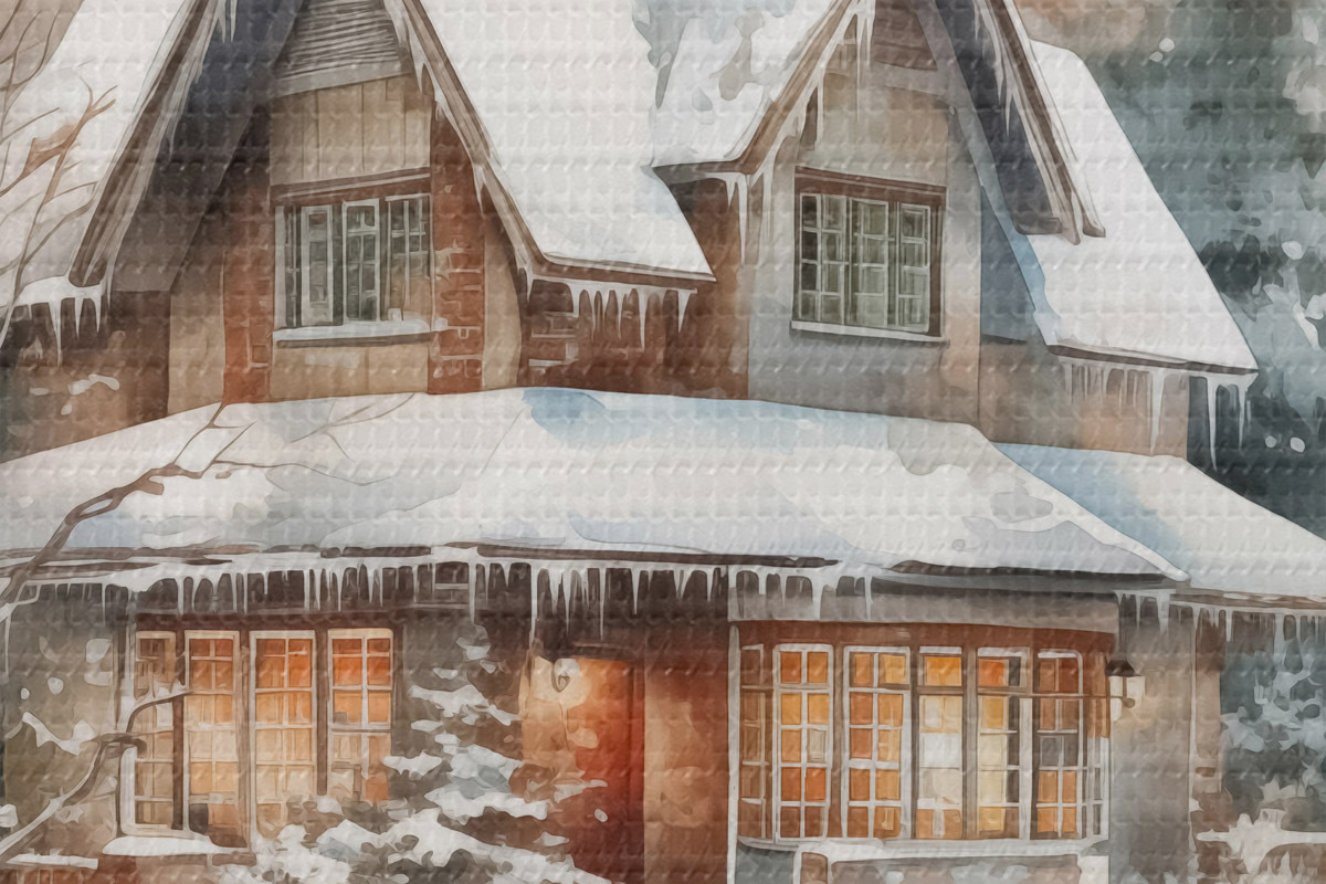 Pilt Maja lumises metsas imitatsioon akvarellilt Nr r42137