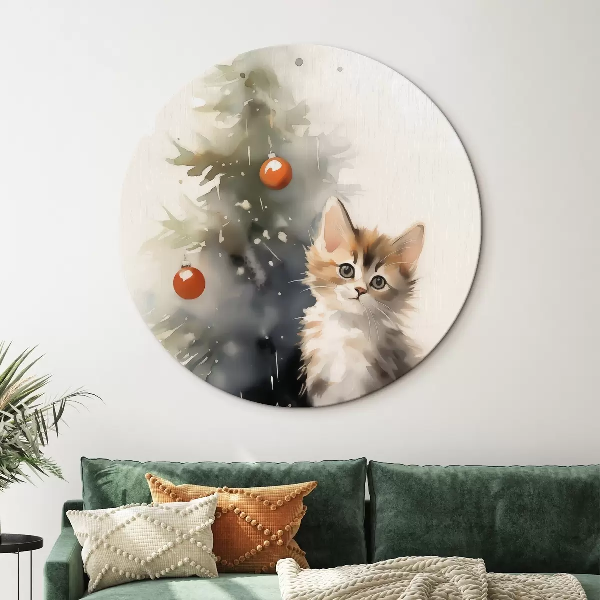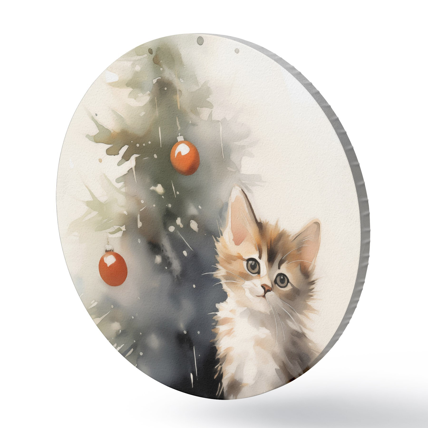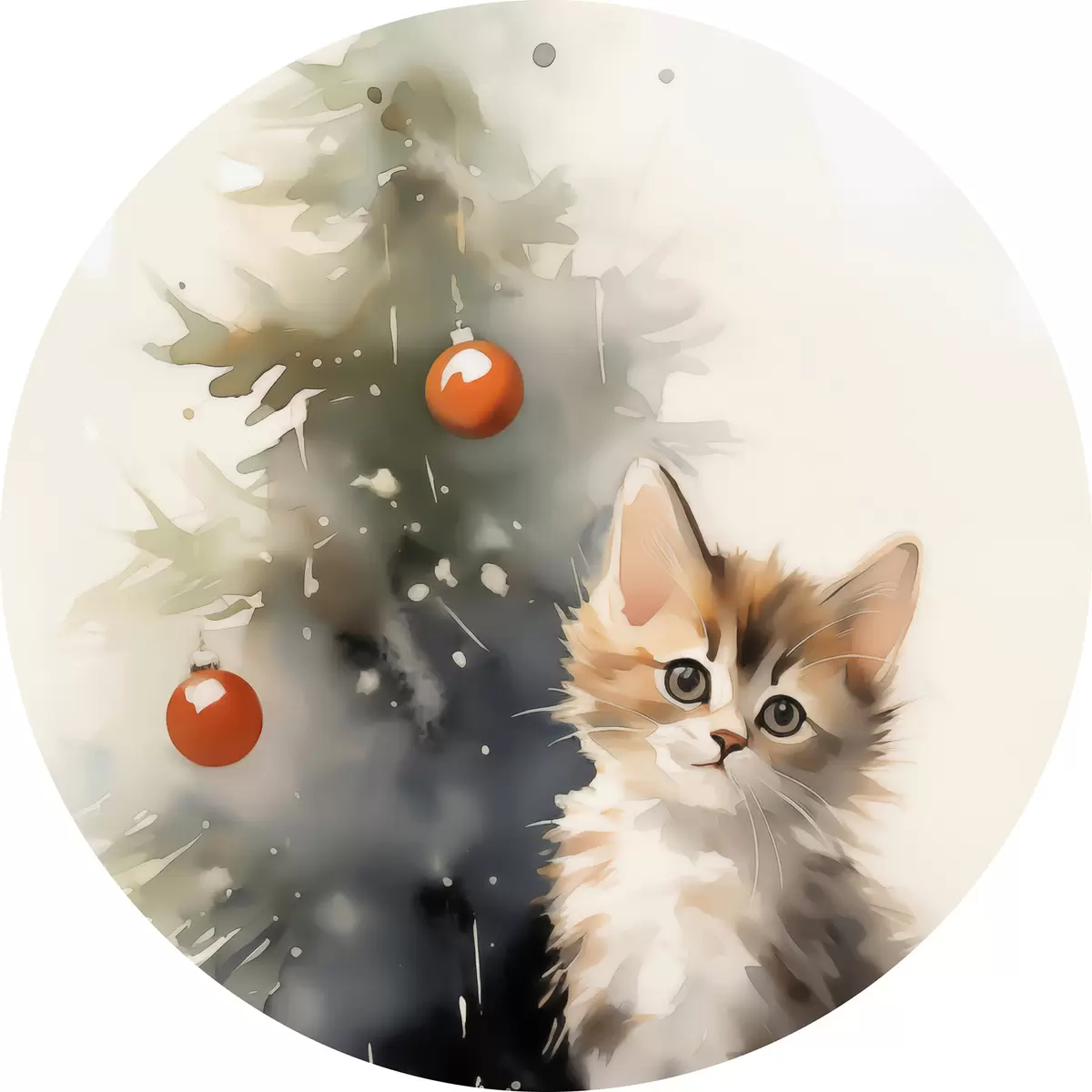 Pilt Kassipoeg lähedal jõulupuu imitatsioon märg akvarellvärvi Nr r42140