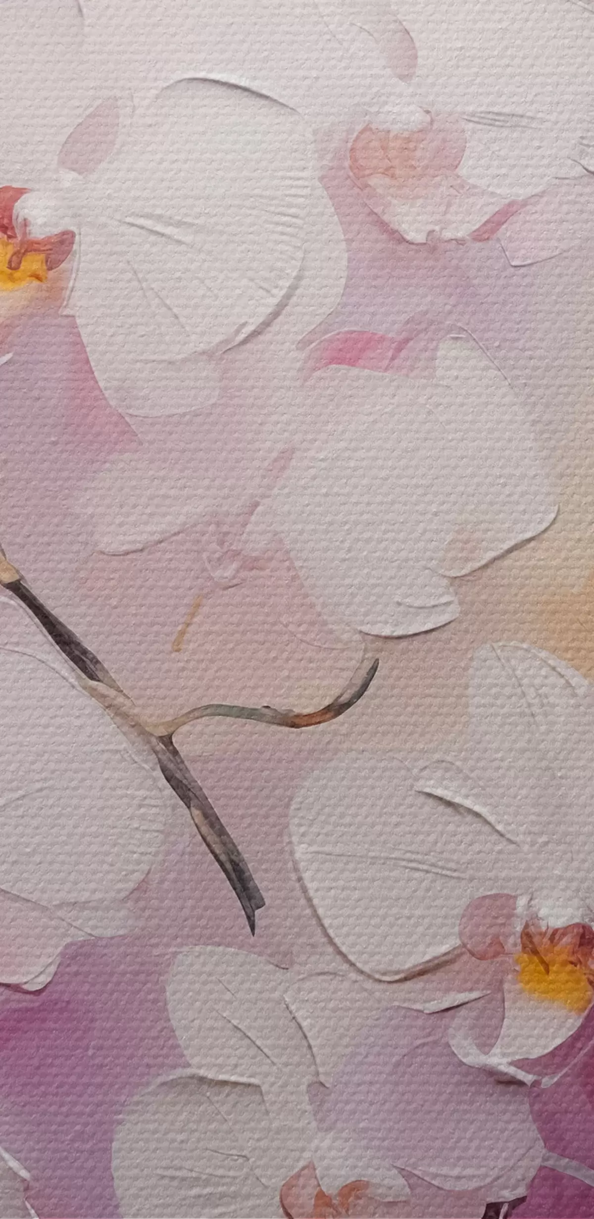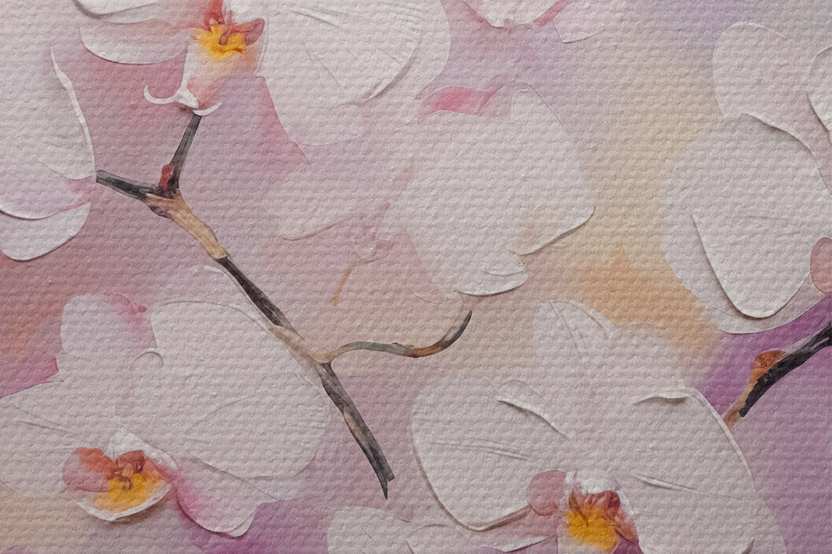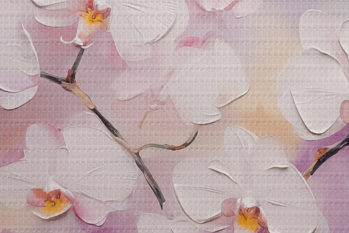 Pilt Haru valge orhideedega, mis imiteerib maali Nr r42141