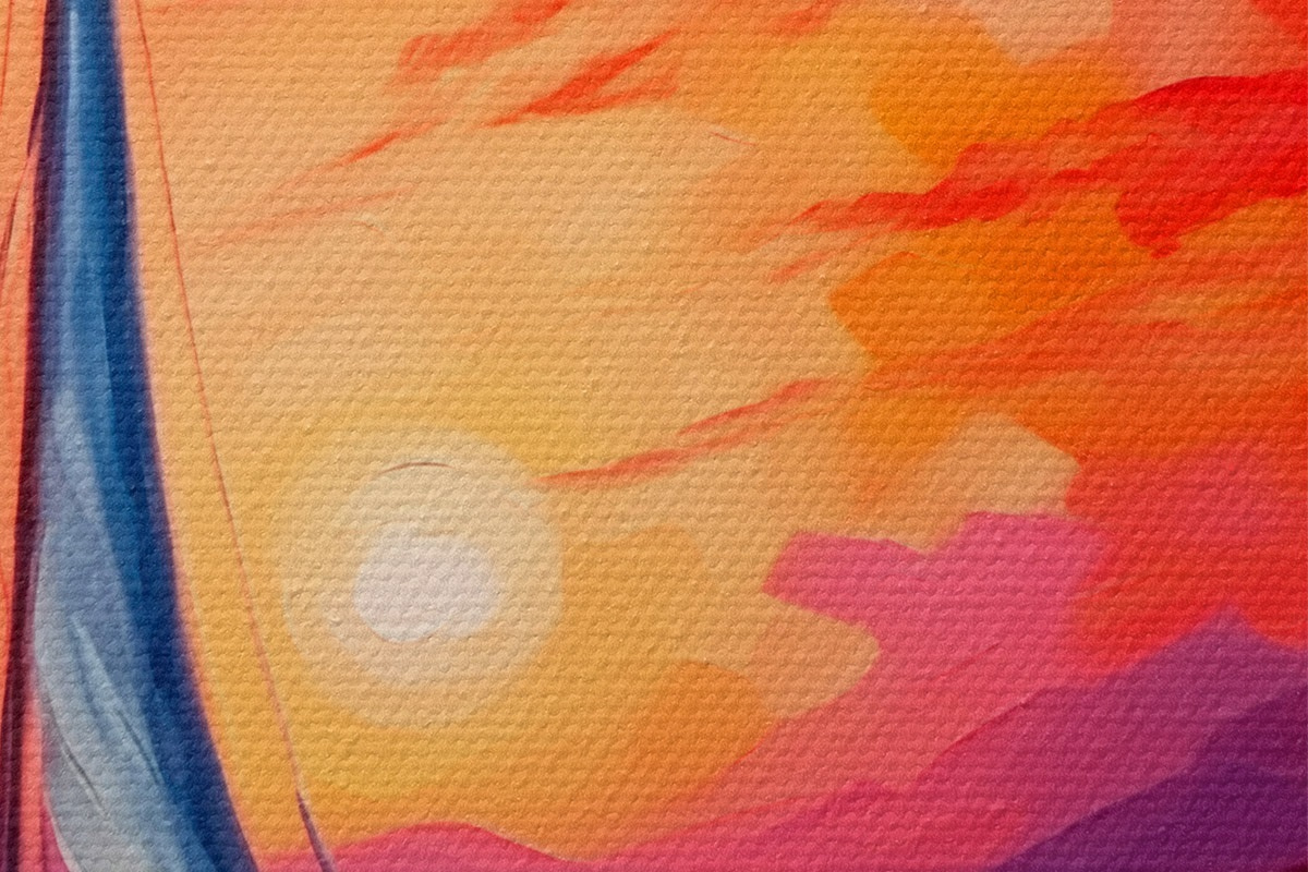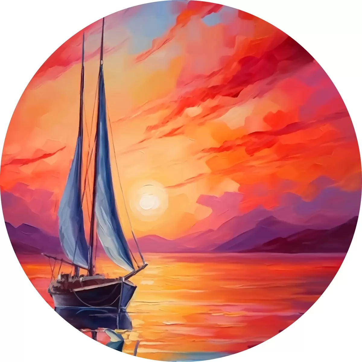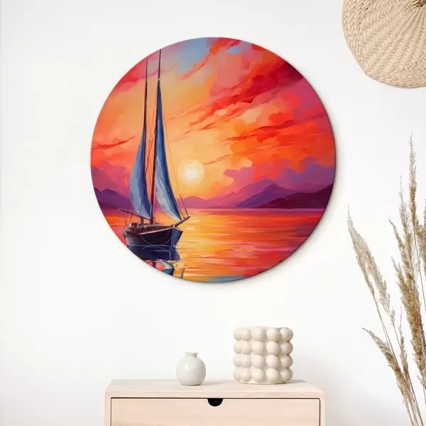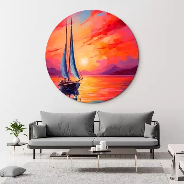 Pilt Purjekas heleda päikeseloojangu taustal Nr r42151