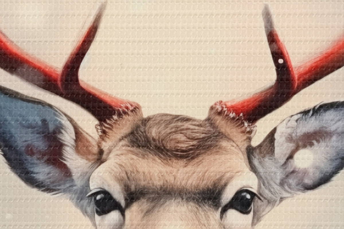 Selle lõuendi peenike niidipunus meenutab professionaalse kunstniku lõuendi pinda.