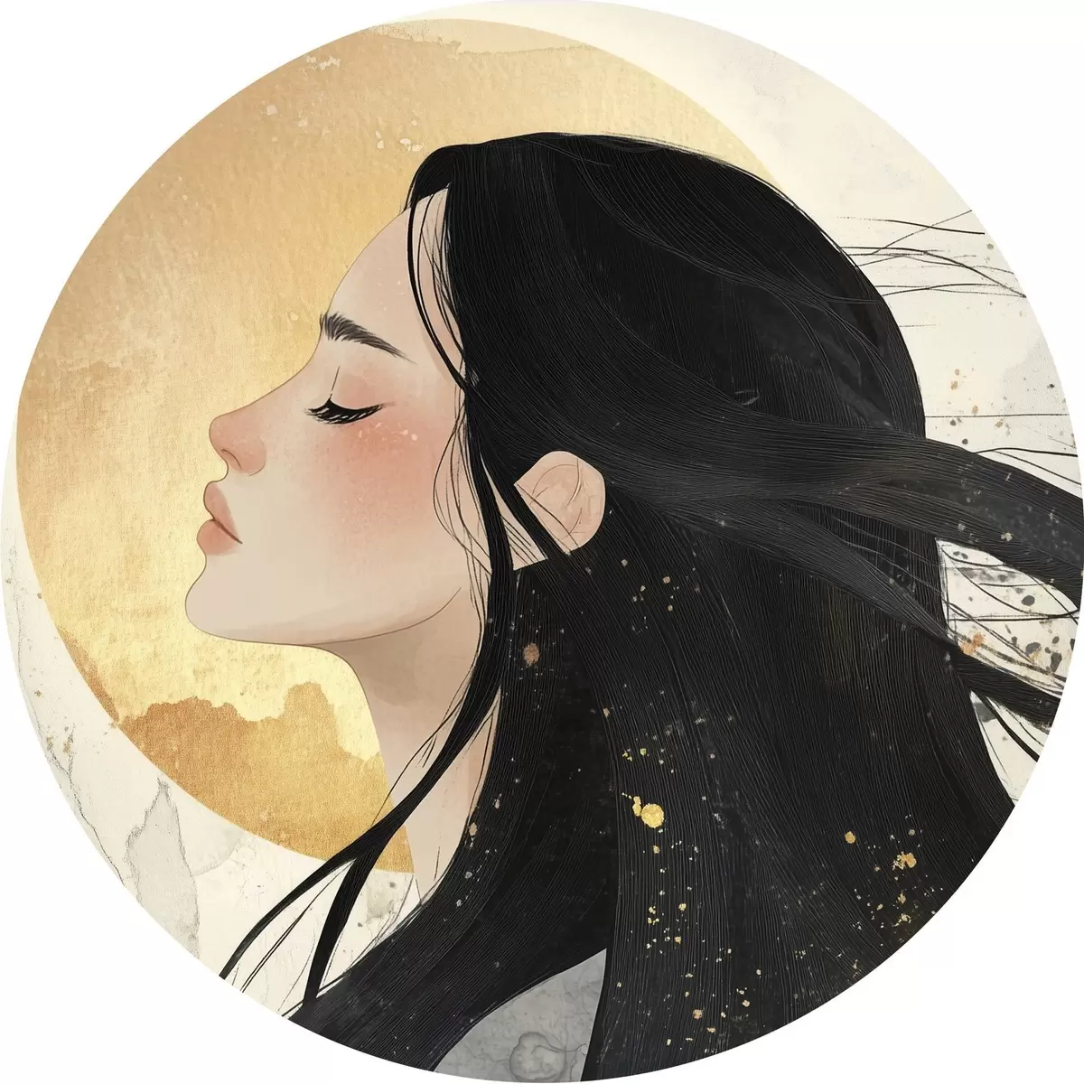 Pilt Ilus tüdruk tumedate juustega, idamaine stiil, päike Nr r42194