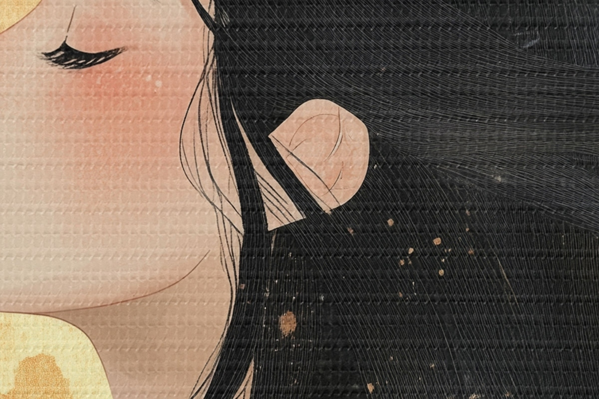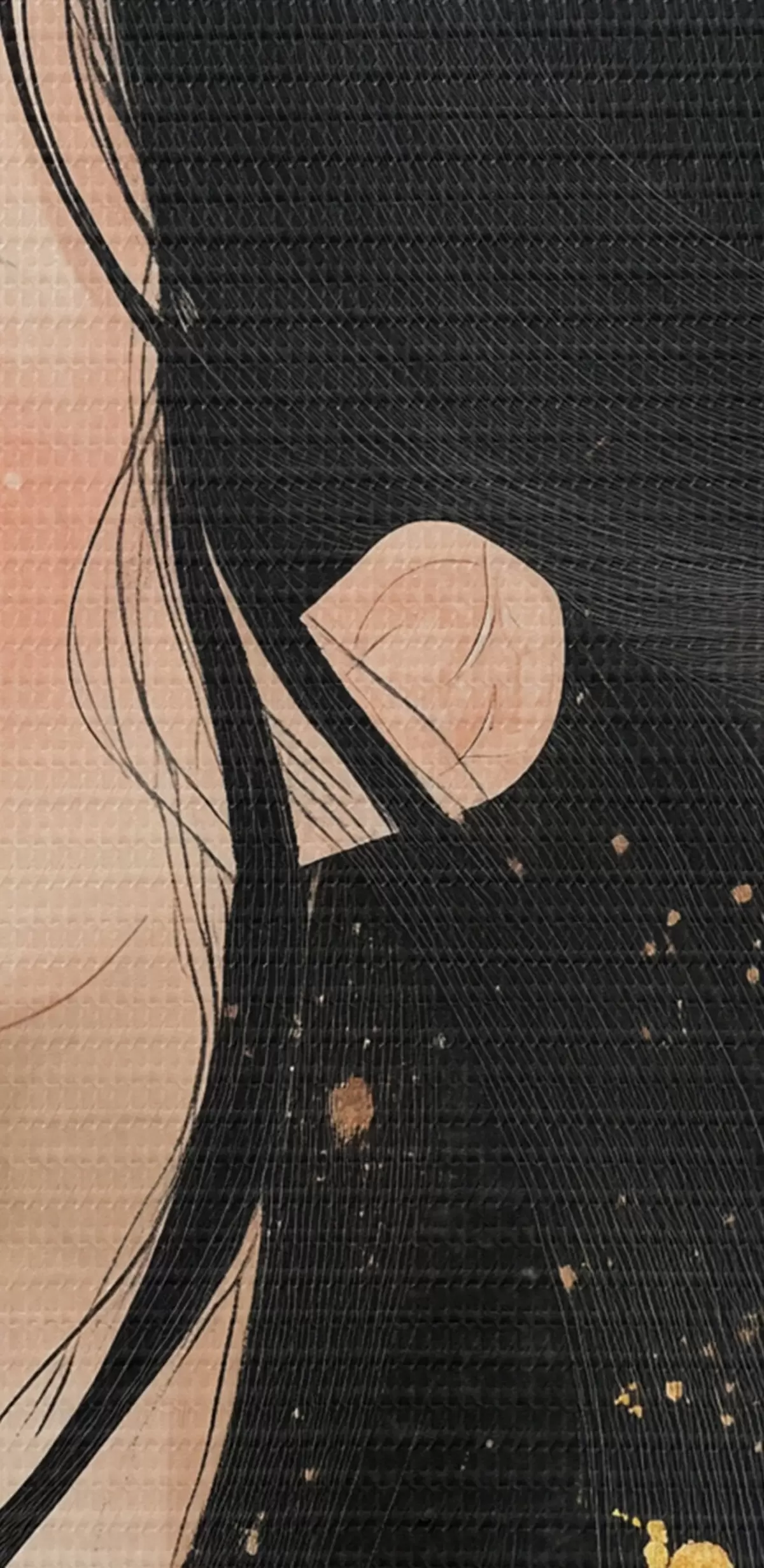 Selle lõuendi peenike niidipunus meenutab professionaalse kunstniku lõuendi pinda.