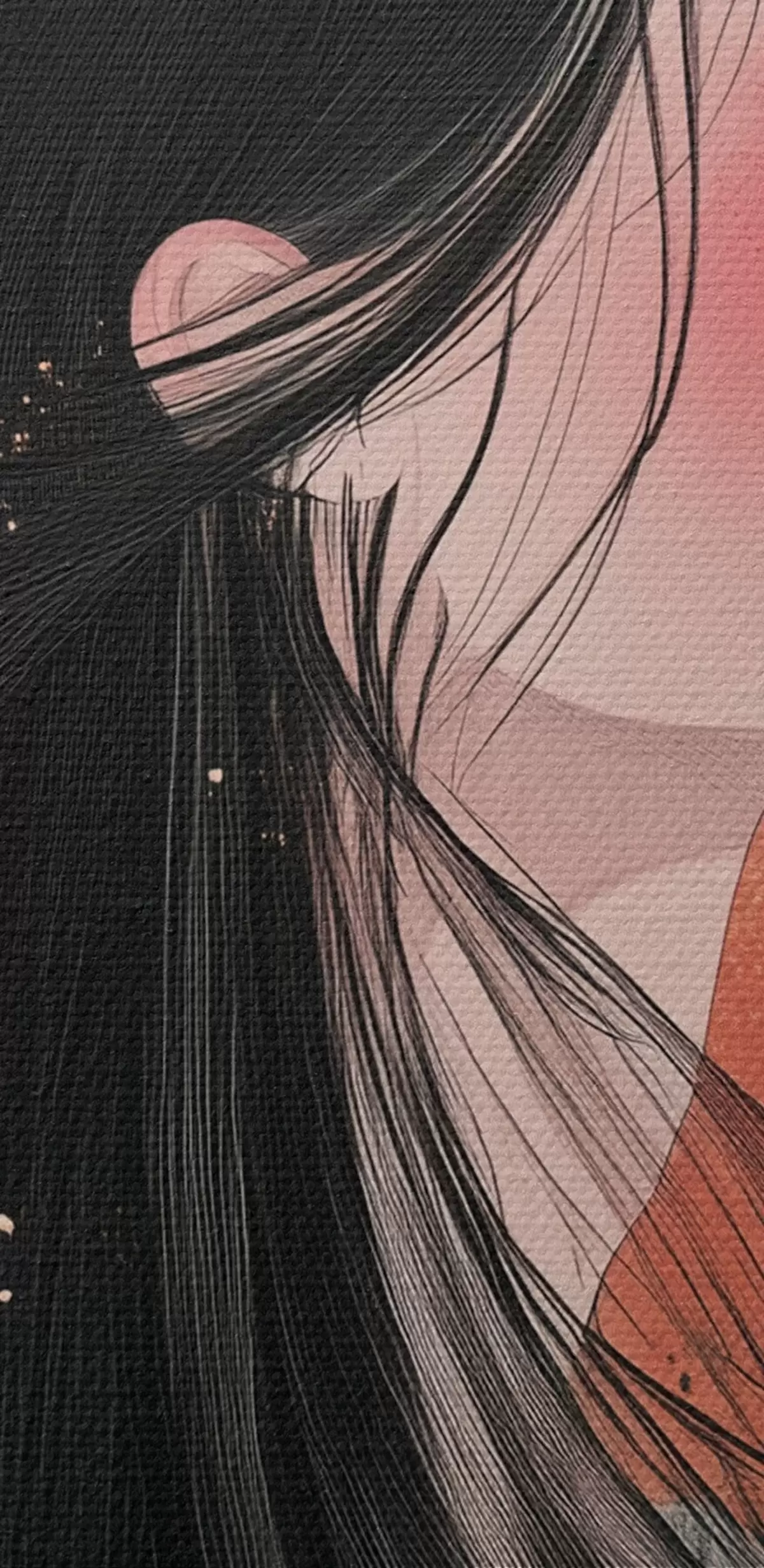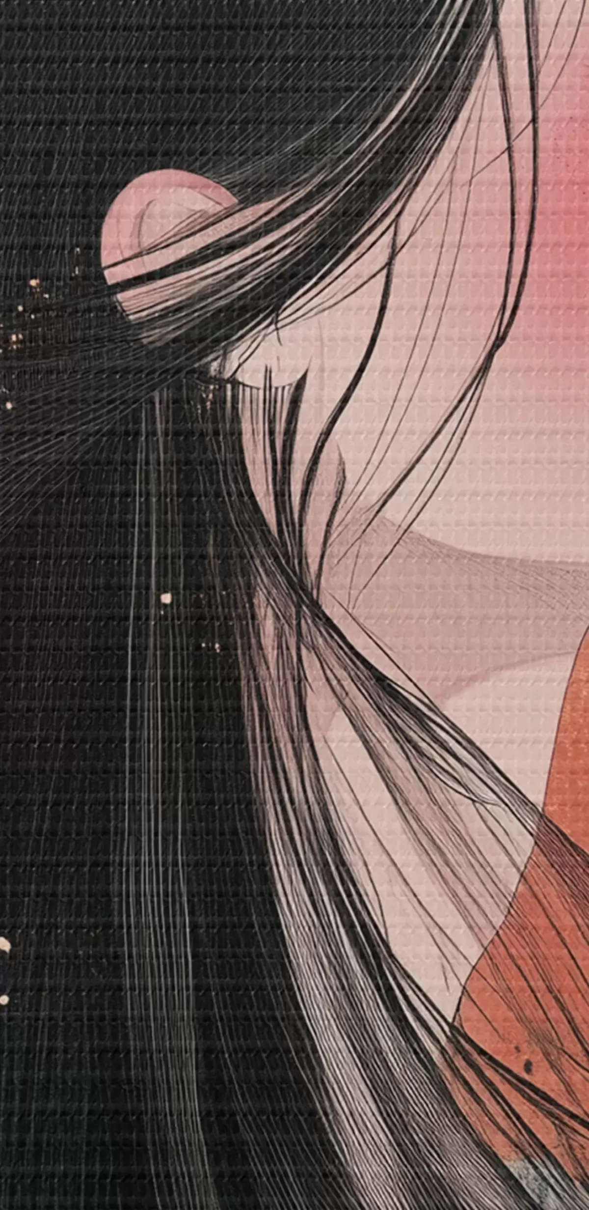 Selle lõuendi peenike niidipunus meenutab professionaalse kunstniku lõuendi pinda.