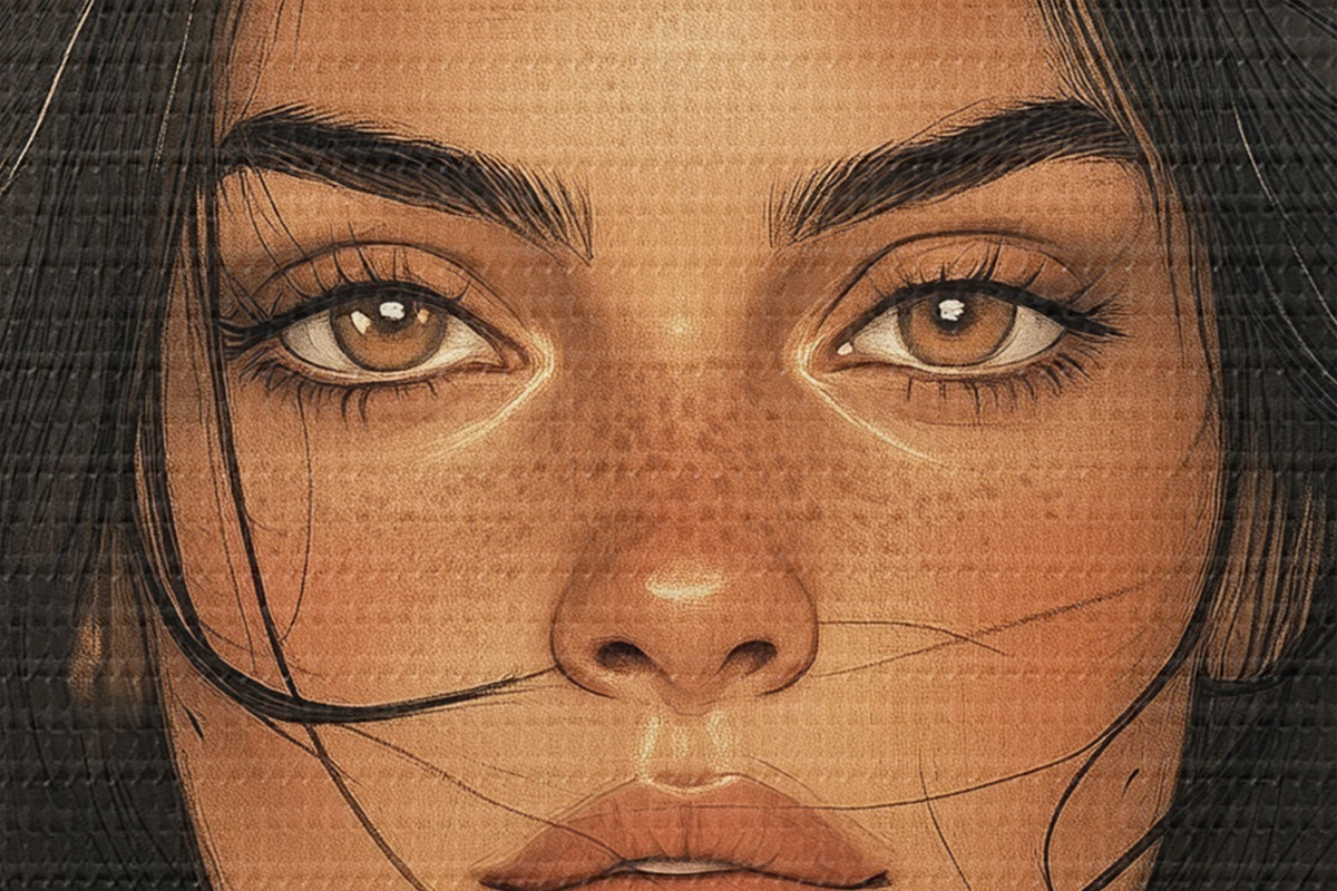 Selle lõuendi peenike niidipunus meenutab professionaalse kunstniku lõuendi pinda.