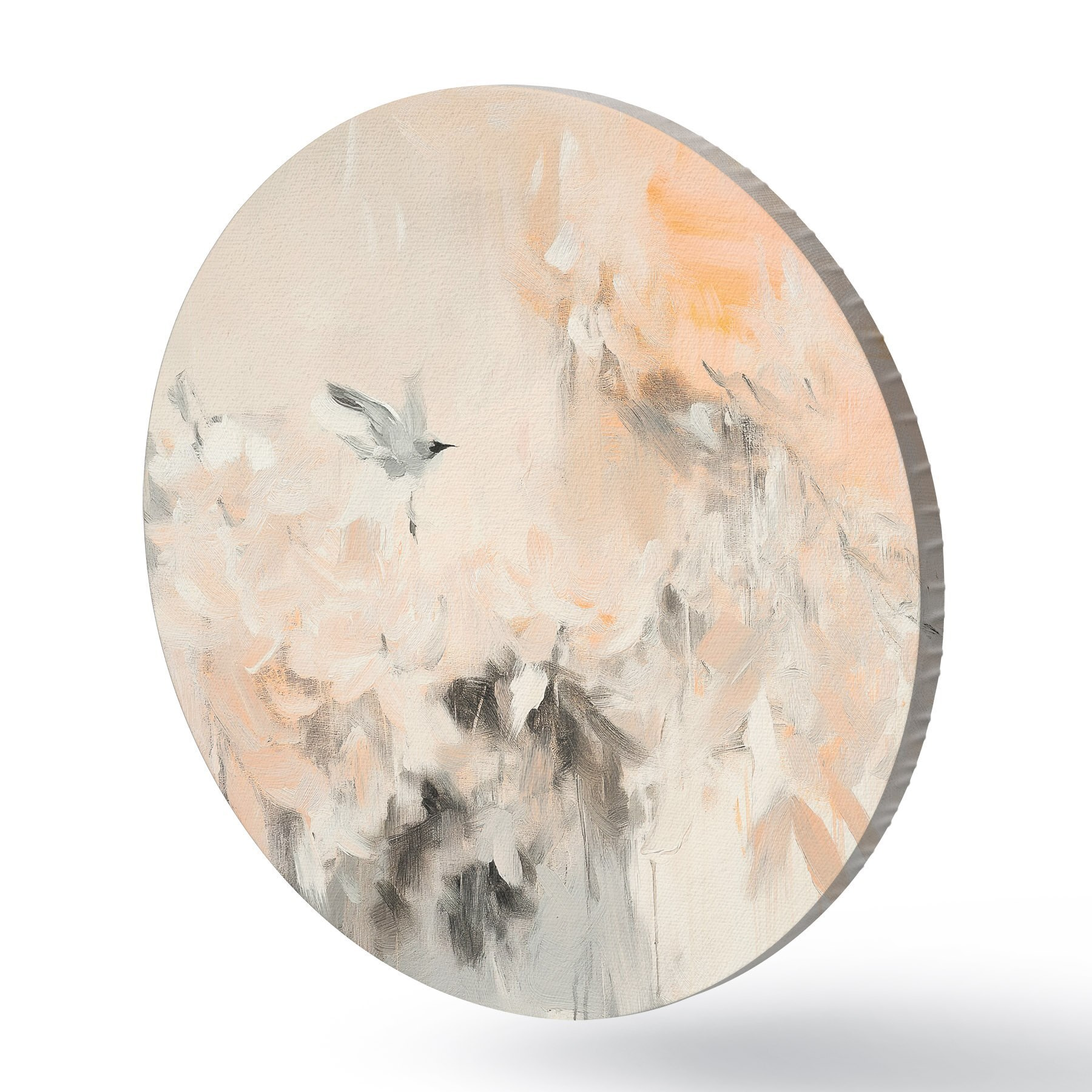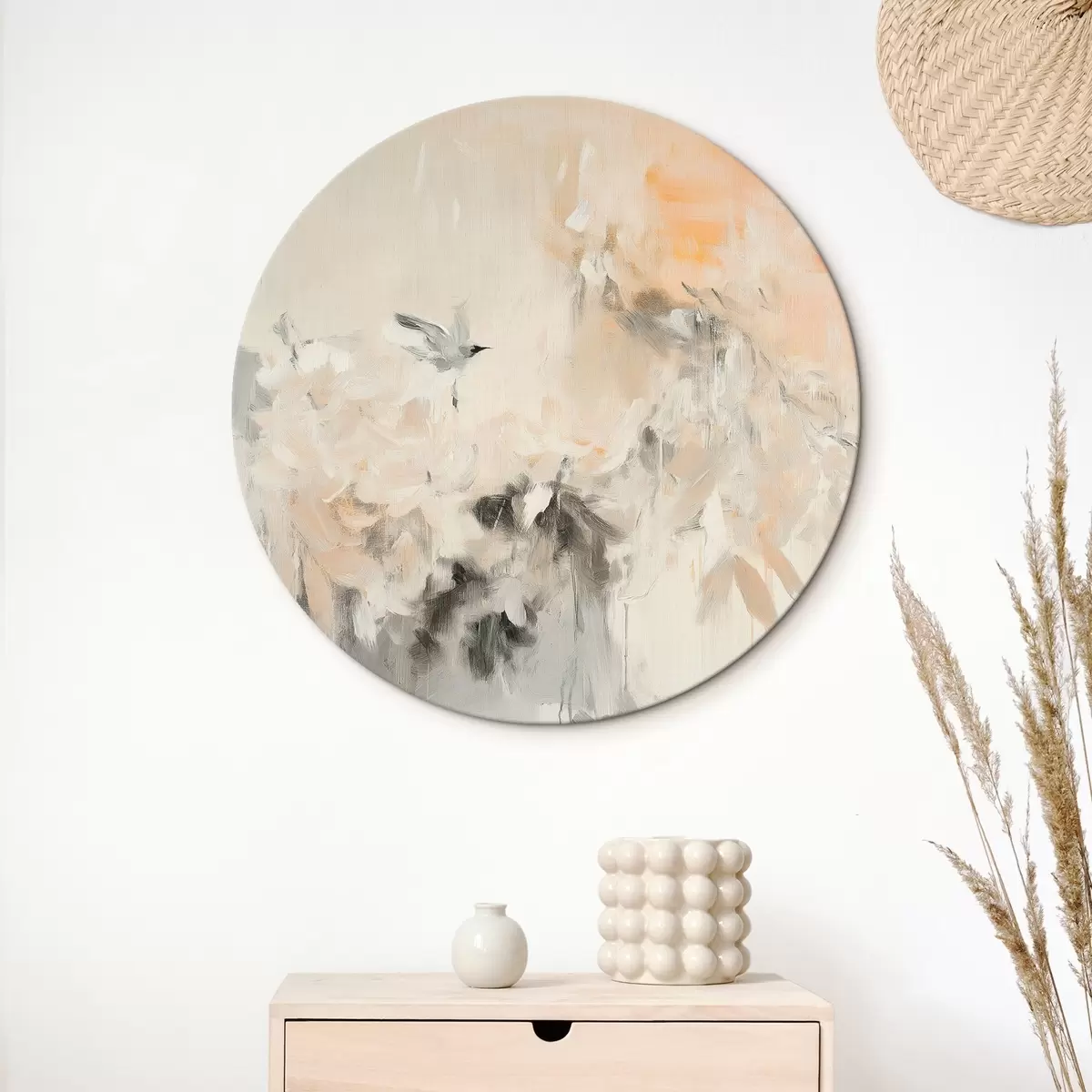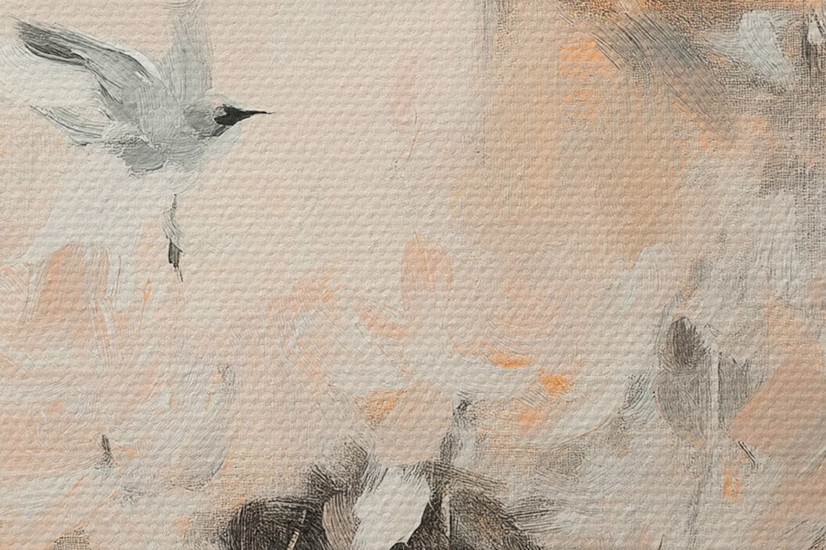 Pilt Abstraktsioon lendavate lindudega, akrüülstiilis, roosa ja beež värvid Nr r42205