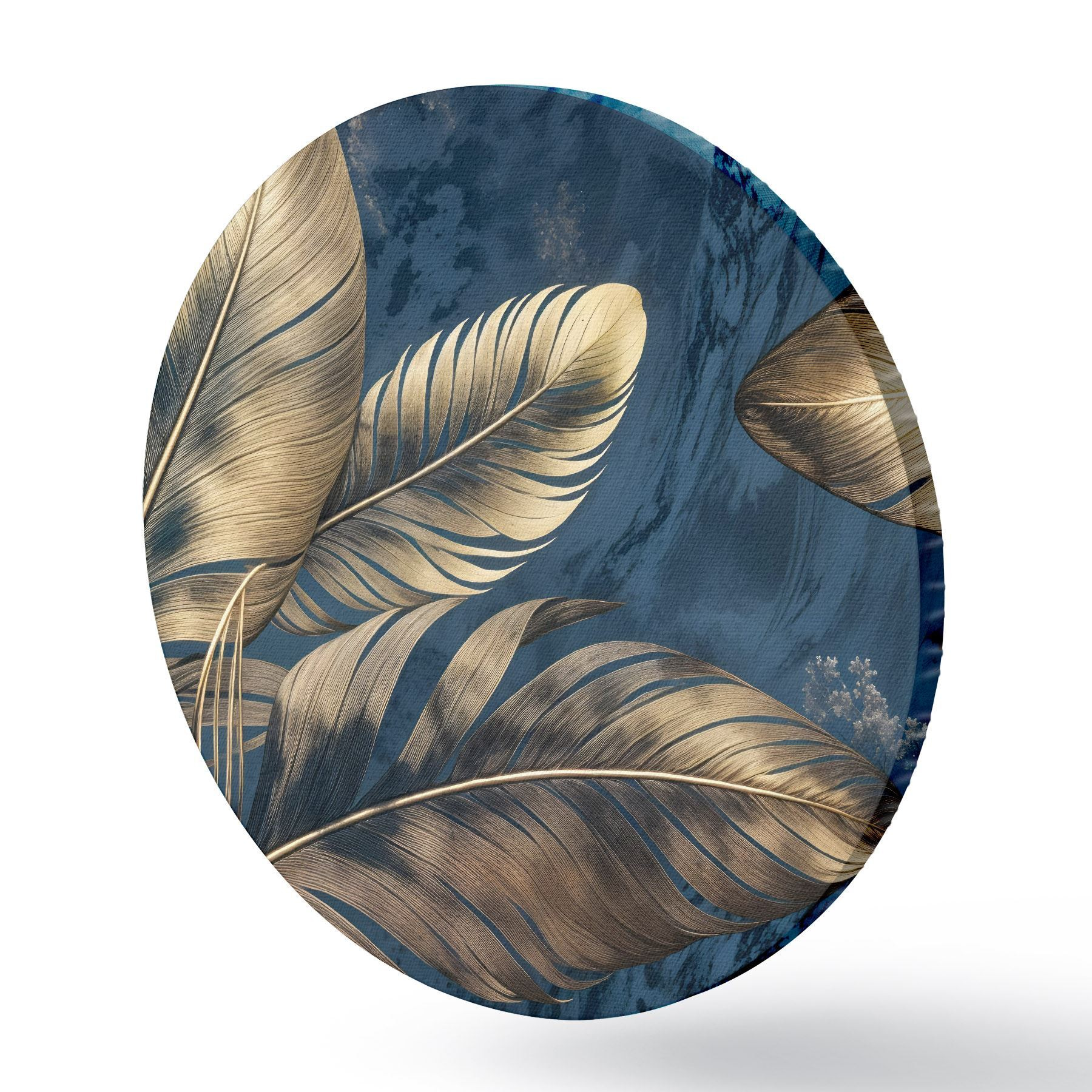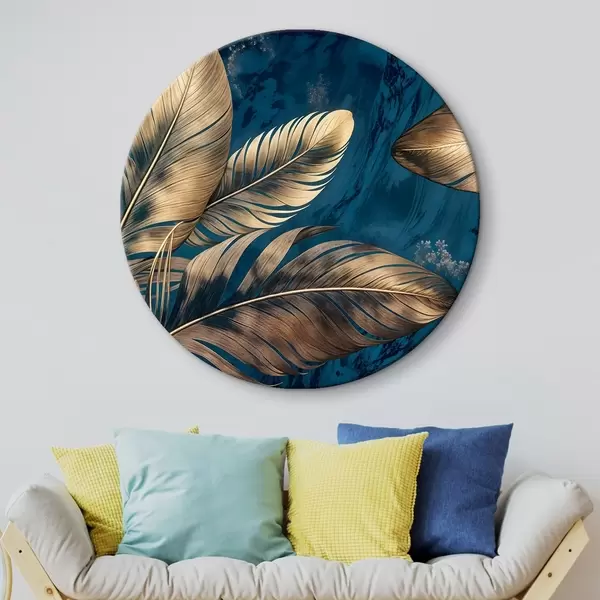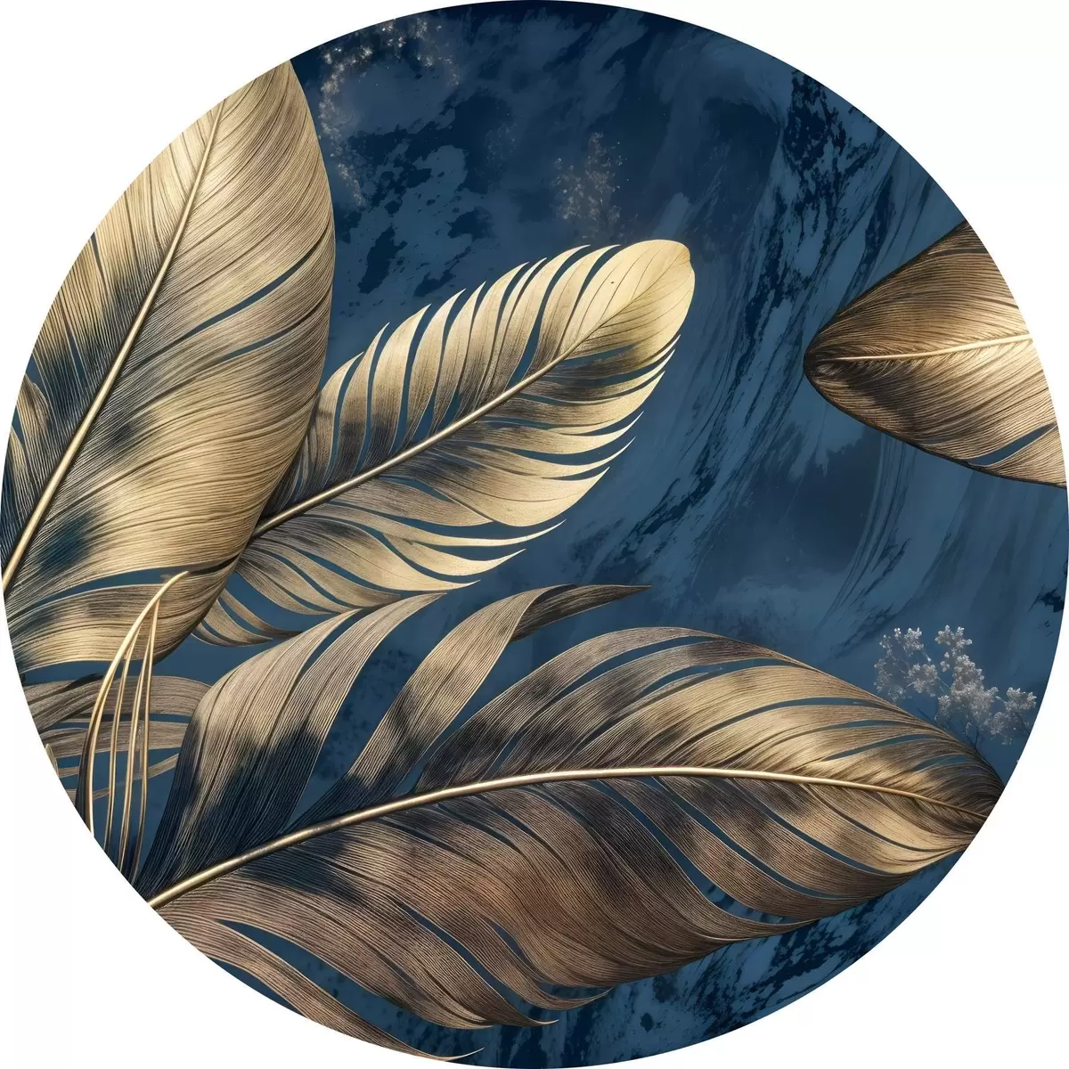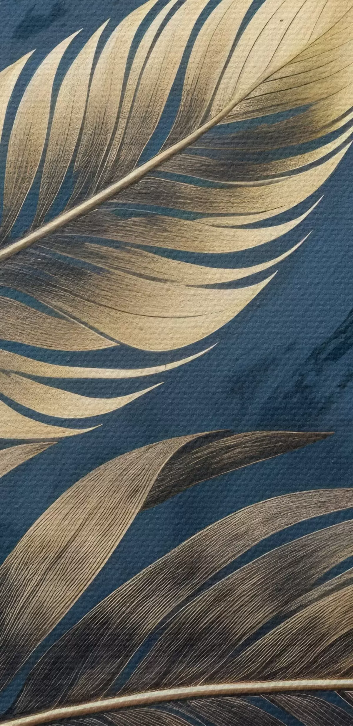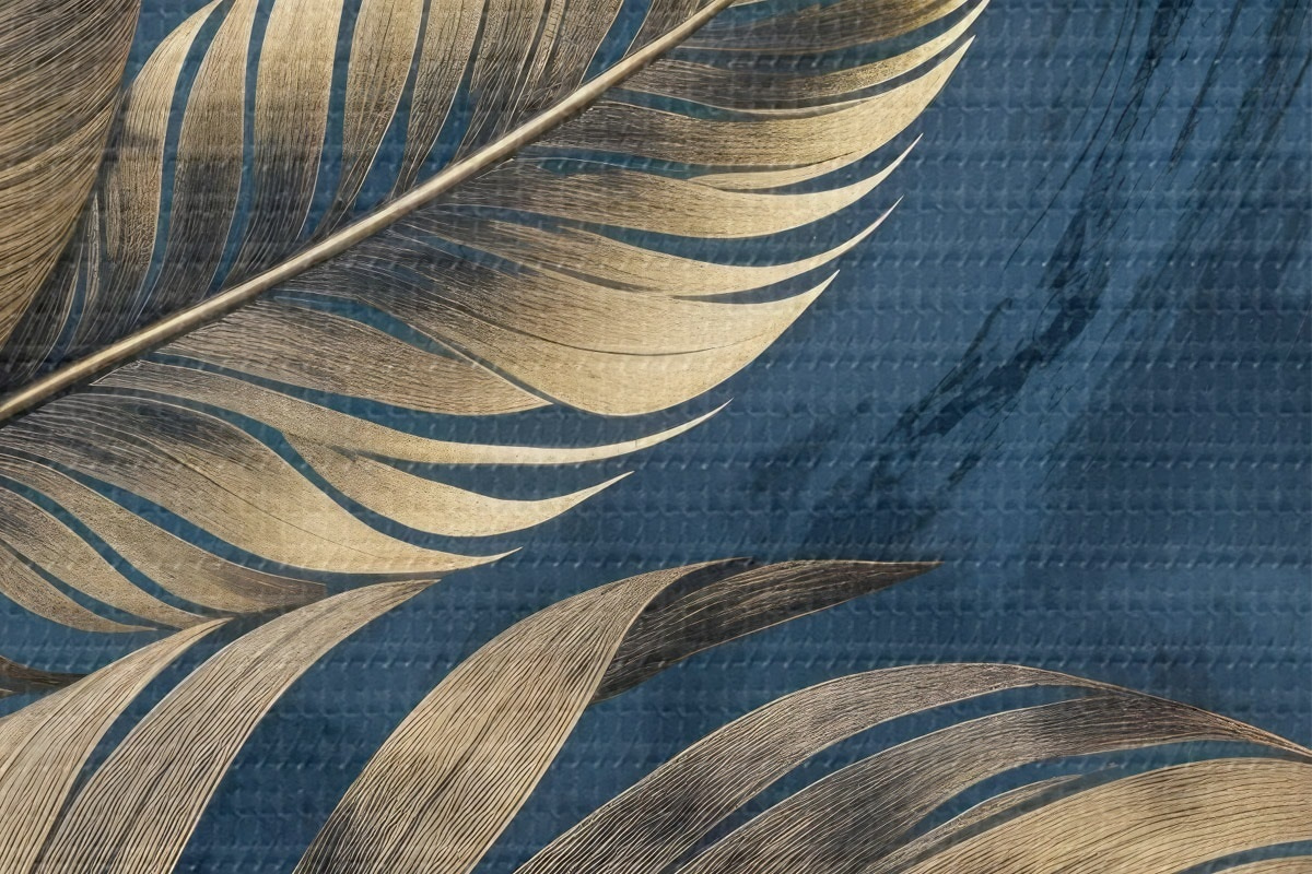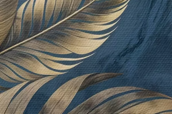 Pilt Kollased ja beežid abstraktsed dekoratiivsed suled, mis hõljuvad tumesinisel tekstuurilisel taustal Nr r42218
