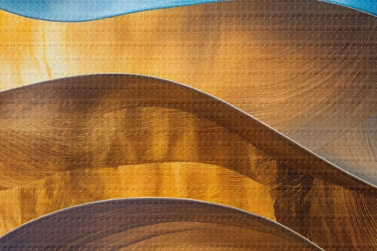 Pilt Abstraktsed kaasaegse kunsti lainelised kujundid sinise, oranži ja pruuni toonides Nr r42224