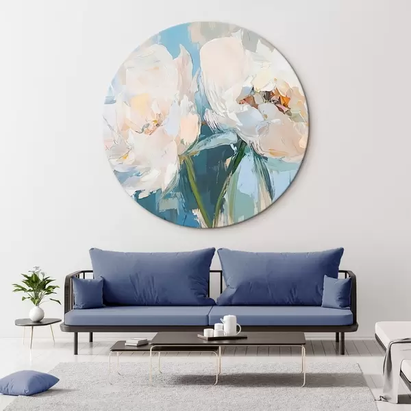 Pilt Valge minimalistlik abstraktsed ploomid õlimaal imitatsioon pehmel sinisel taustal Nr r42226
