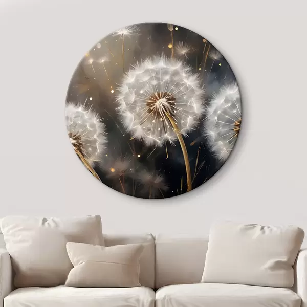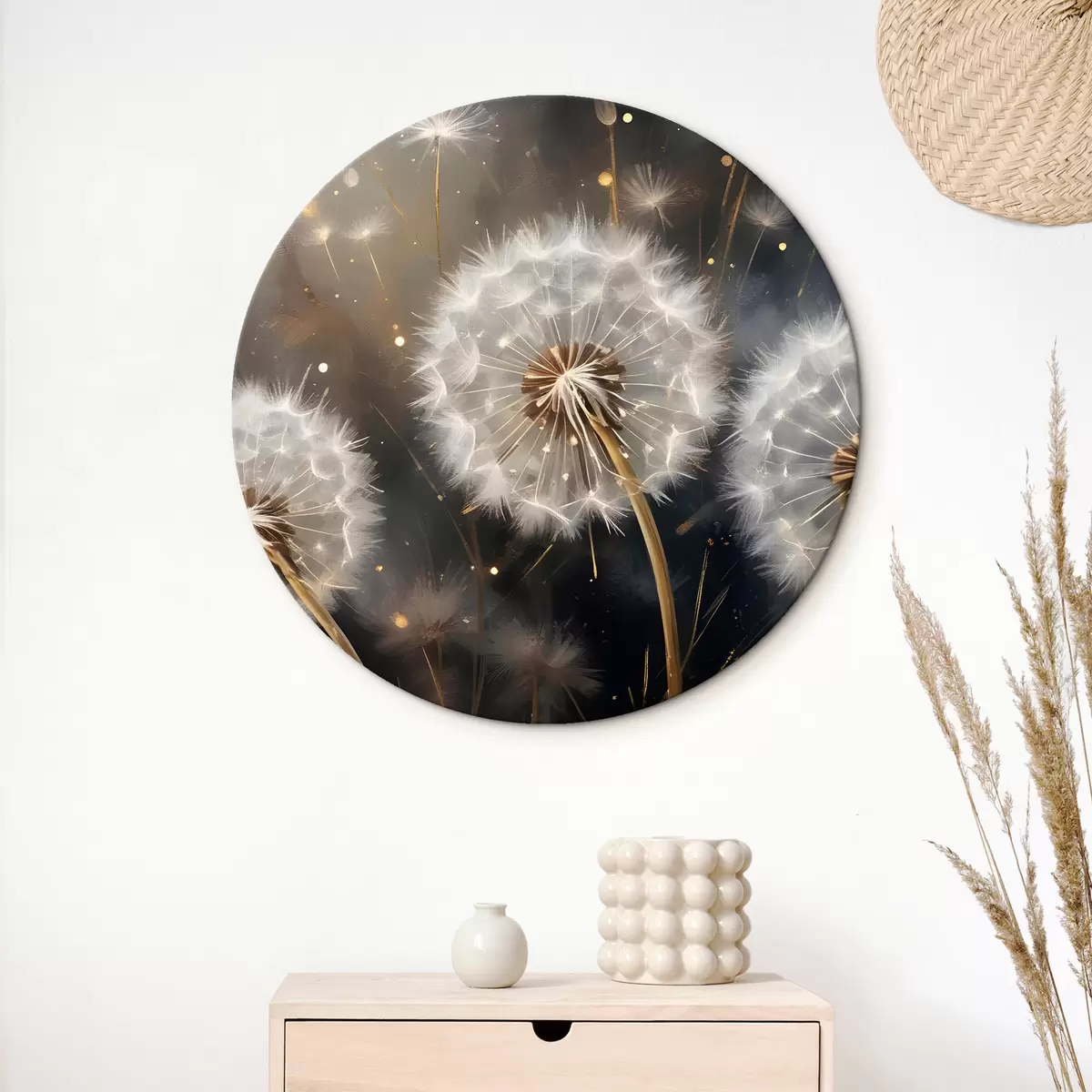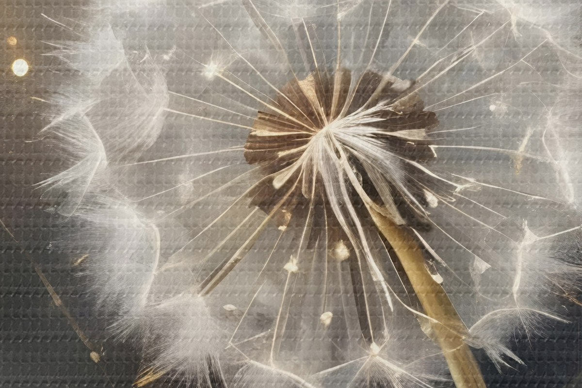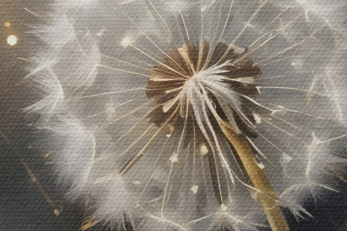 Pilt Võililleõied oma kohevate valgete seemnepeadega tumedal taustal, mis loovad maagilise atmosfääri Nr r42235