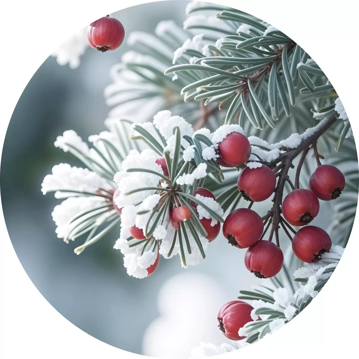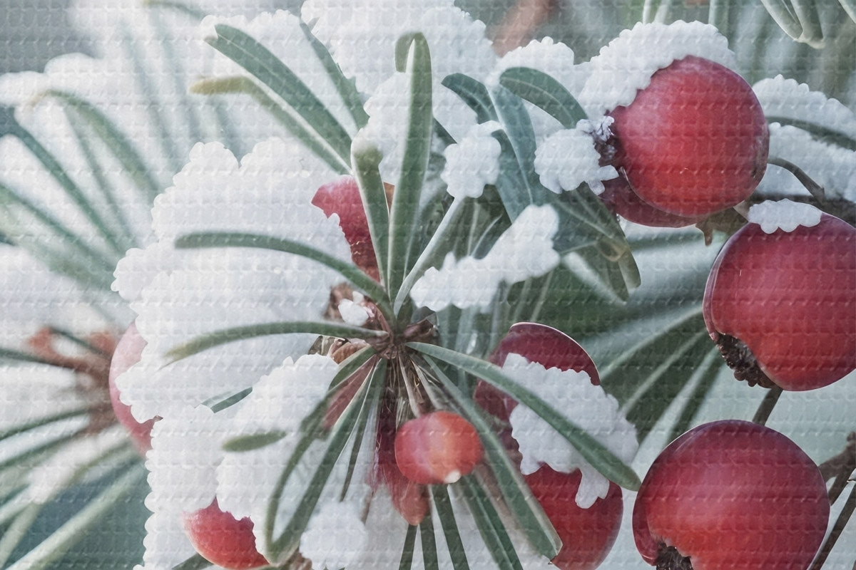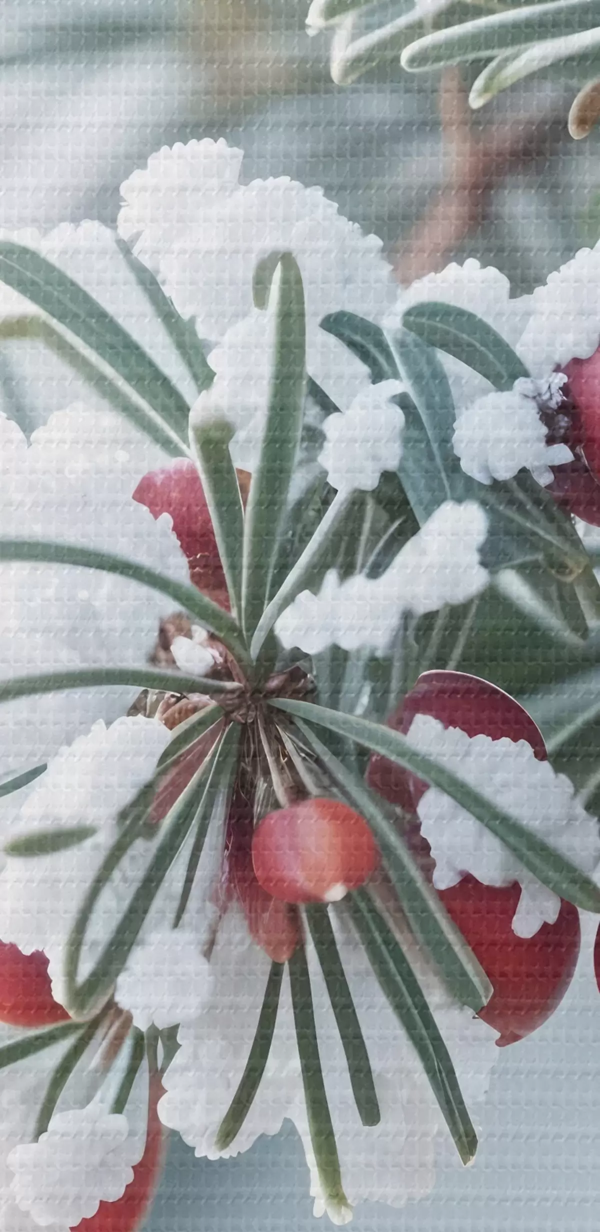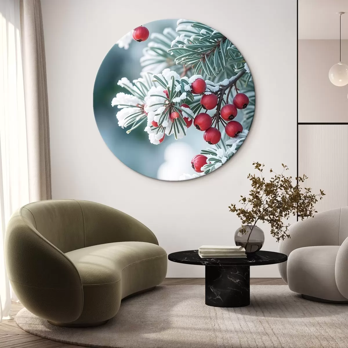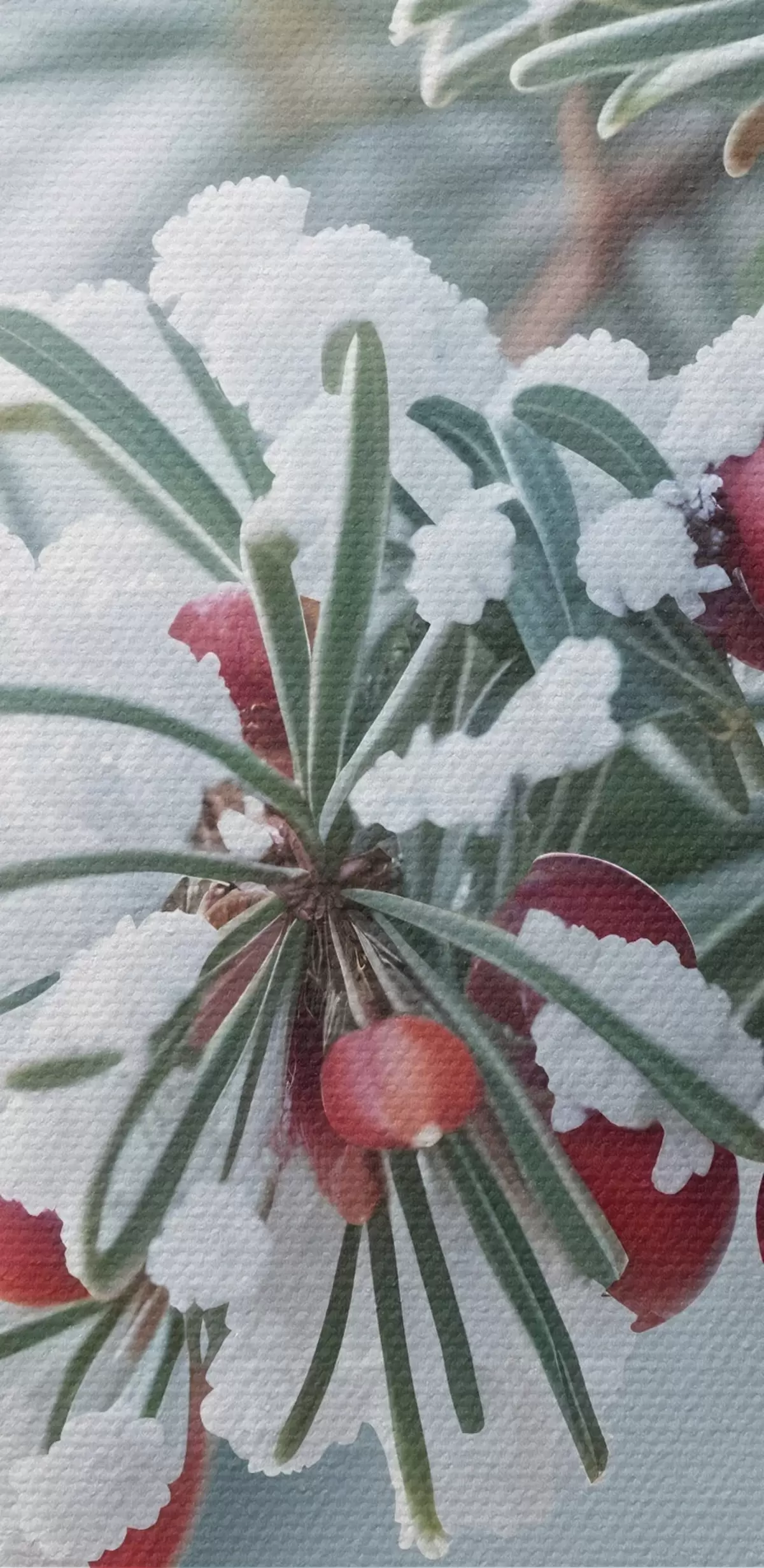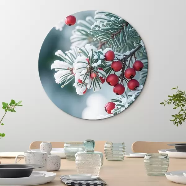 Pilt Lumine männi oksa punaste marjadega , talvine stseen Nr r42238