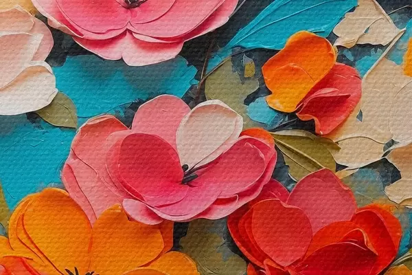 Pilt Lilled ja lehed sinisel taustal Nr r42255