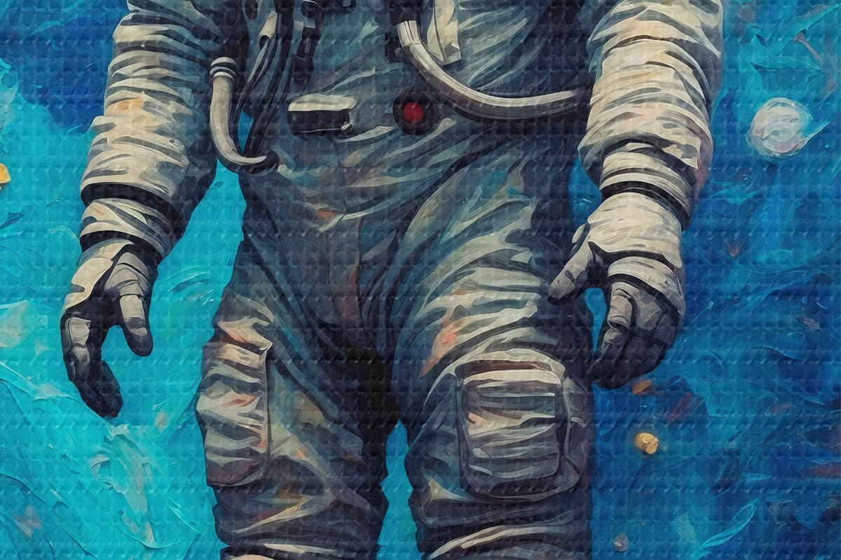 Pilt Astronaut abstraktsel kosmose taustal õlimaalide stiilis Nr r42265