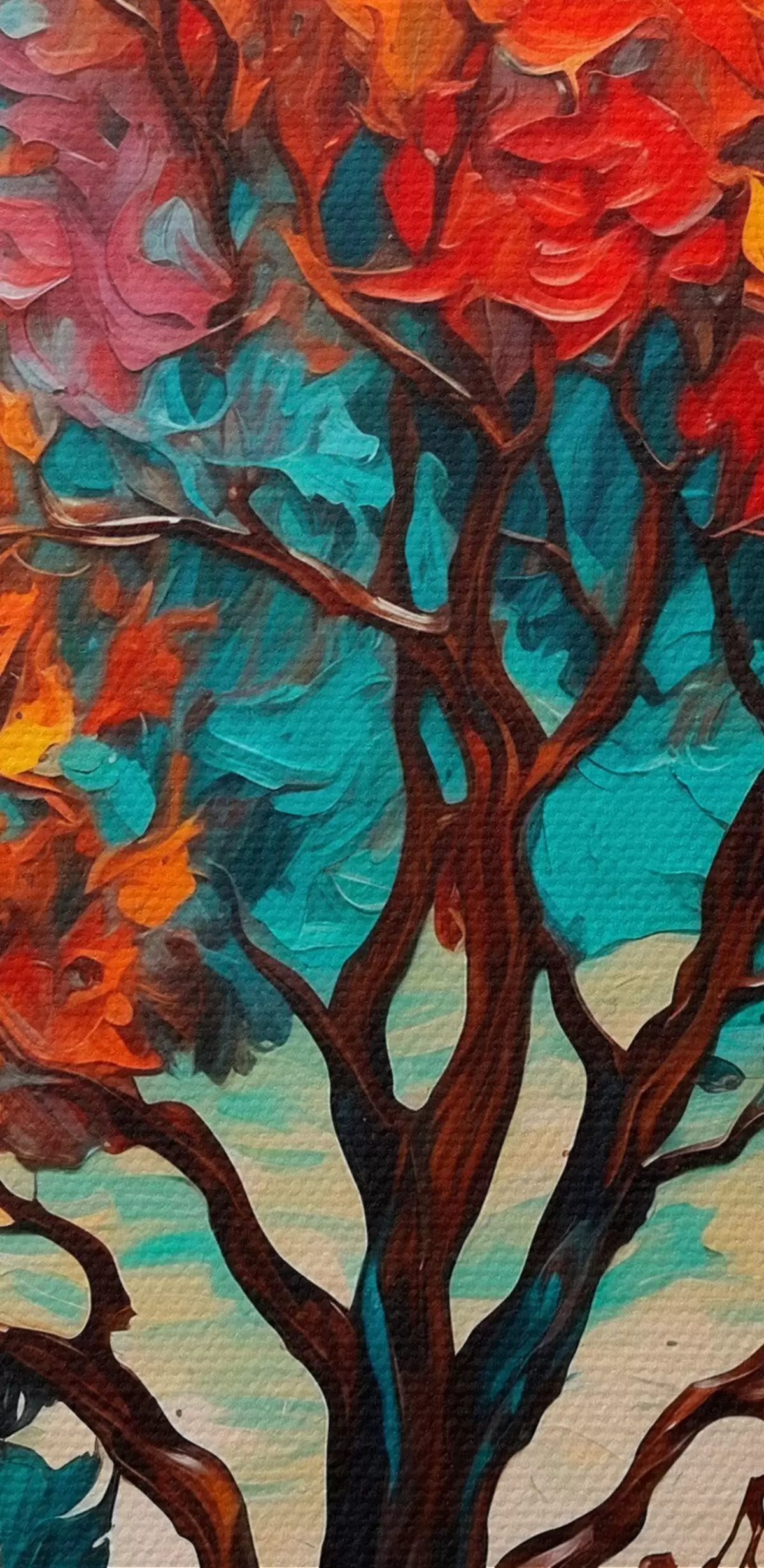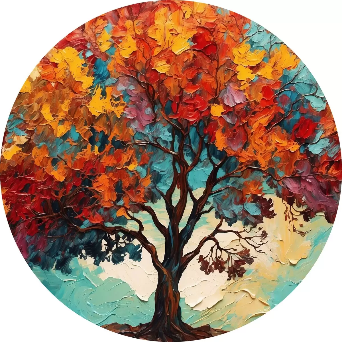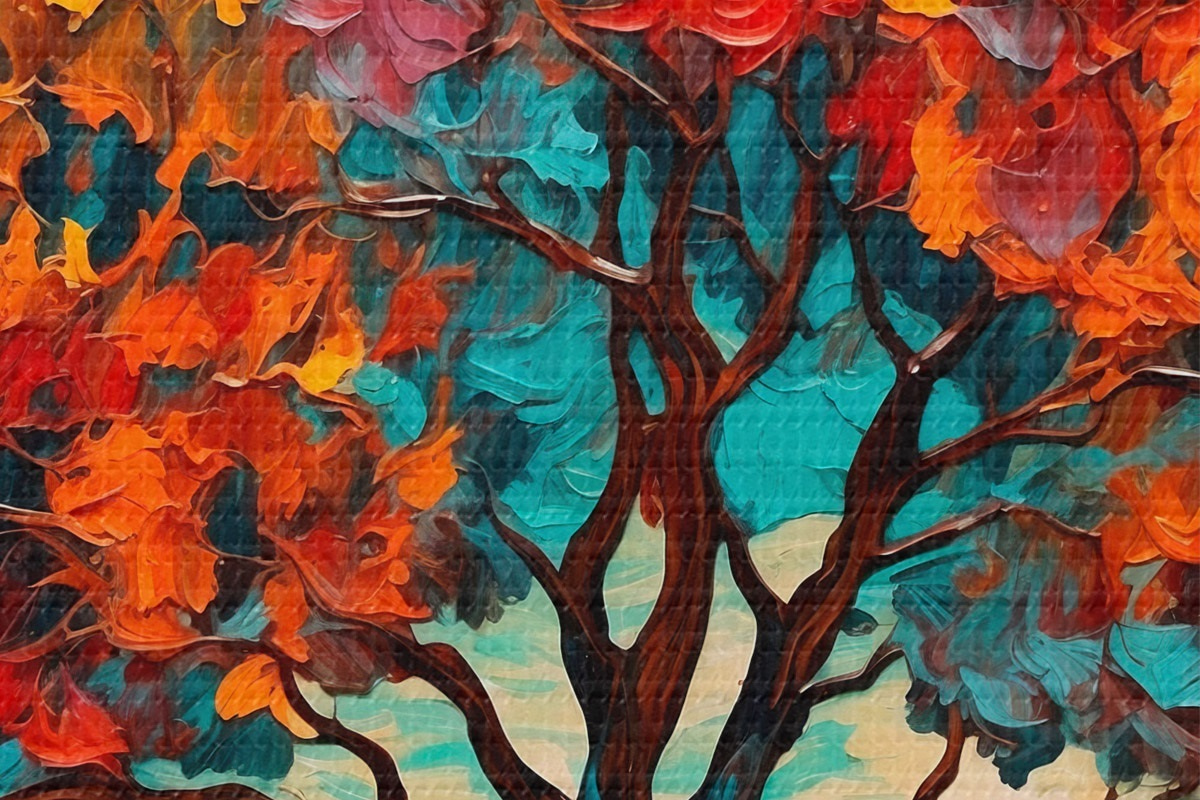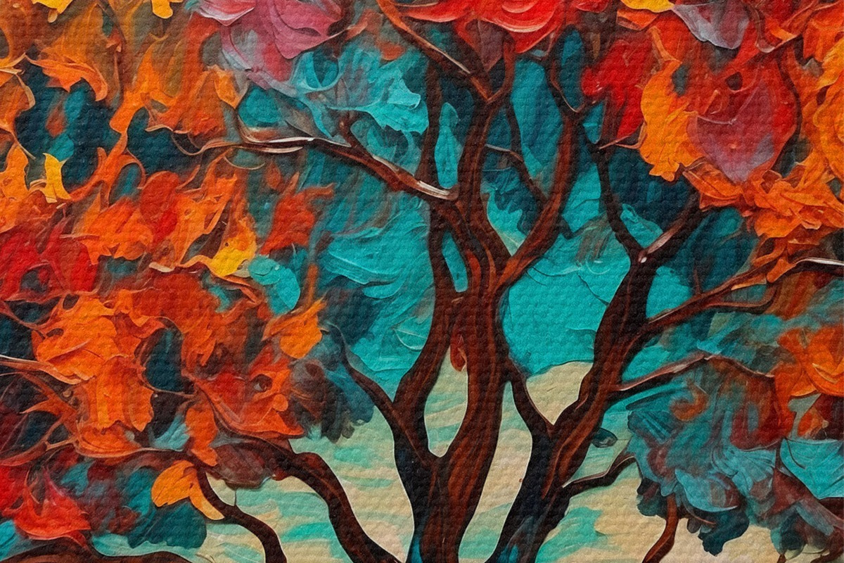 Pilt Puu oranži-sinisel taustal õlimaalide stiilis Nr r42267