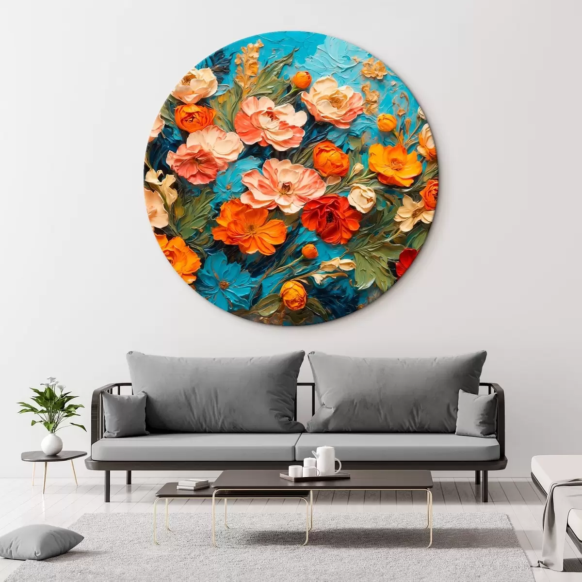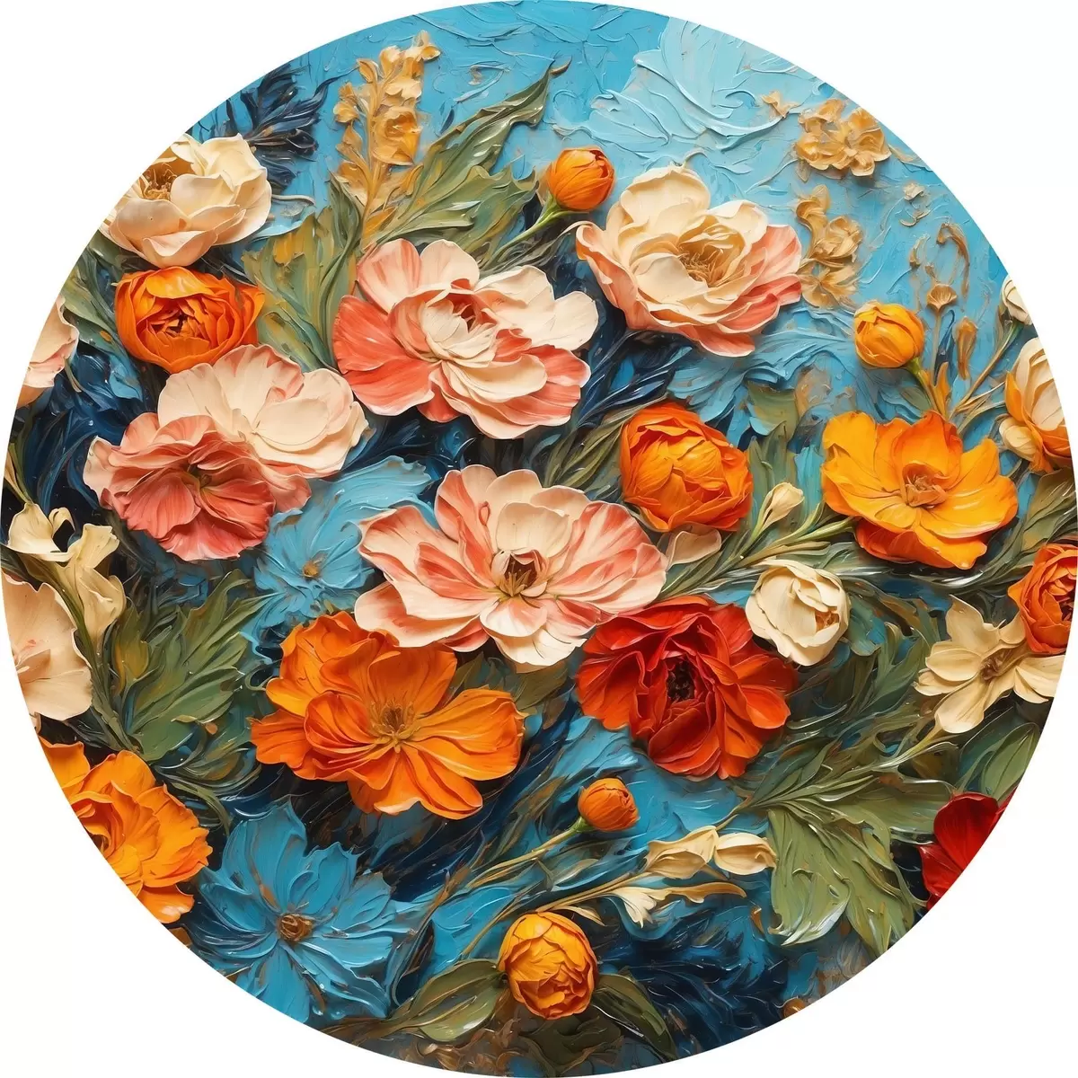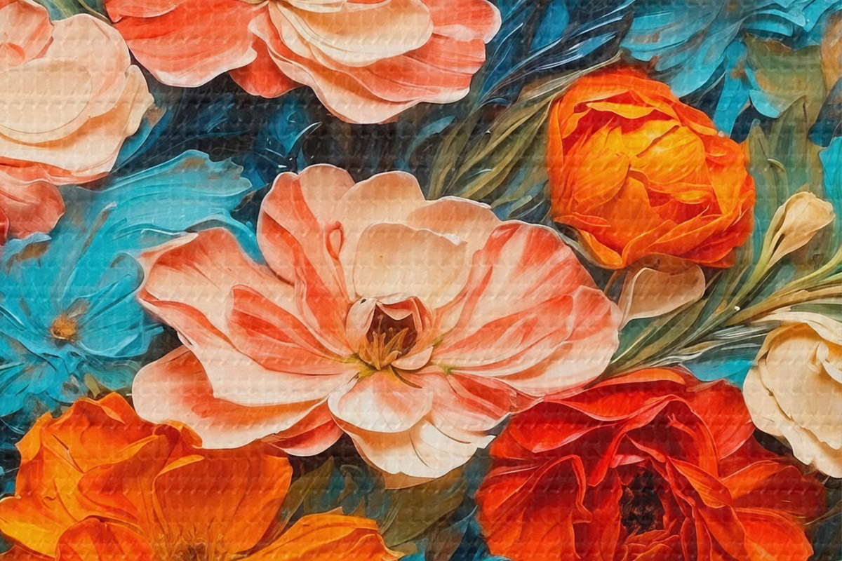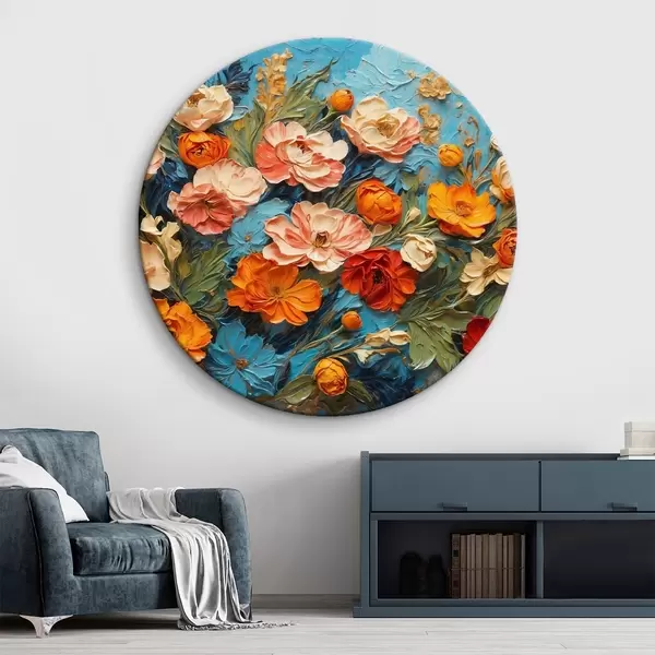 Pilt Erinevad lilled abstraktsel sinisel taustal õlimaalide stiilis Nr r42269