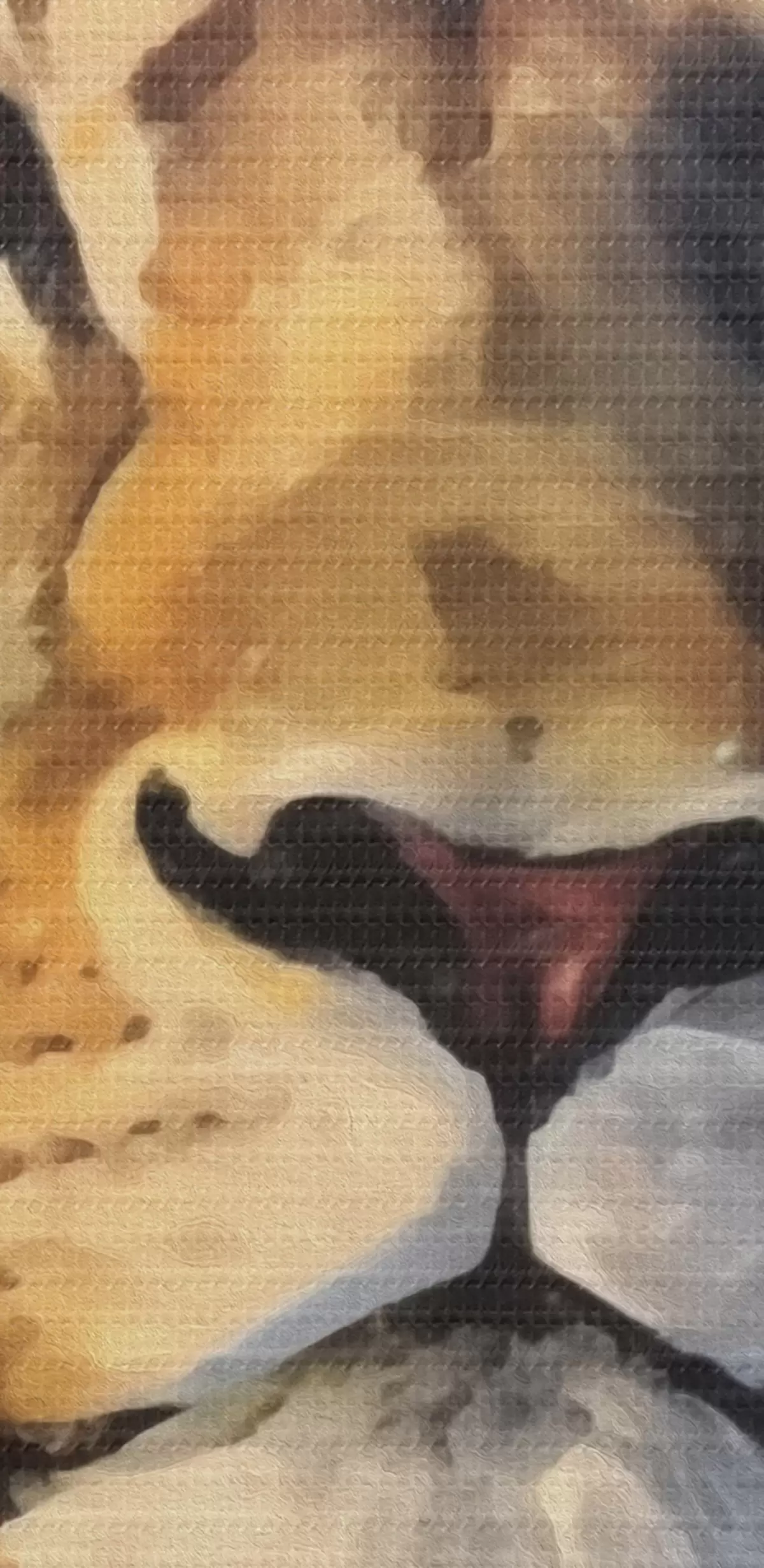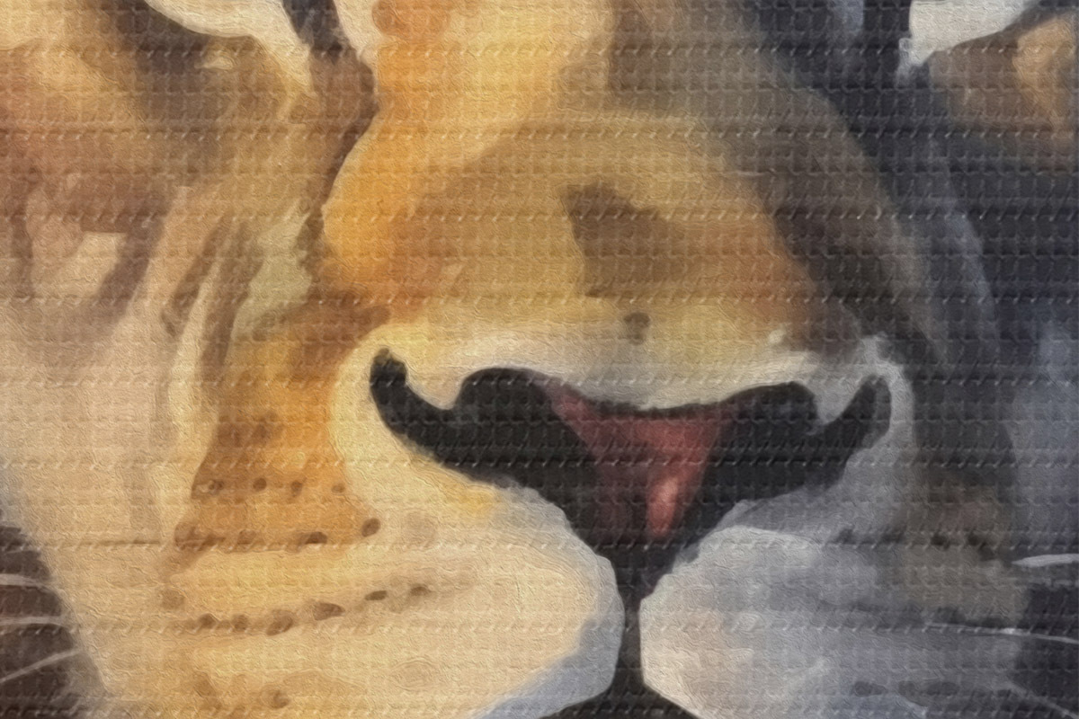 Selle lõuendi peenike niidipunus meenutab professionaalse kunstniku lõuendi pinda.