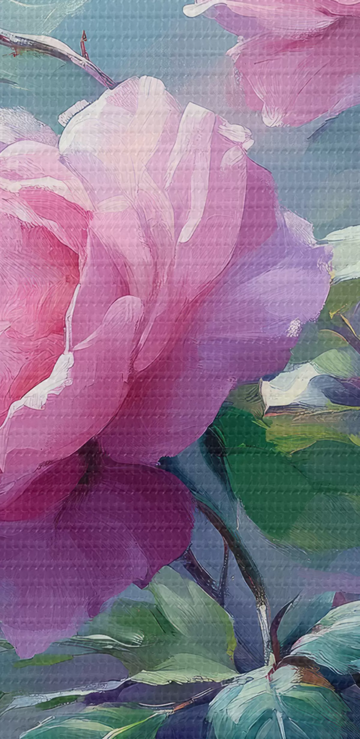 Selle lõuendi peenike niidipunus meenutab professionaalse kunstniku lõuendi pinda.