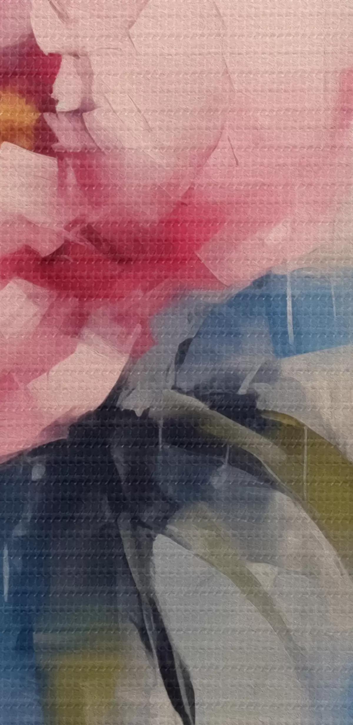Selle lõuendi peenike niidipunus meenutab professionaalse kunstniku lõuendi pinda.