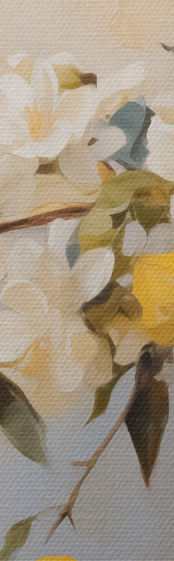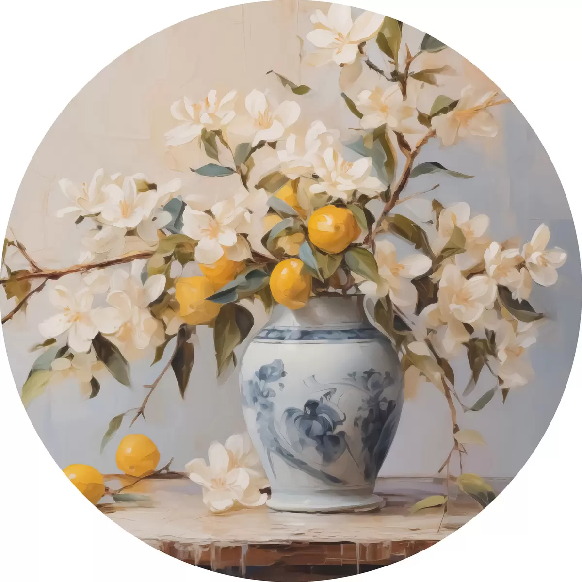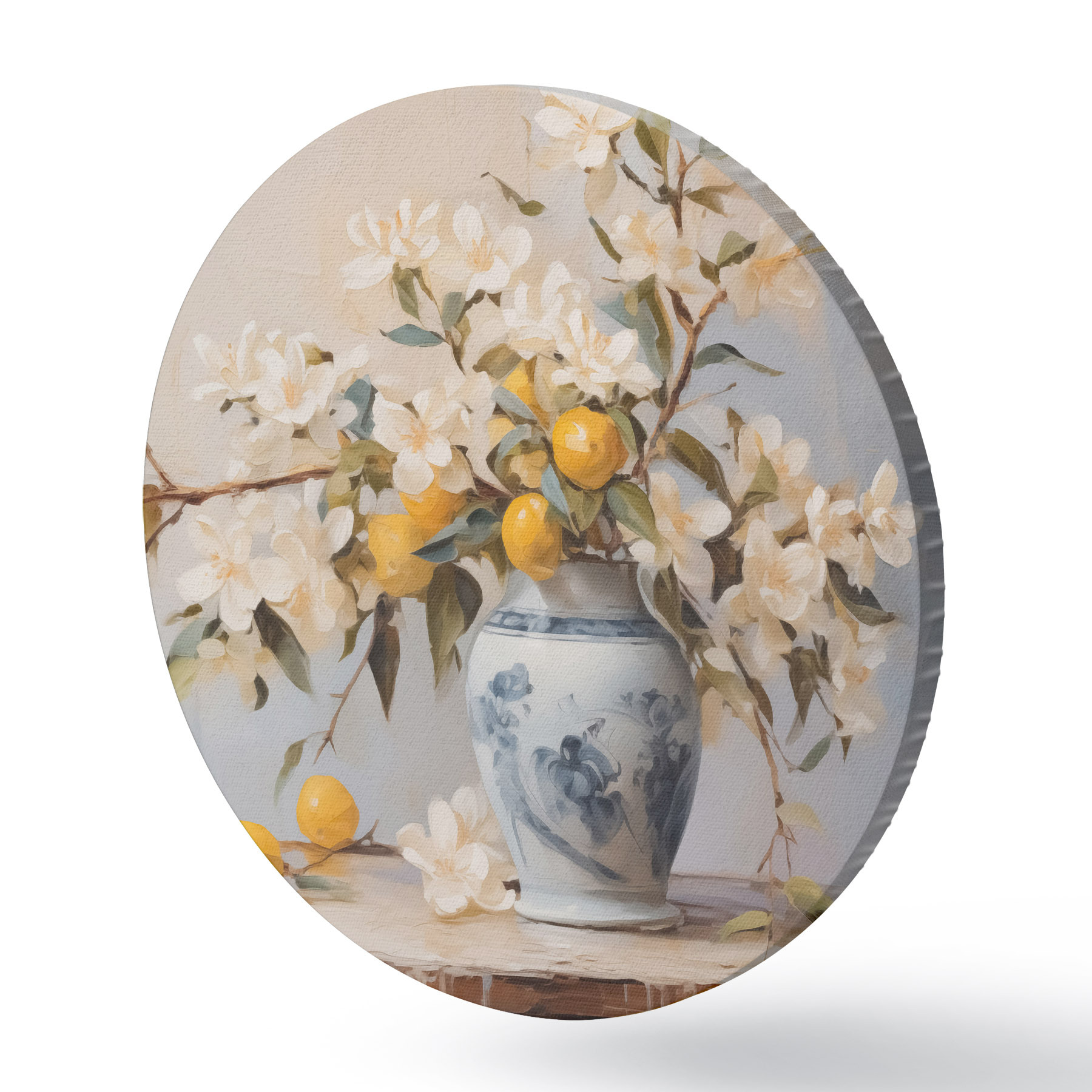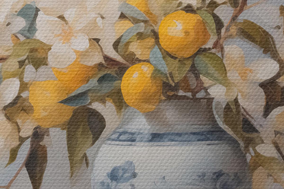 Pilt Vasi valgete lillede okstega ja sidruni imitatsiooniga maaliga Nr r42360