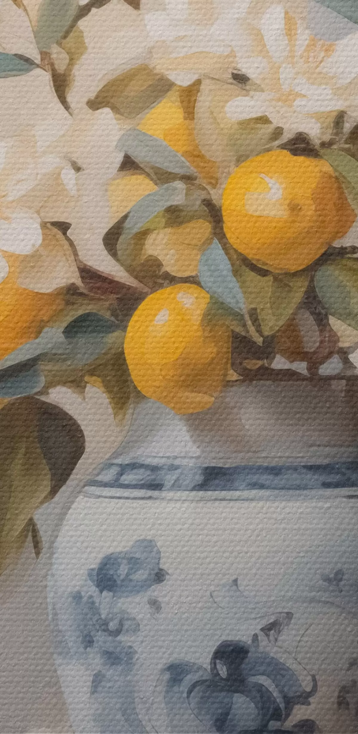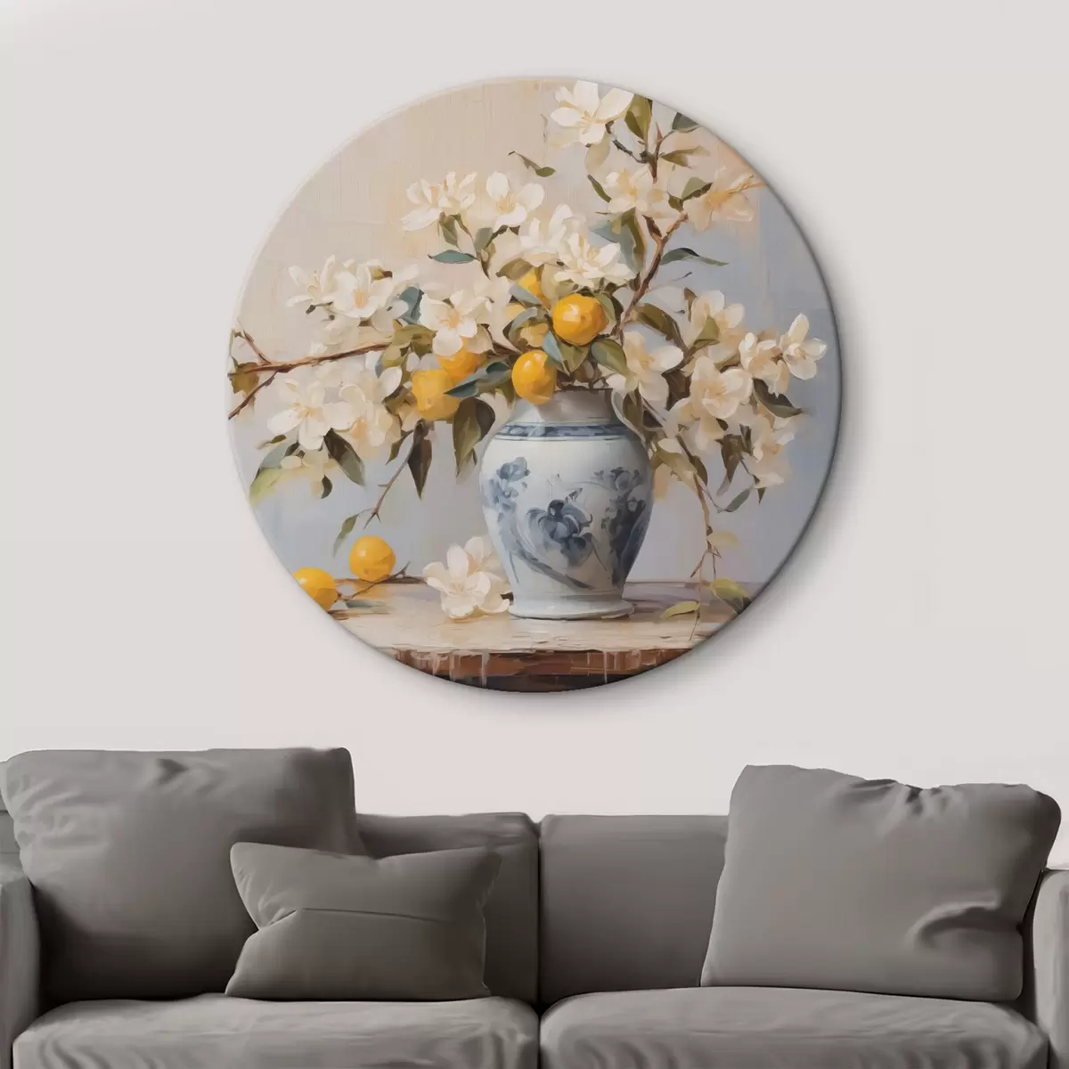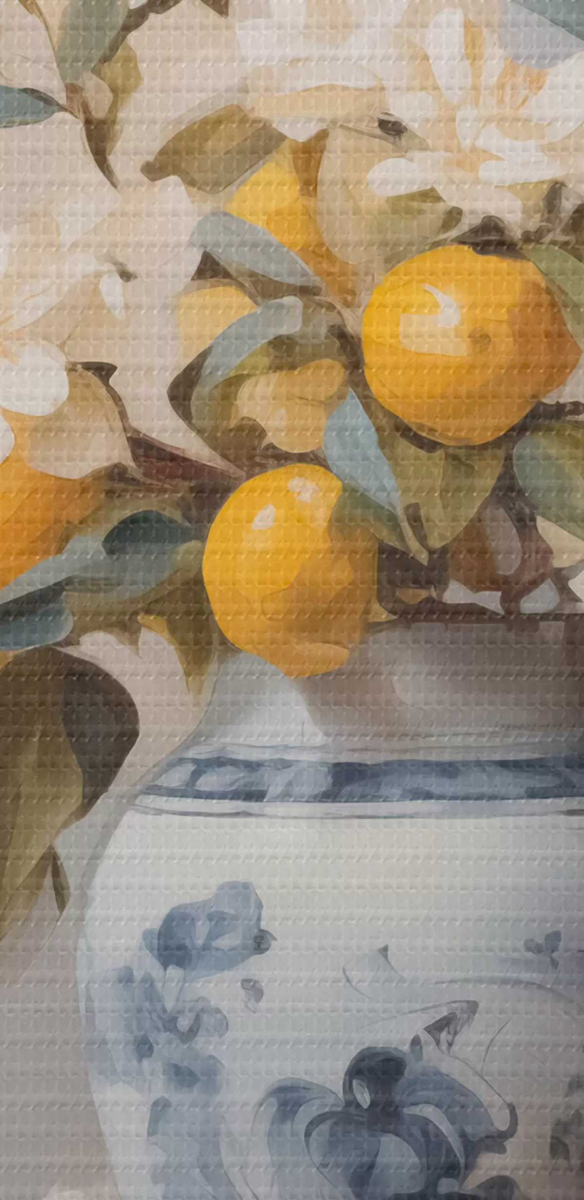 Pilt Vasi valgete lillede okstega ja sidruni imitatsiooniga maaliga Nr r42360