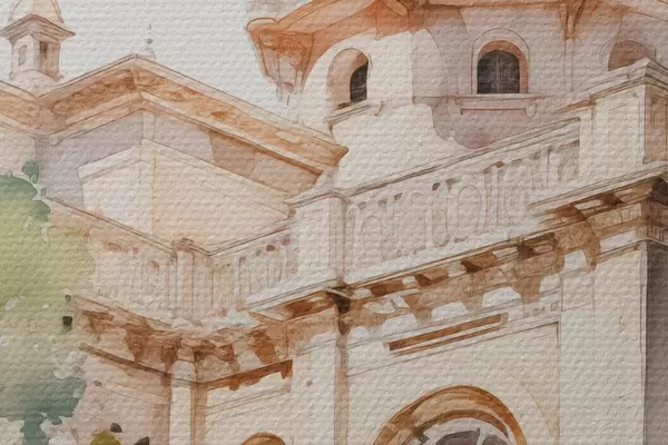 Pilt Aed maja lähedal imitatsioon akvarell Nr r42362
