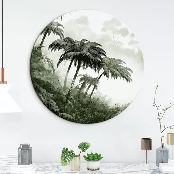 Ümmargused maalid Džunglimets udus, palmid, loodus, rohelised värvid r42372v1
