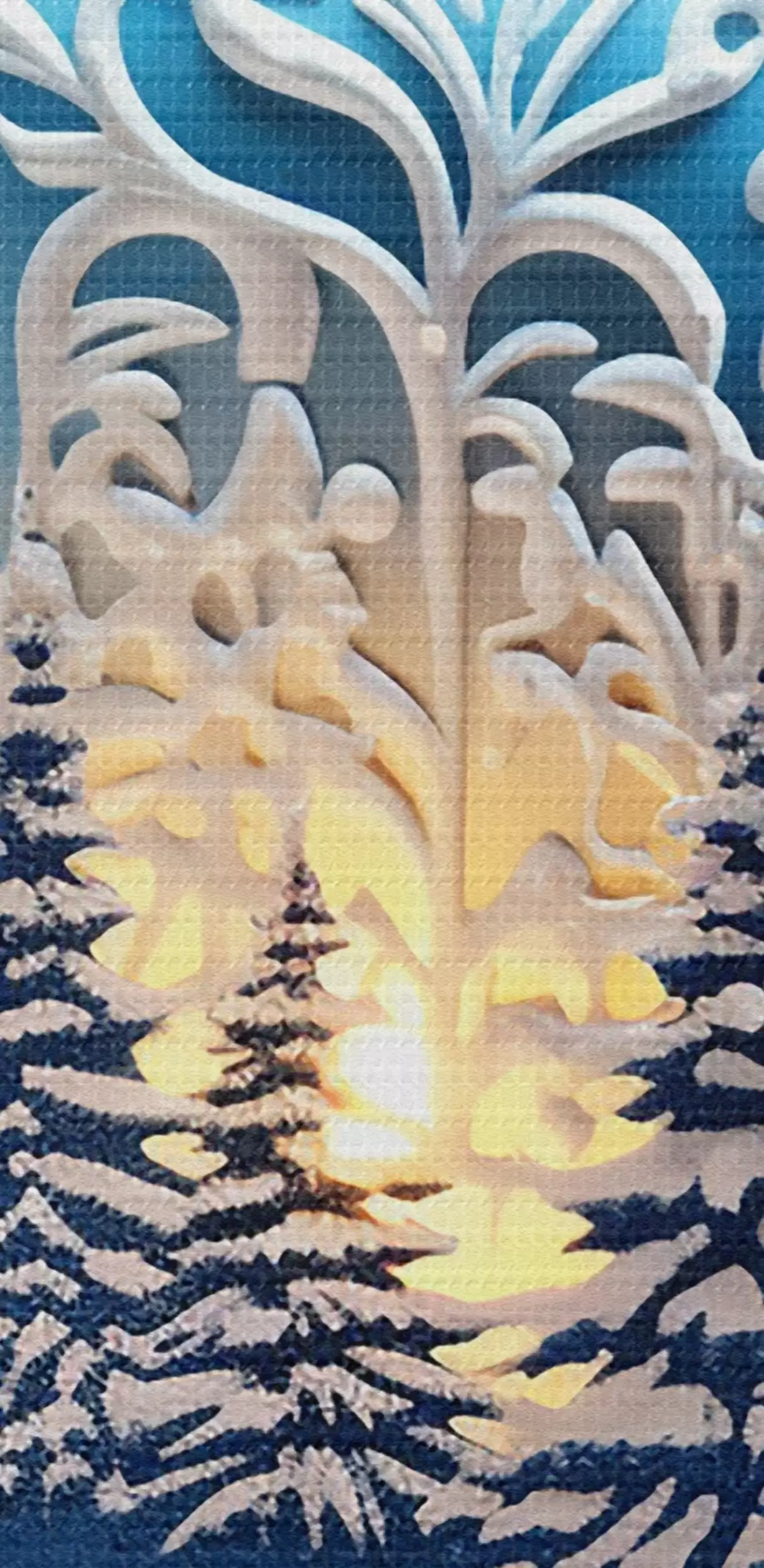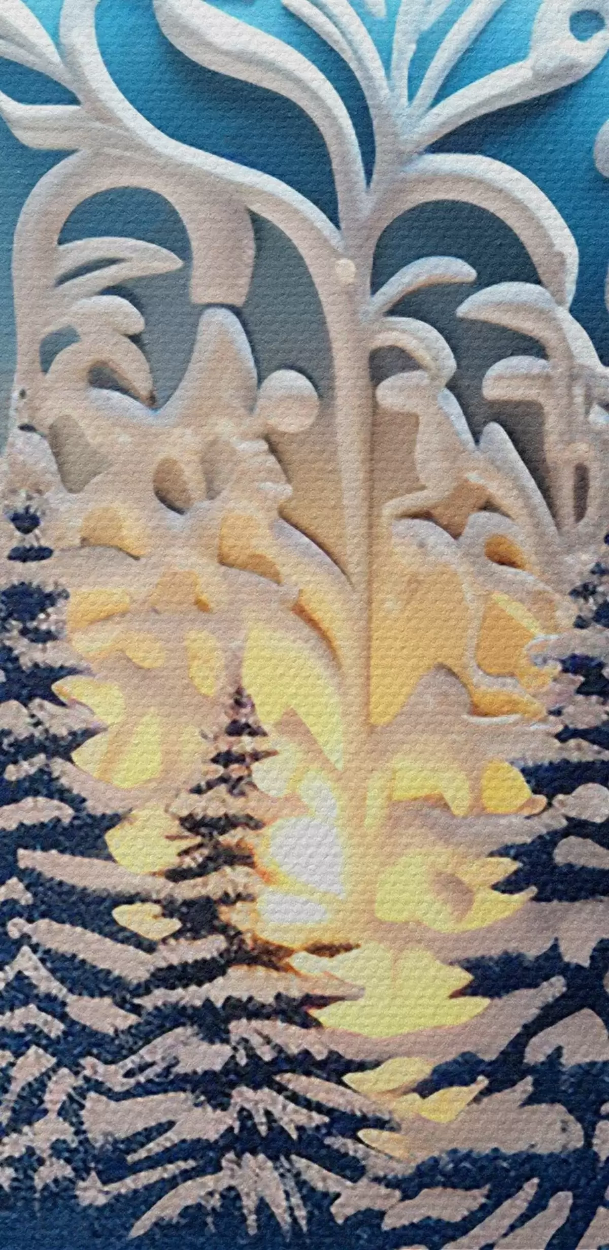 Selle lõuendi peenike niidipunus meenutab professionaalse kunstniku lõuendi pinda.