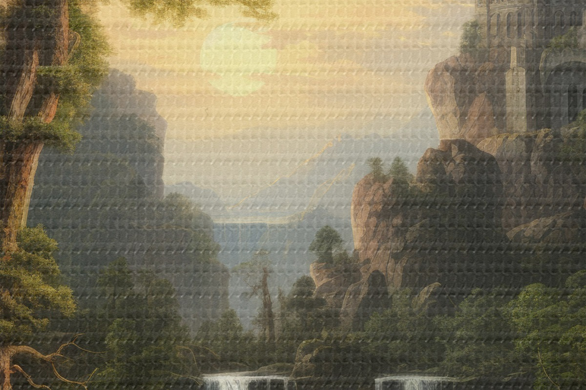 Selle lõuendi peenike niidipunus meenutab professionaalse kunstniku lõuendi pinda.