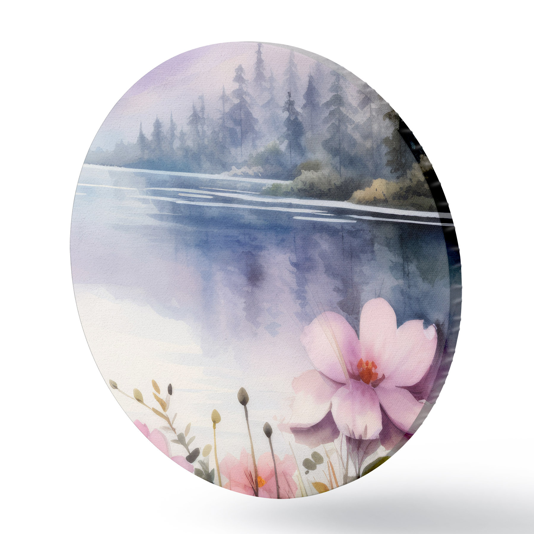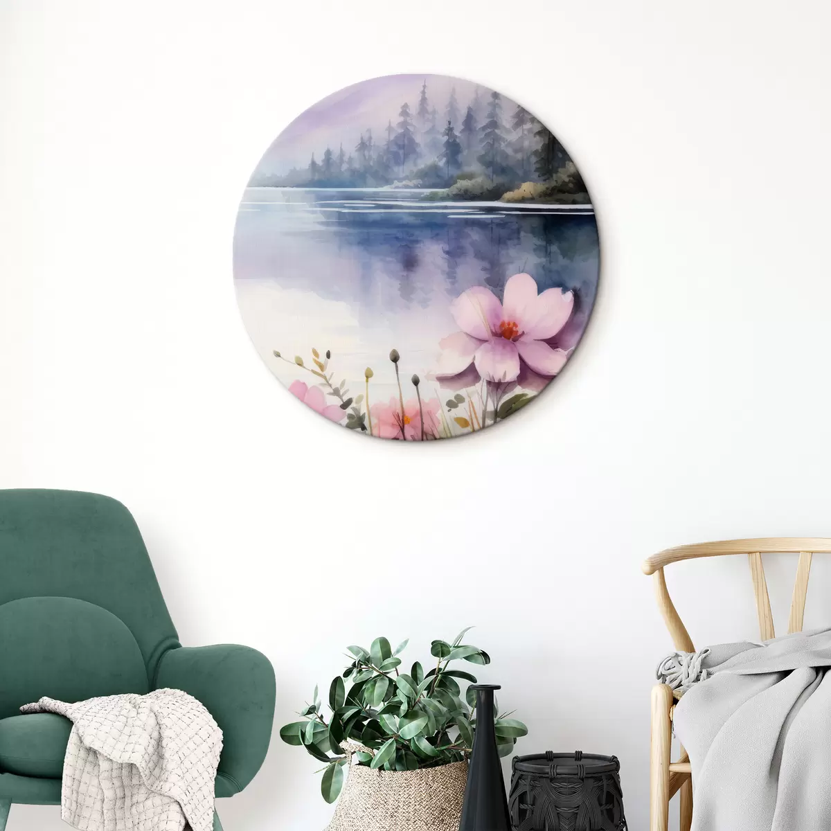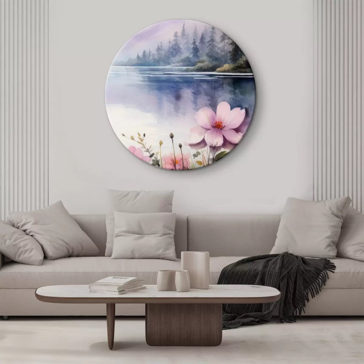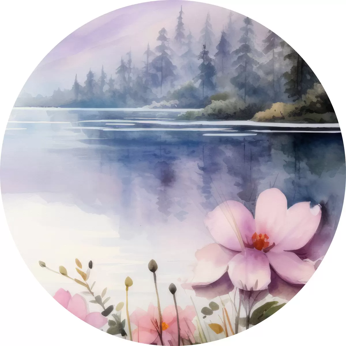 Pilt Roosad lilled mägedes asuva järve taustal Nr r42393