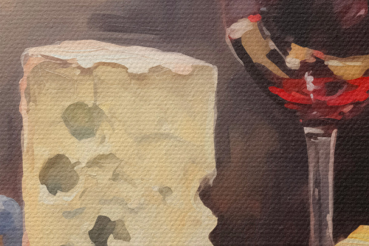 Pilt Klaas punast veini ja juustude imitatsioonimaali Nr r42415