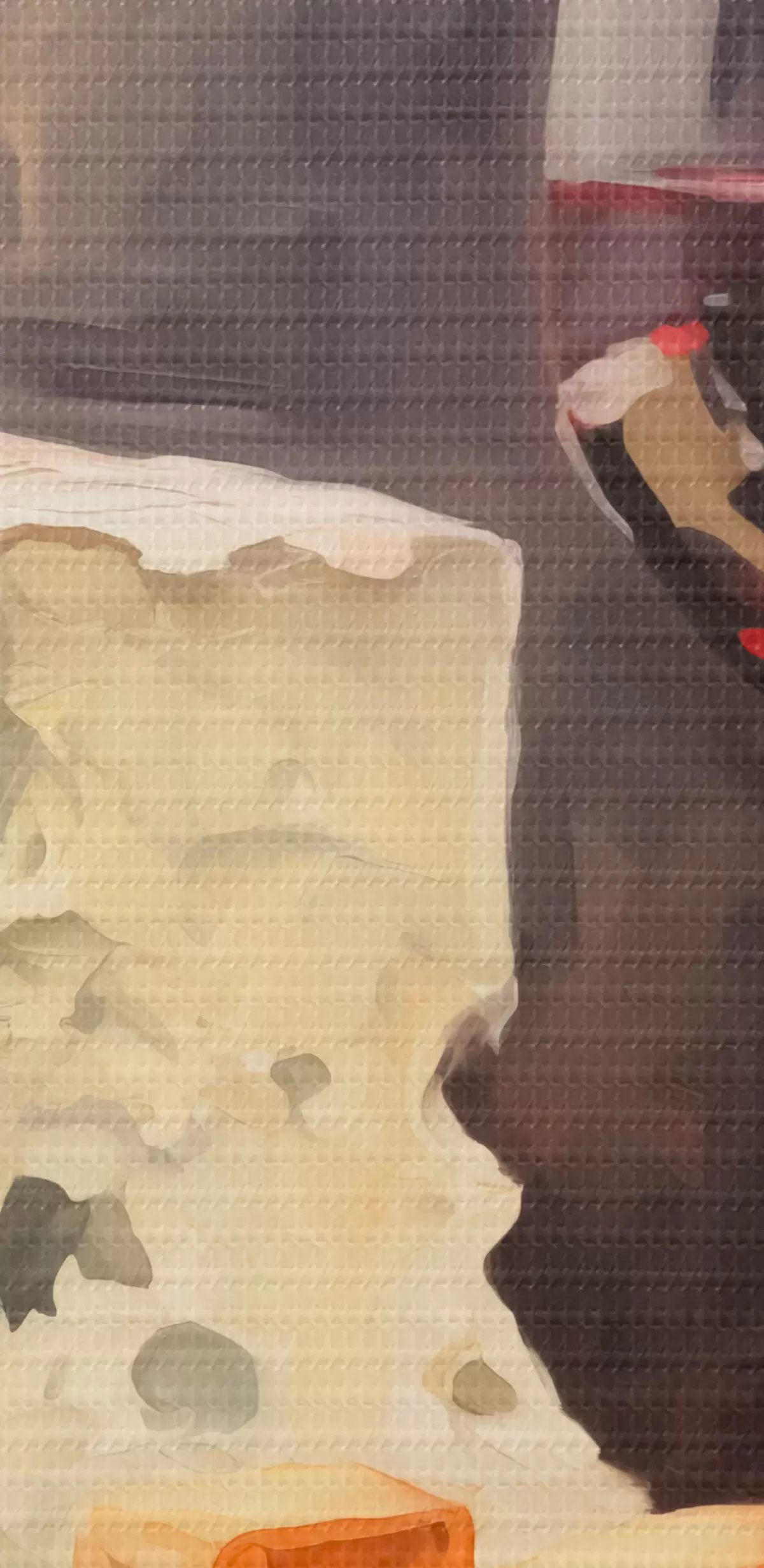 Selle lõuendi peenike niidipunus meenutab professionaalse kunstniku lõuendi pinda.