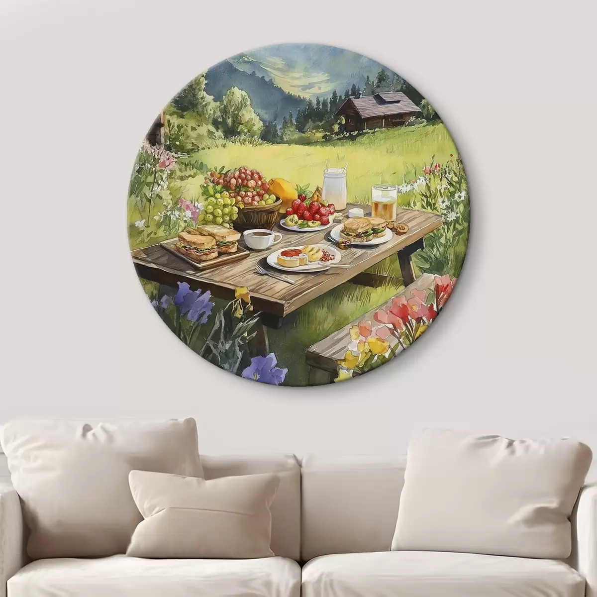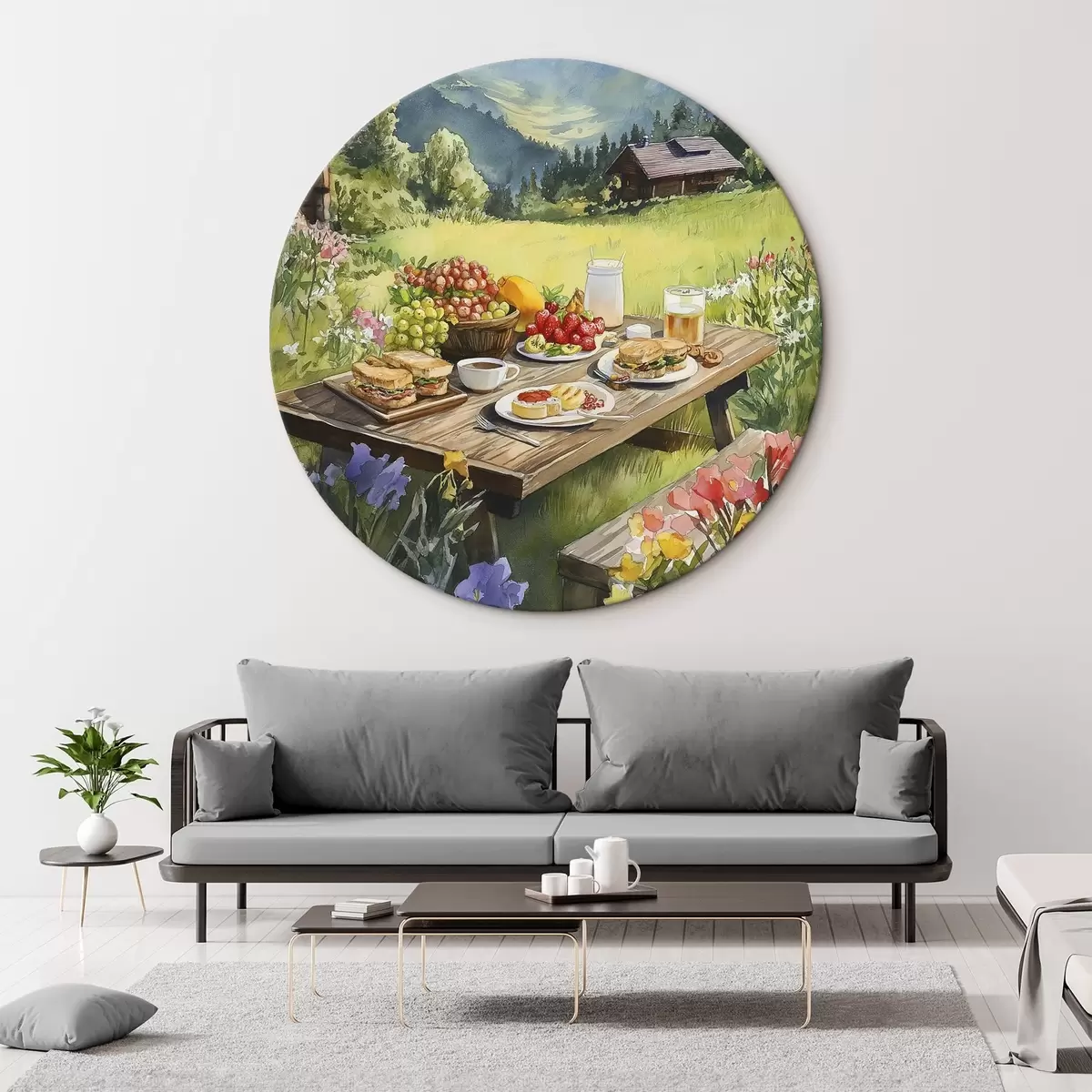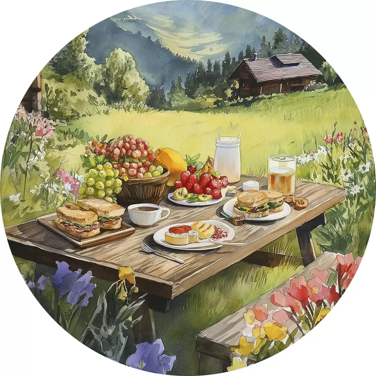 Pilt Mägimaastikud, suvine heinamaa, metsamajad, hommikusöök Nr r42425