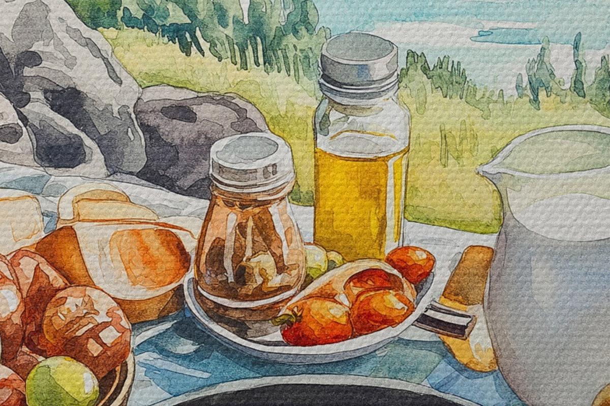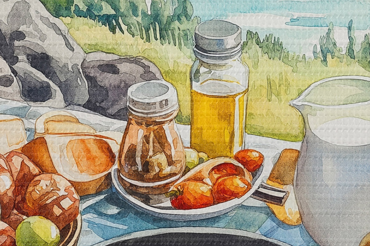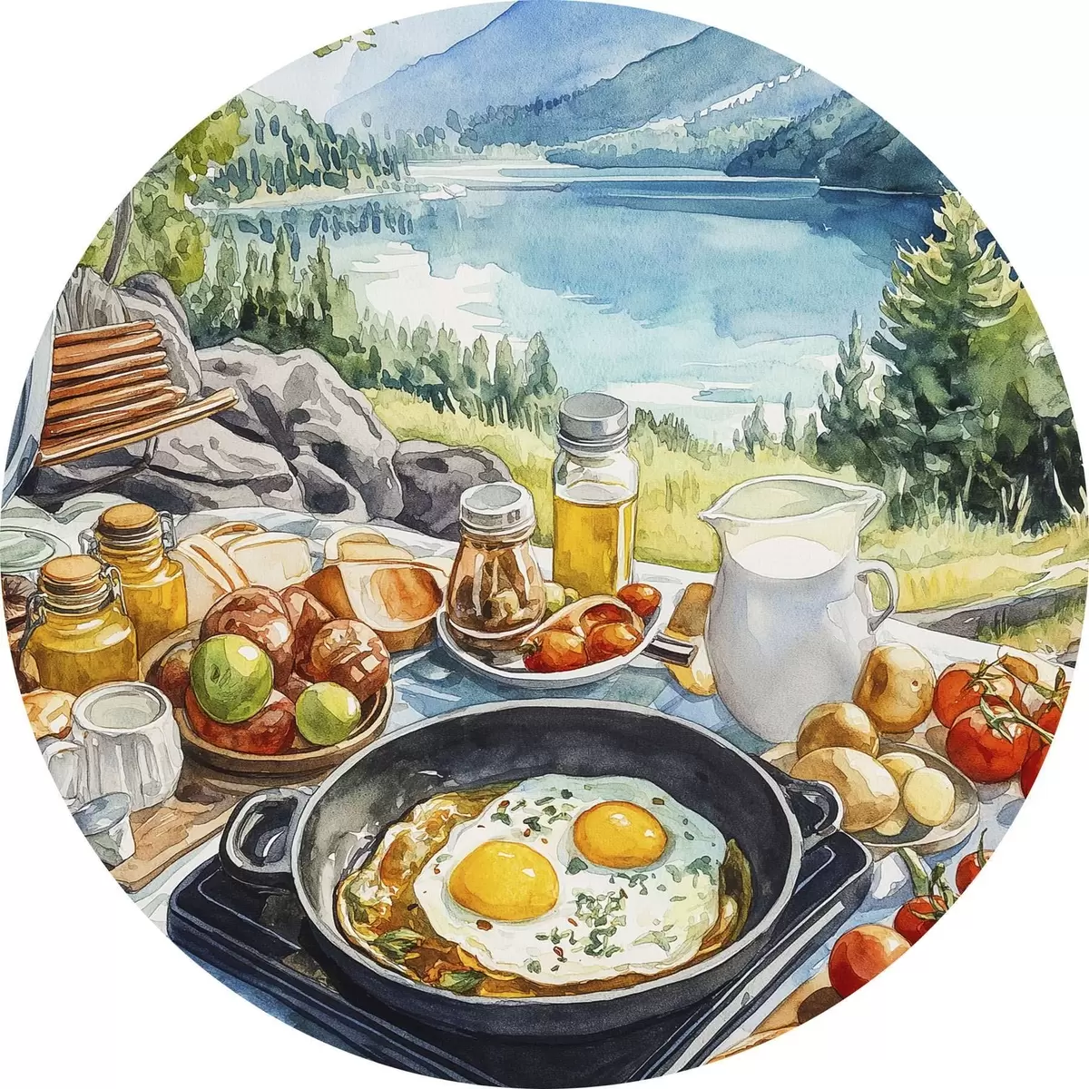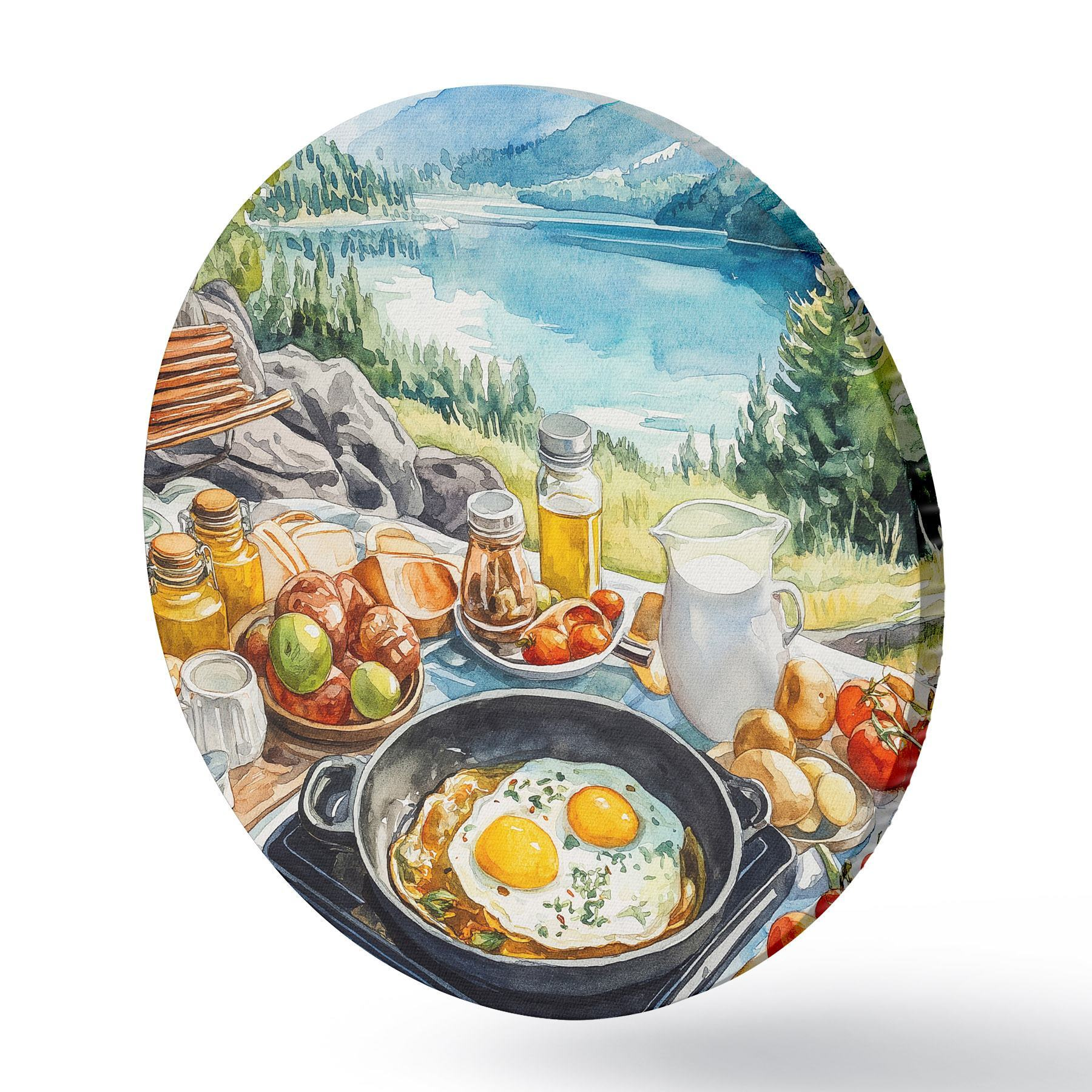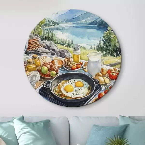 Pilt Esteetiline hommikusöök järve ääres, akvarellistiilis Nr r42432