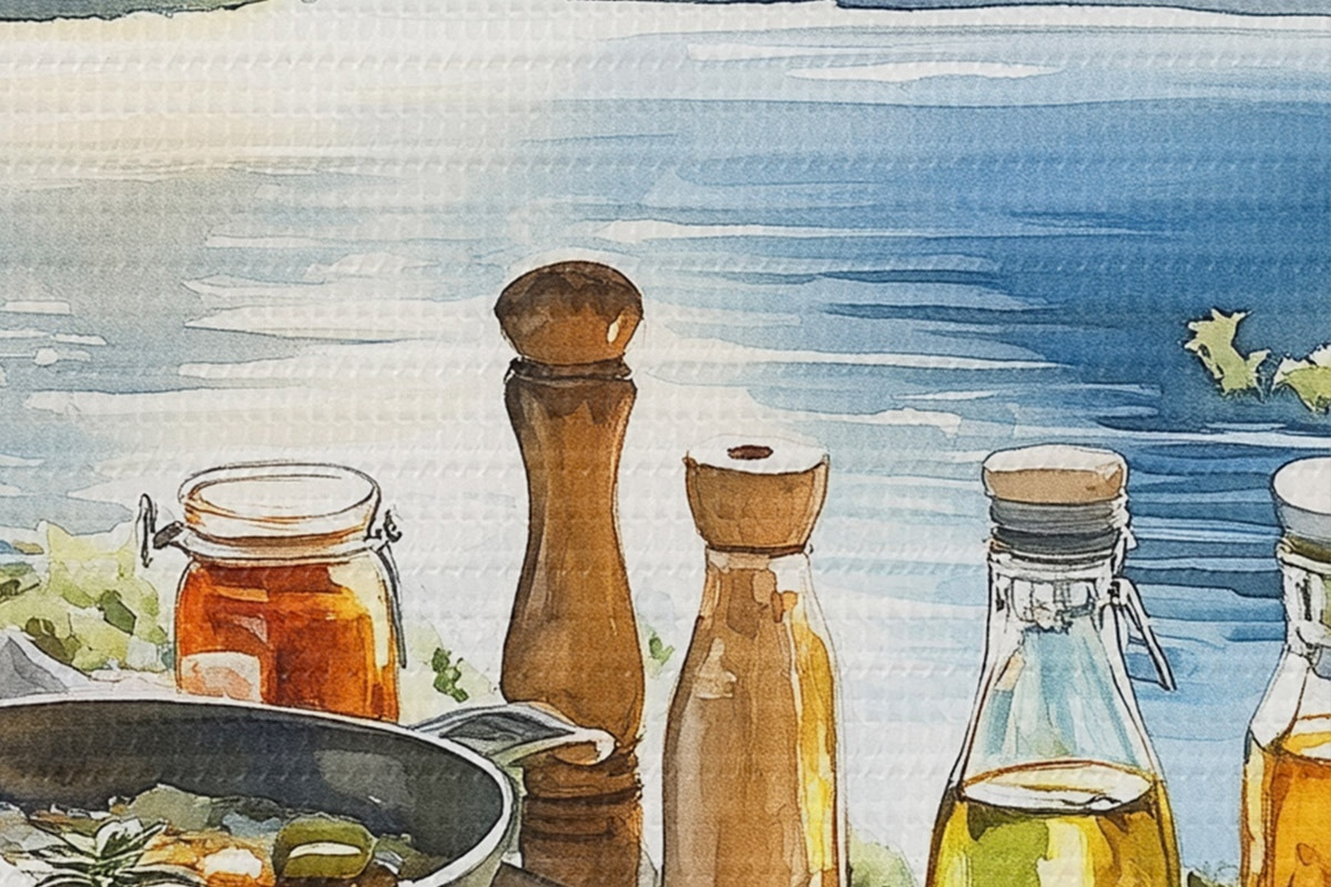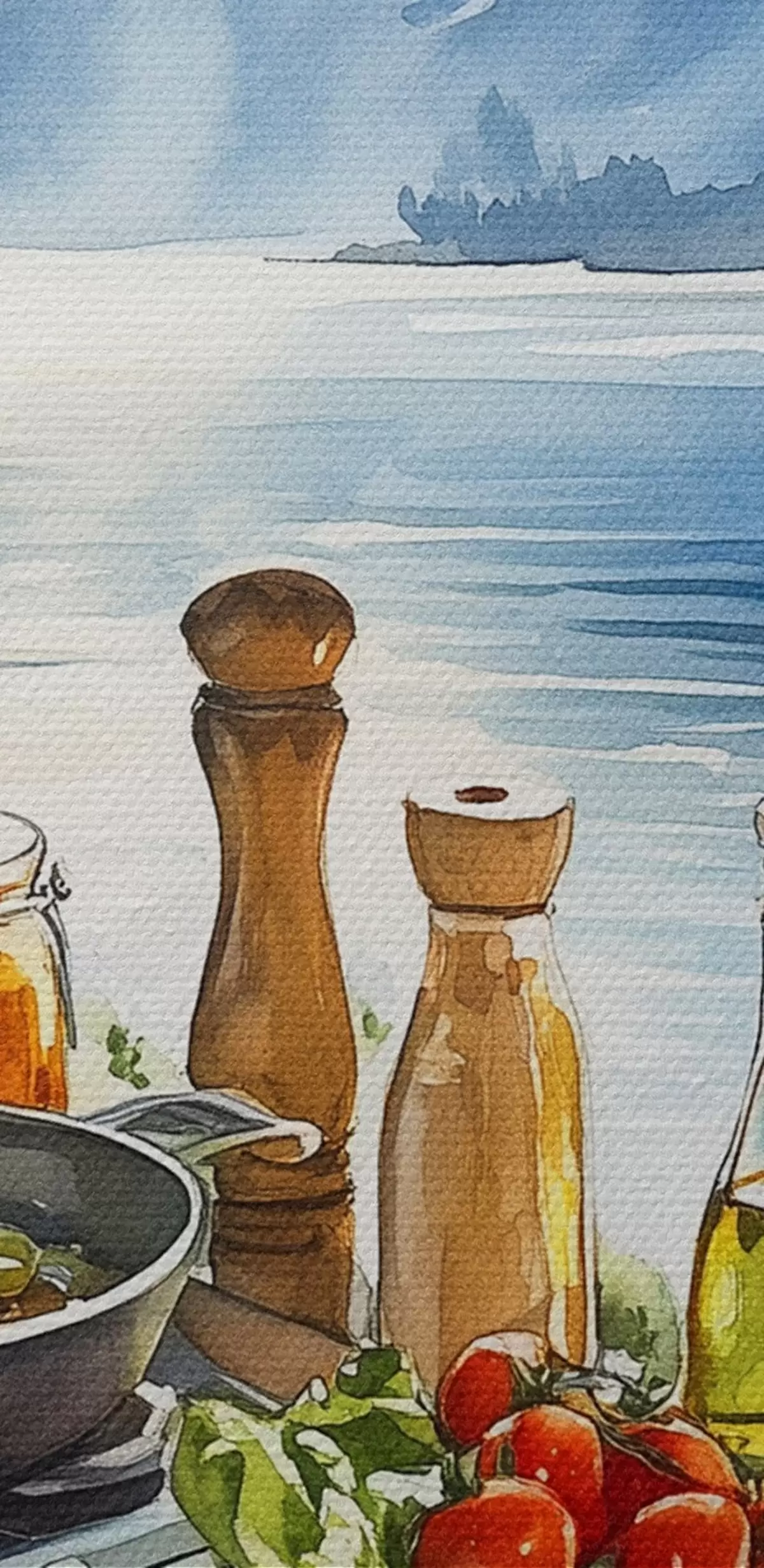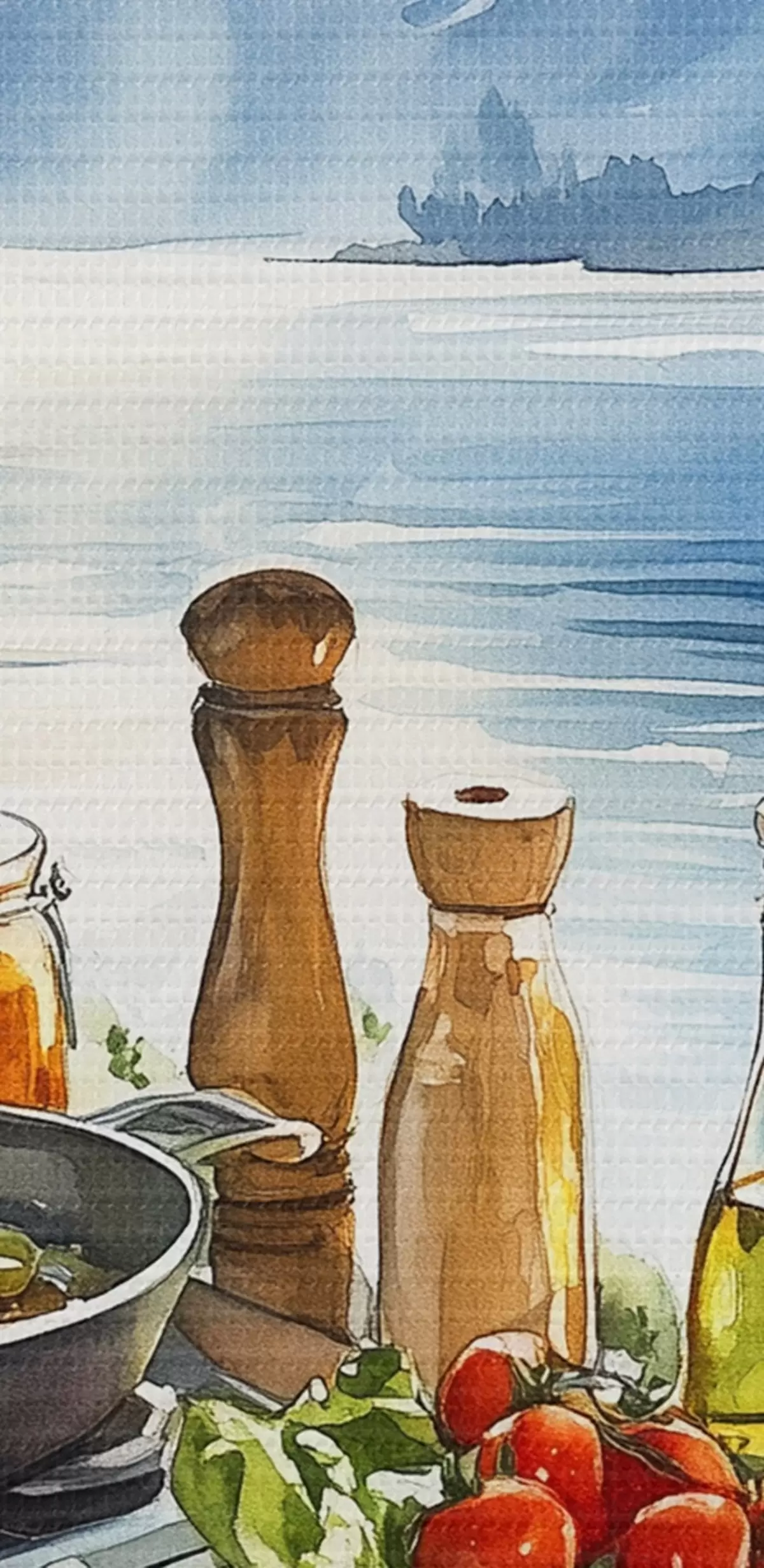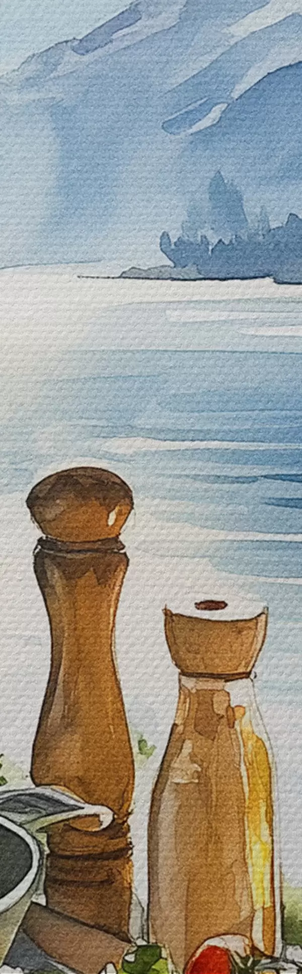 Pilt Ilus suvehommik, järv, akvarellstiil, hommikusöök, reisimine Nr r42433
