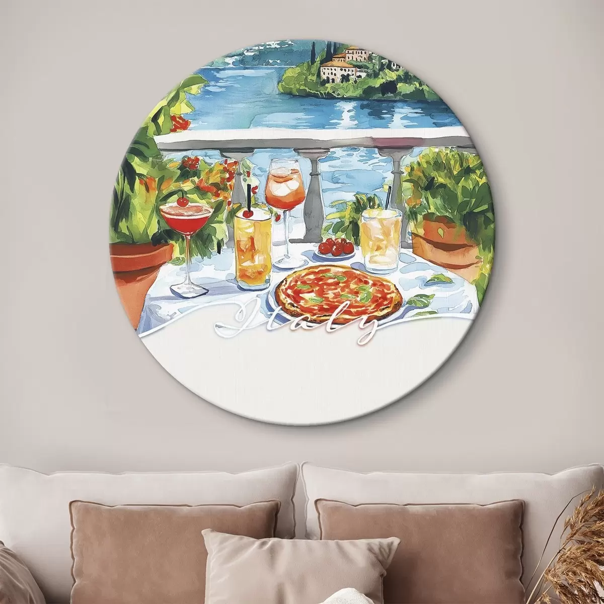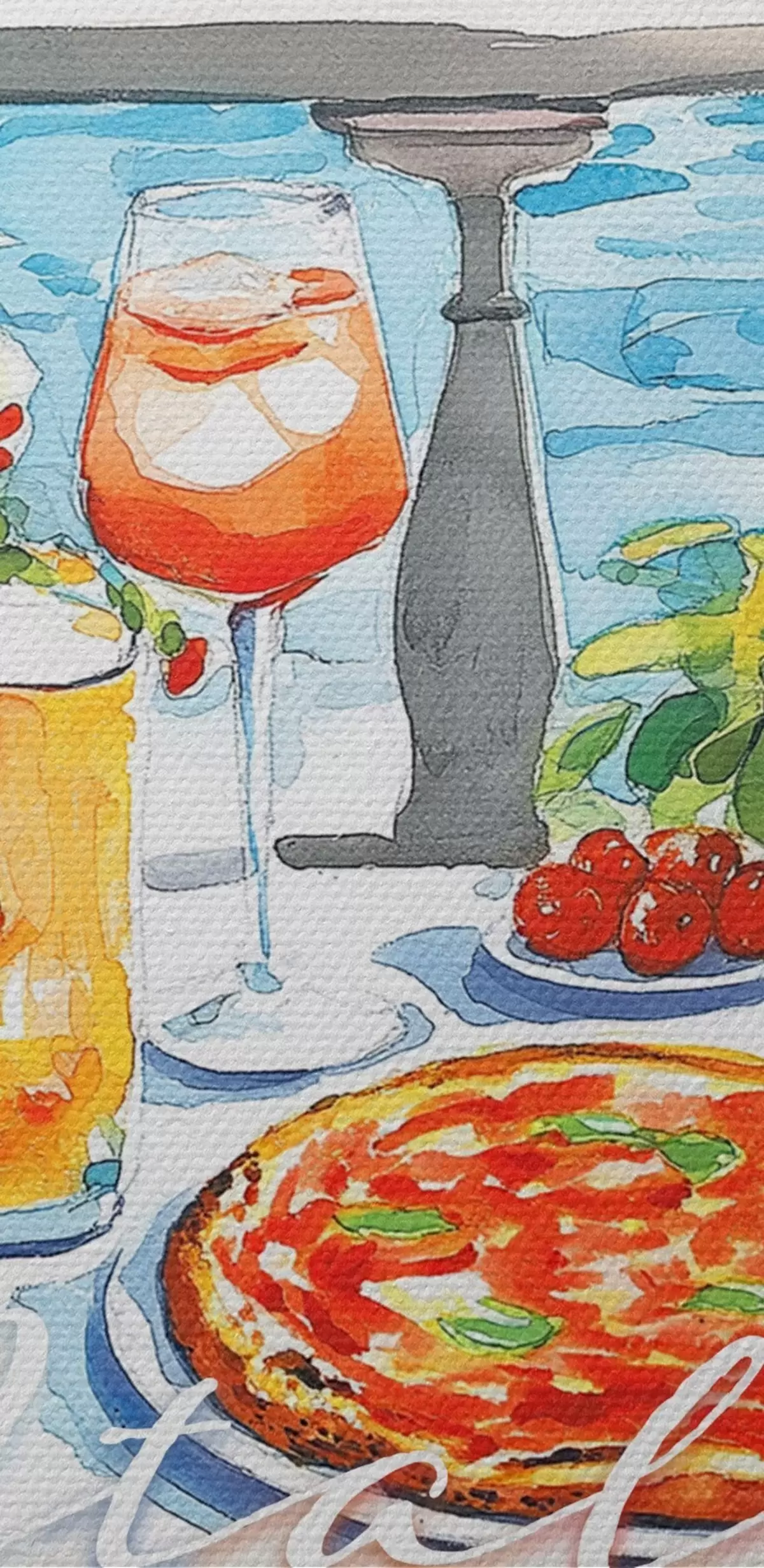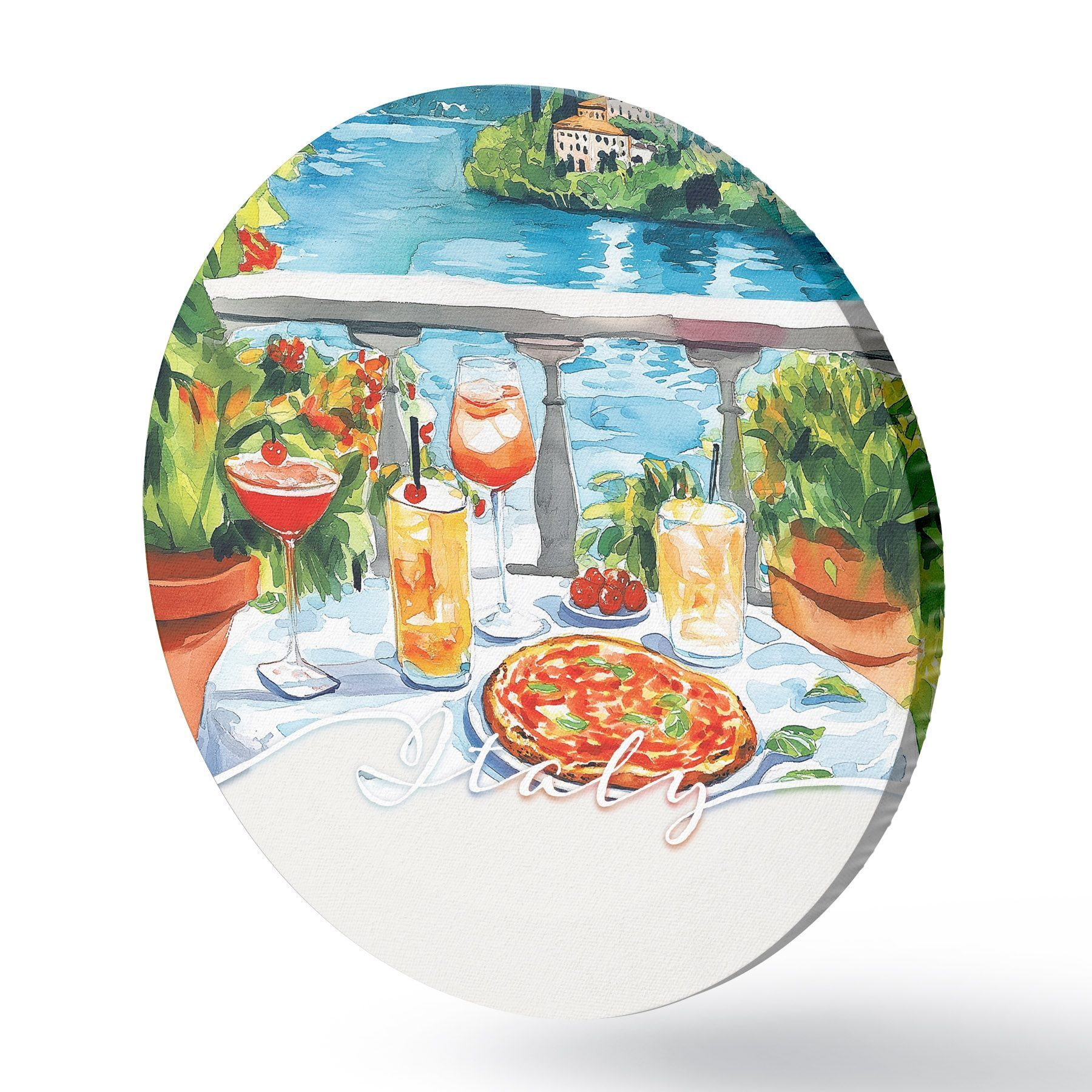 Pilt Itaalia esteetika, akvarellistiil, pitsa ja kokteilid, mäed Nr r42434