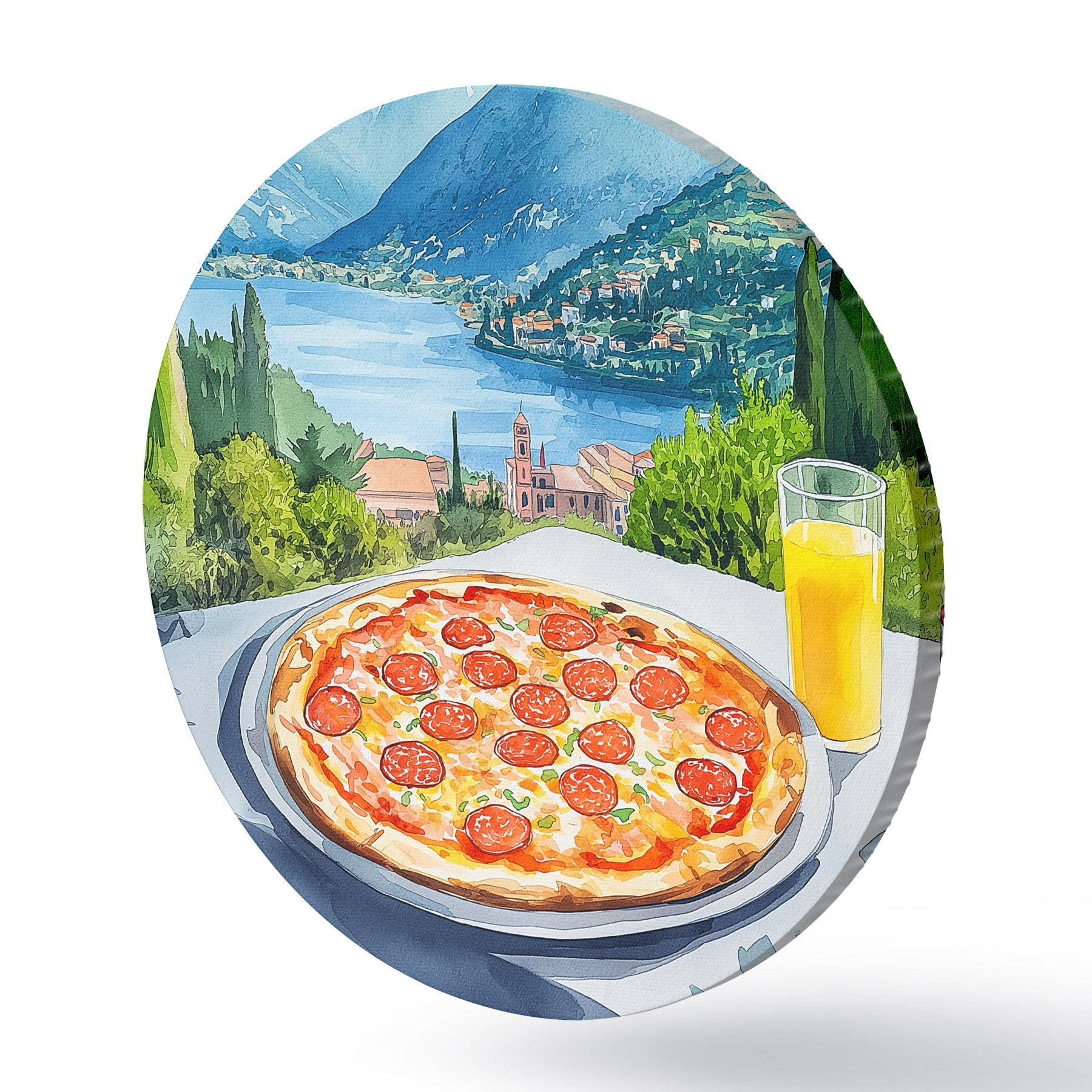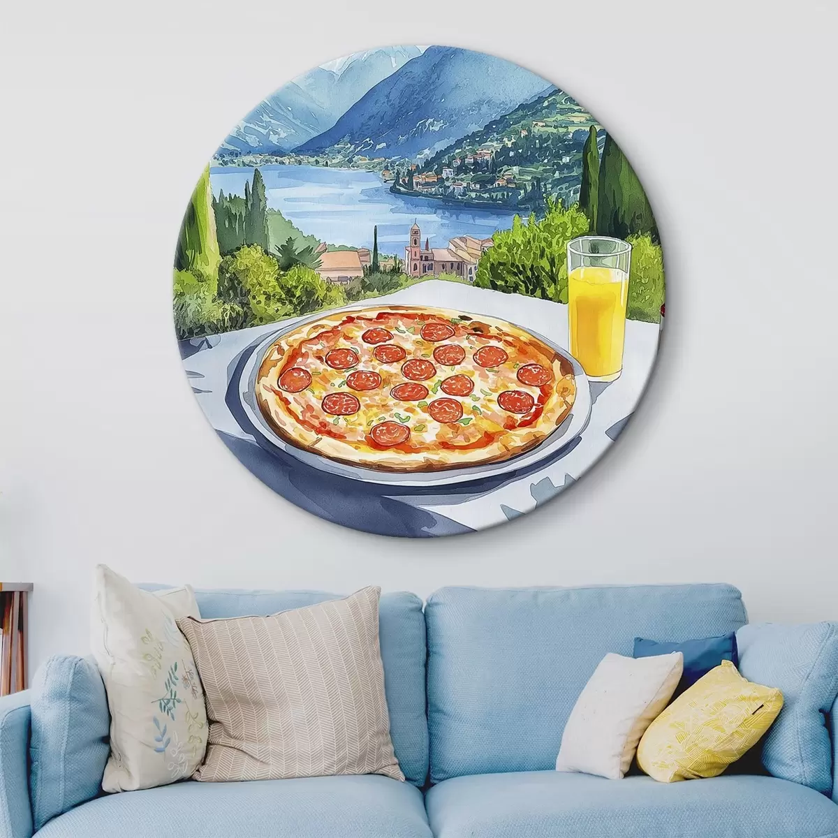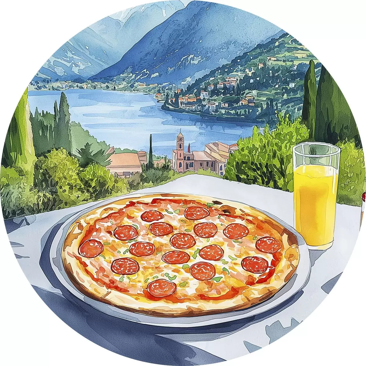 Pilt Akvarellistiil, Itaalia, pizza, vanalinn, mäed maastik Nr r42435