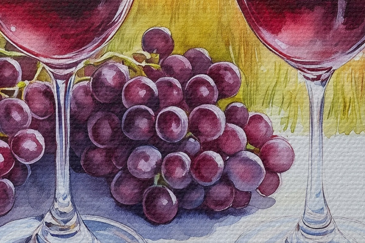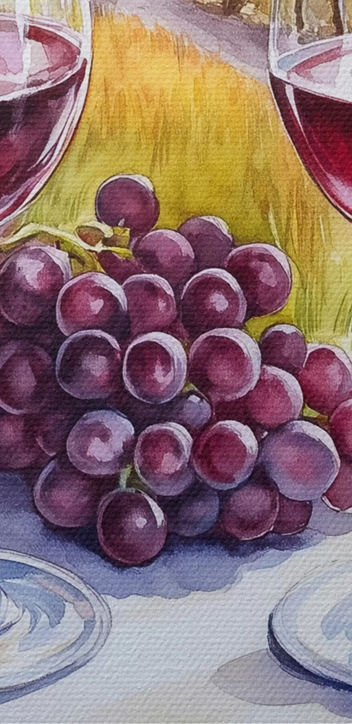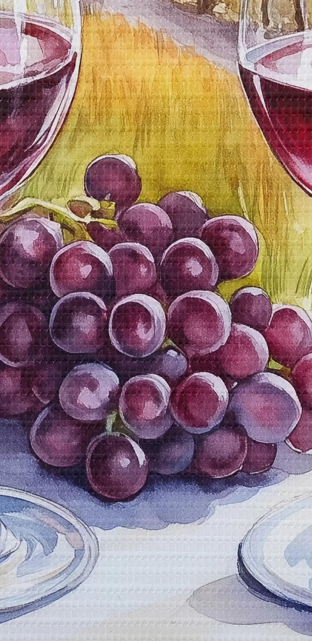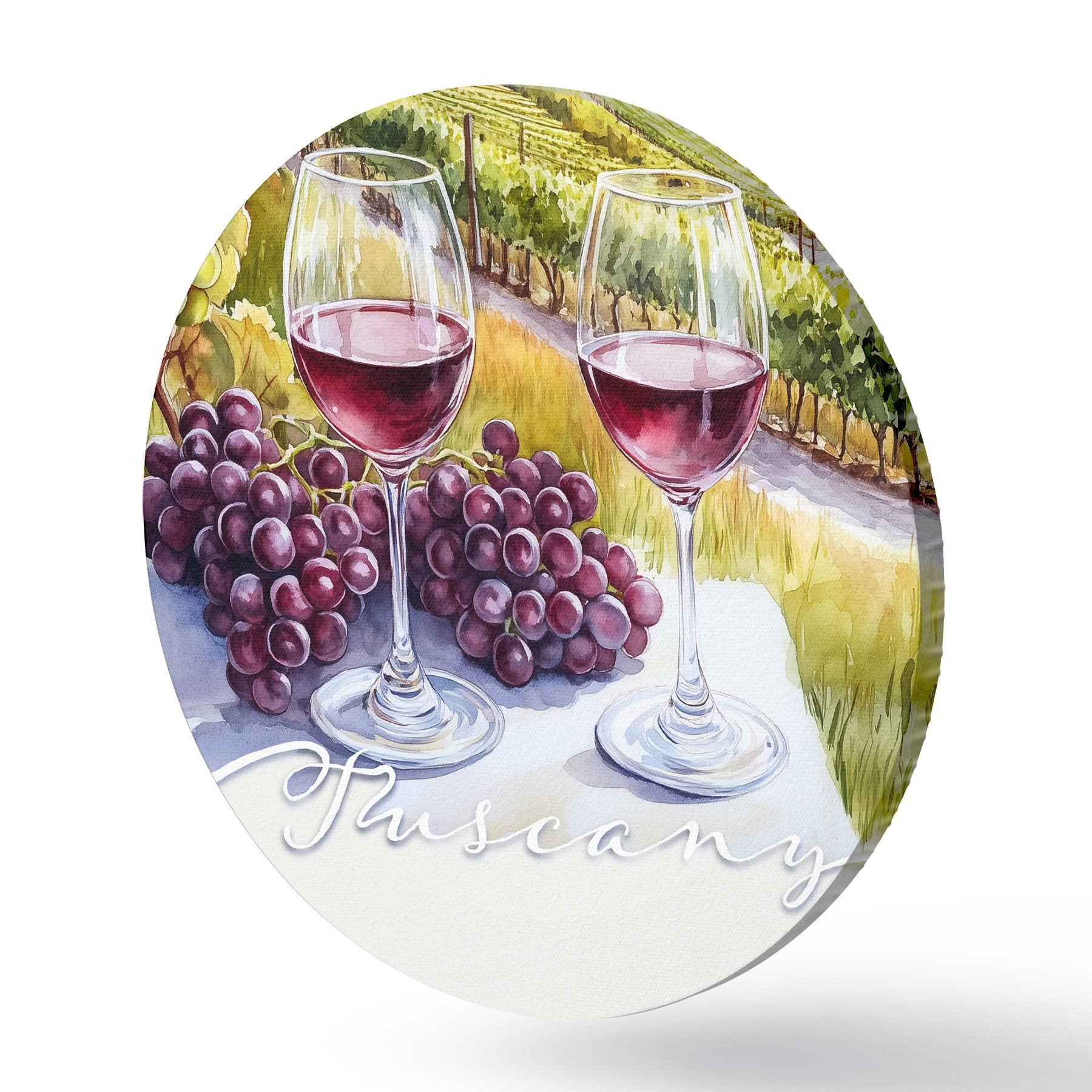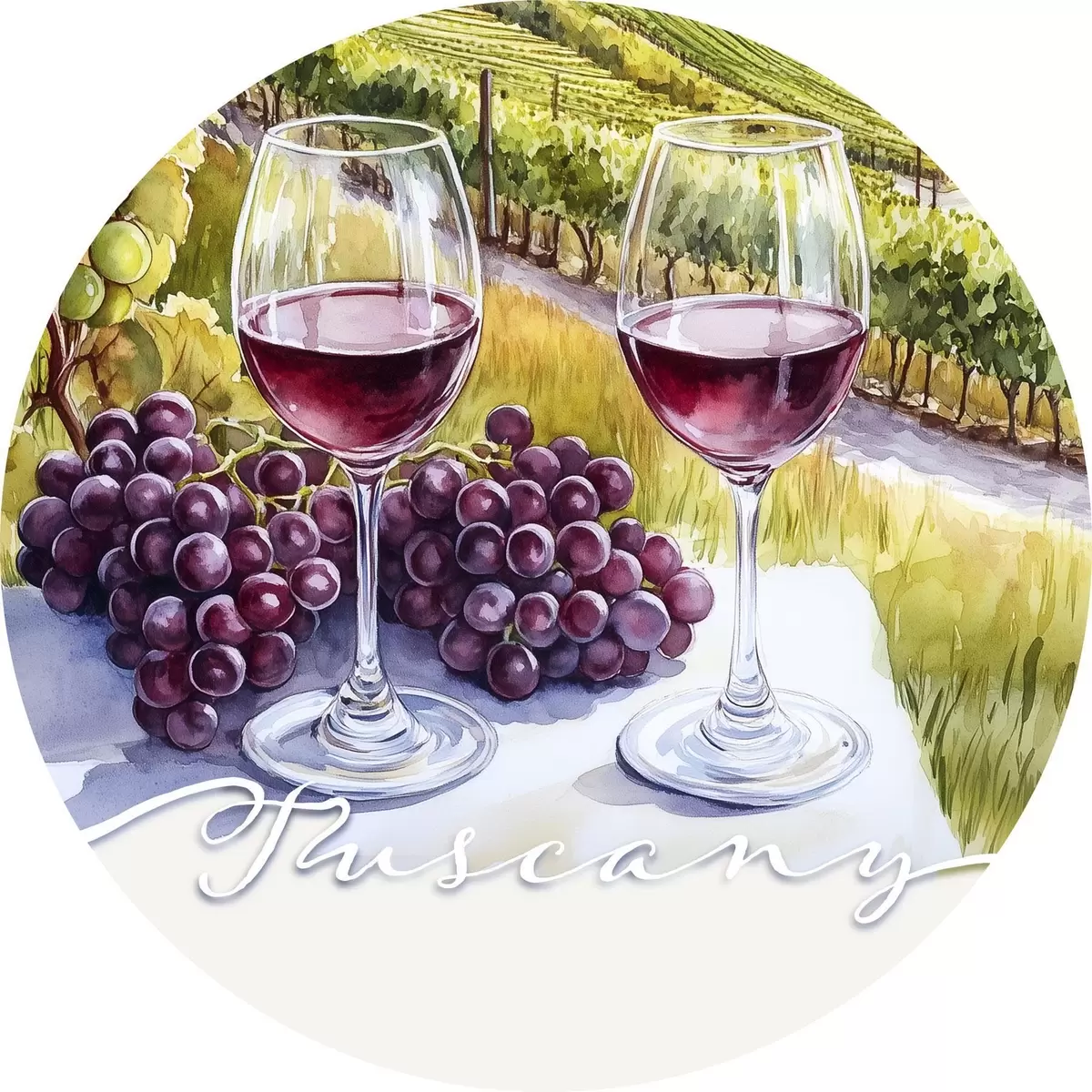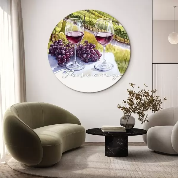 Pilt Toscana maastikud, akvarellistiil, veiniklaasid, viinamarjad, päikeseloojang Nr r42439