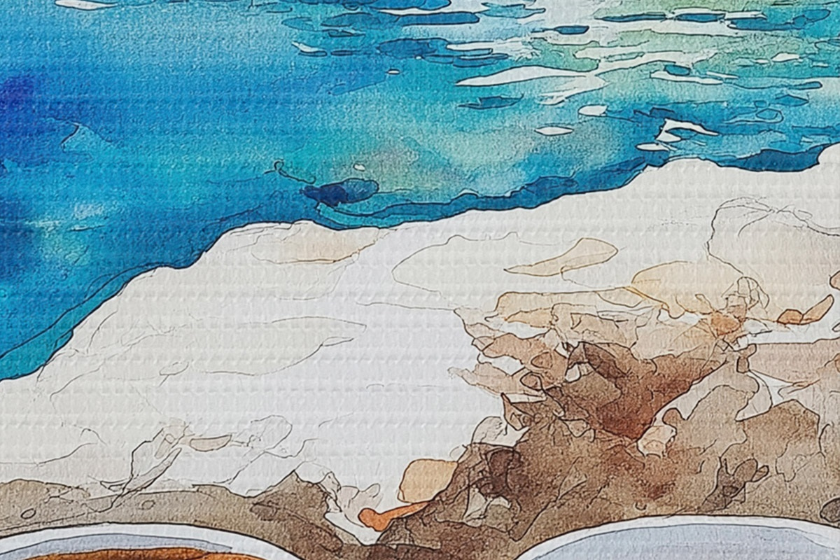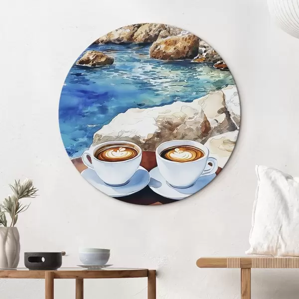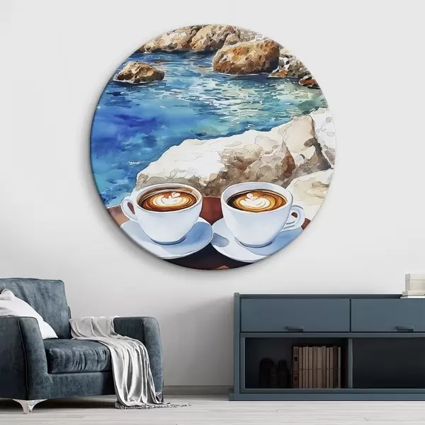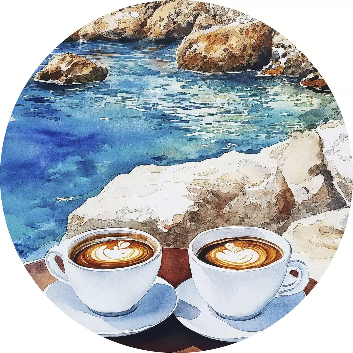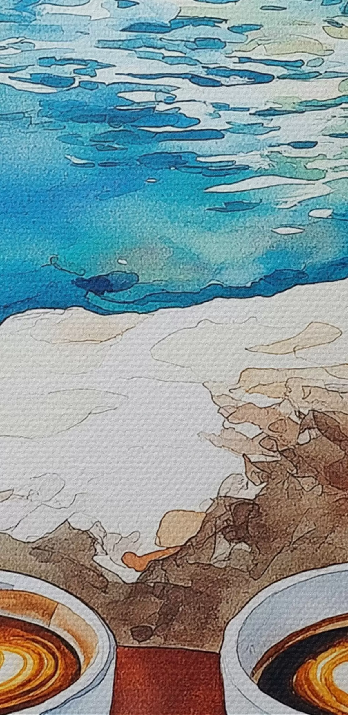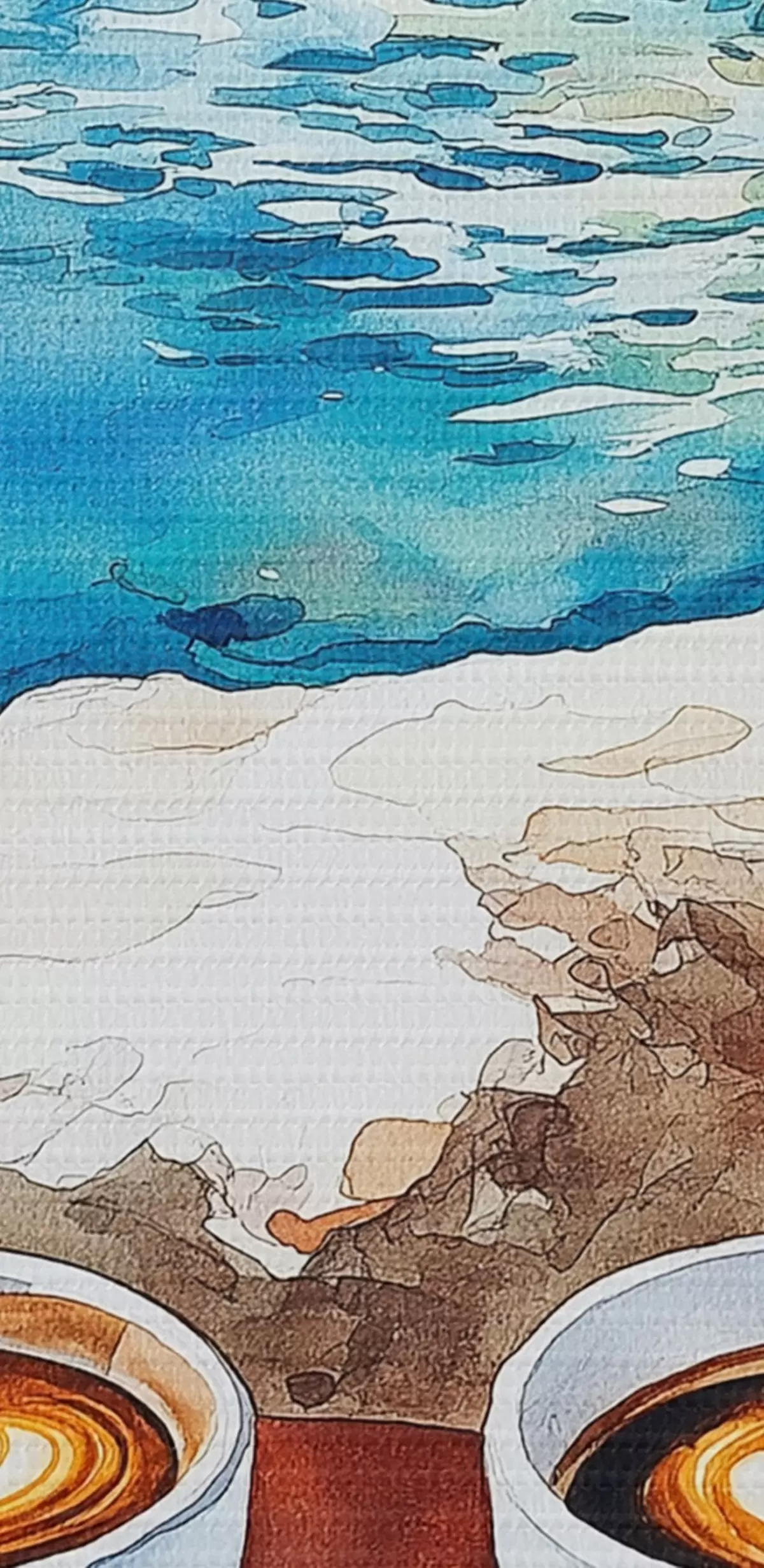 Pilt Akvarell mere ääres koos kohvitassidega, suvi Nr r42449