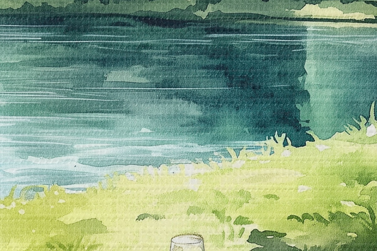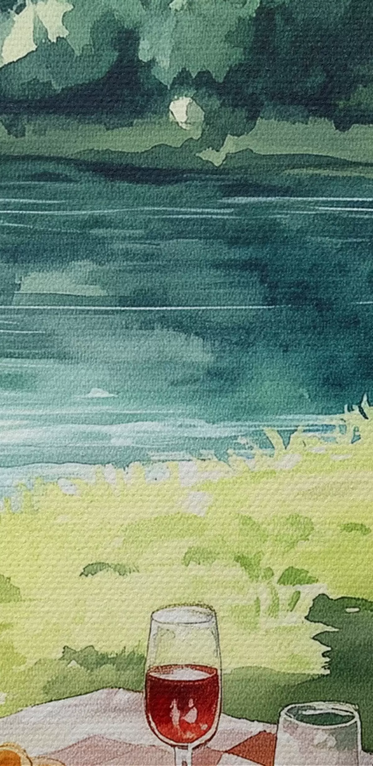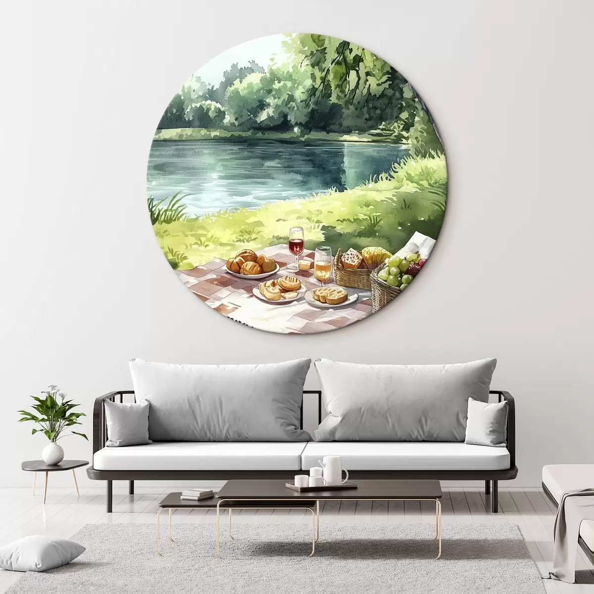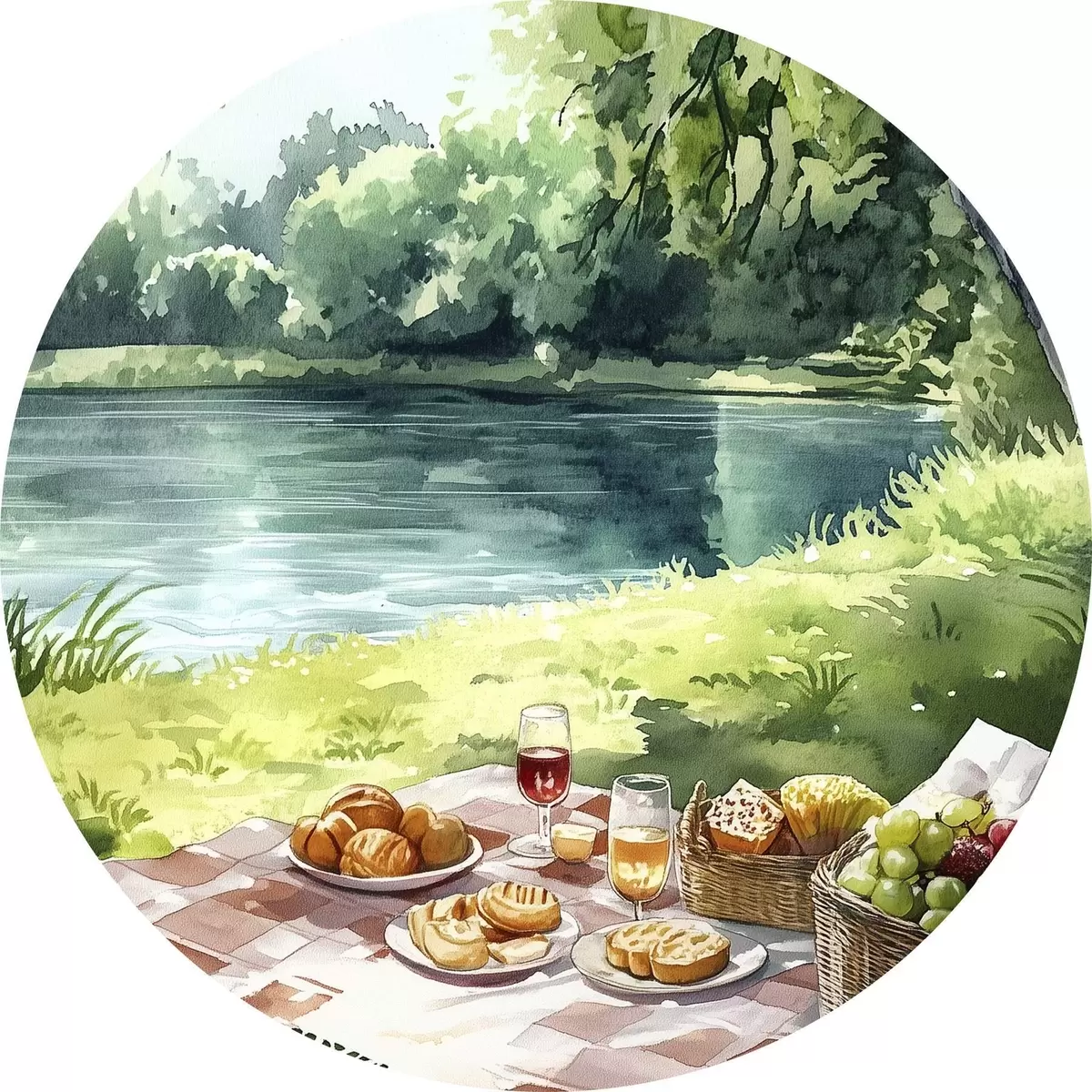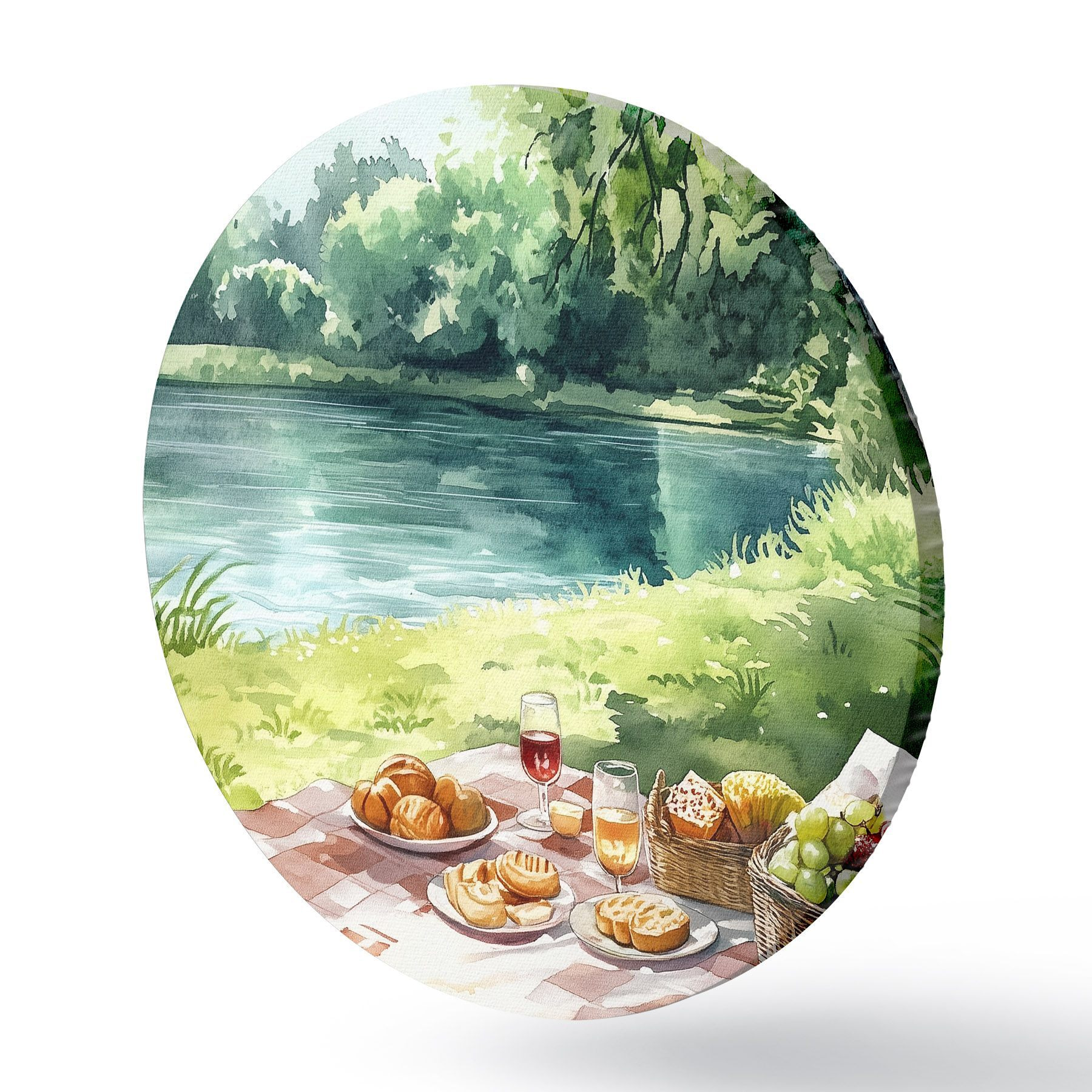 Pilt Kaunis romantiline piknik suvise järve ääres, puuviljad, rohelus Nr r42451