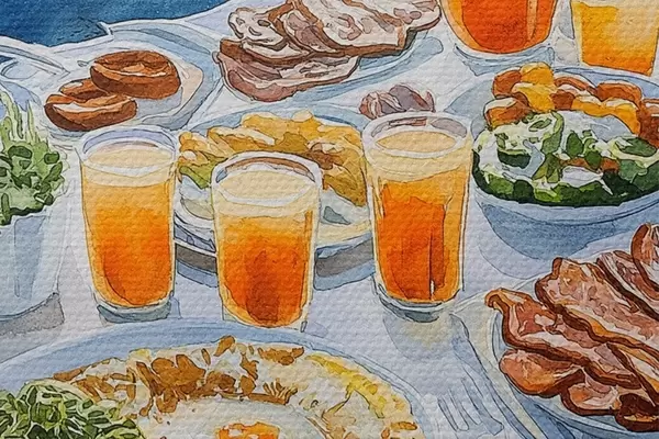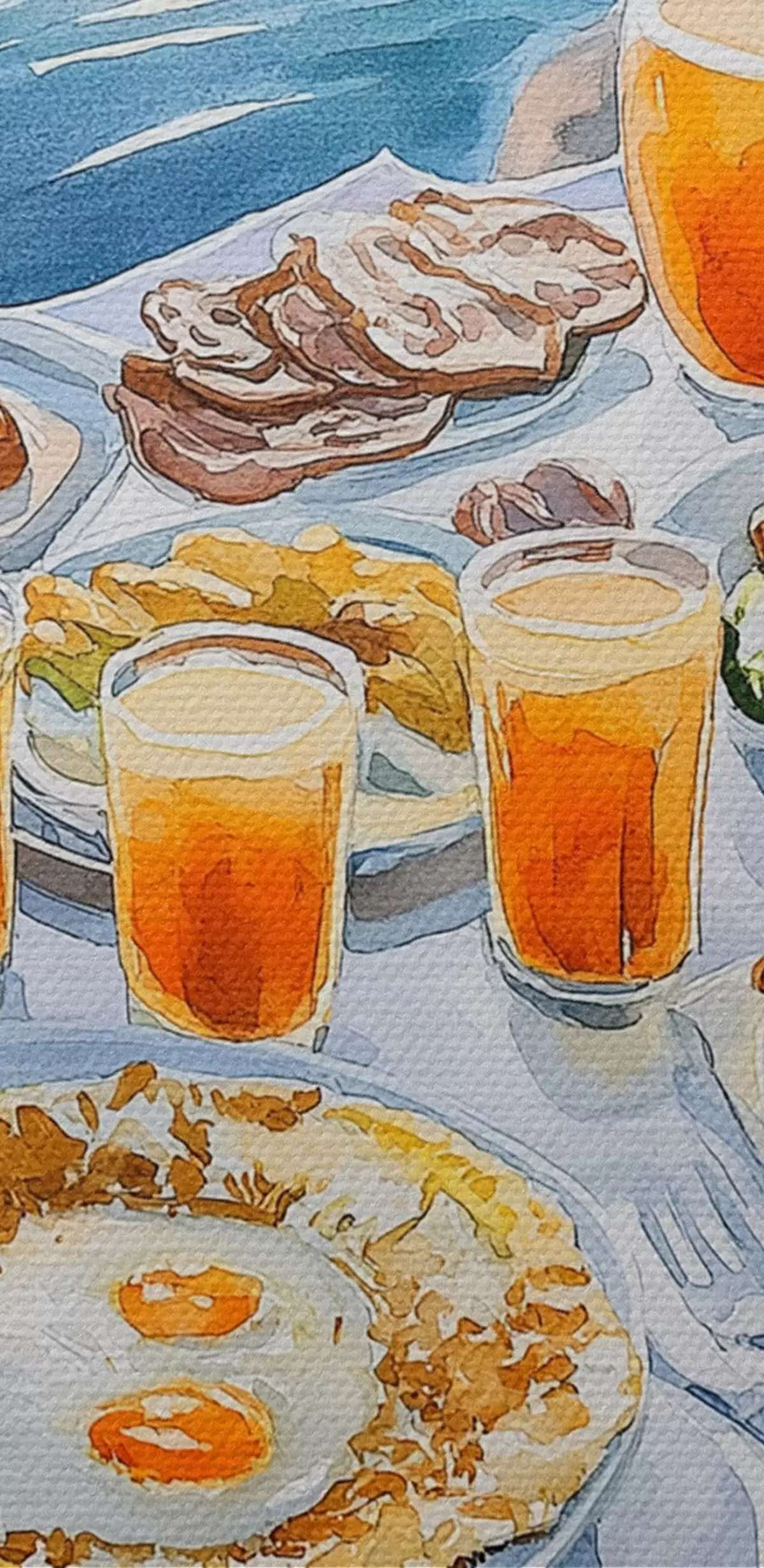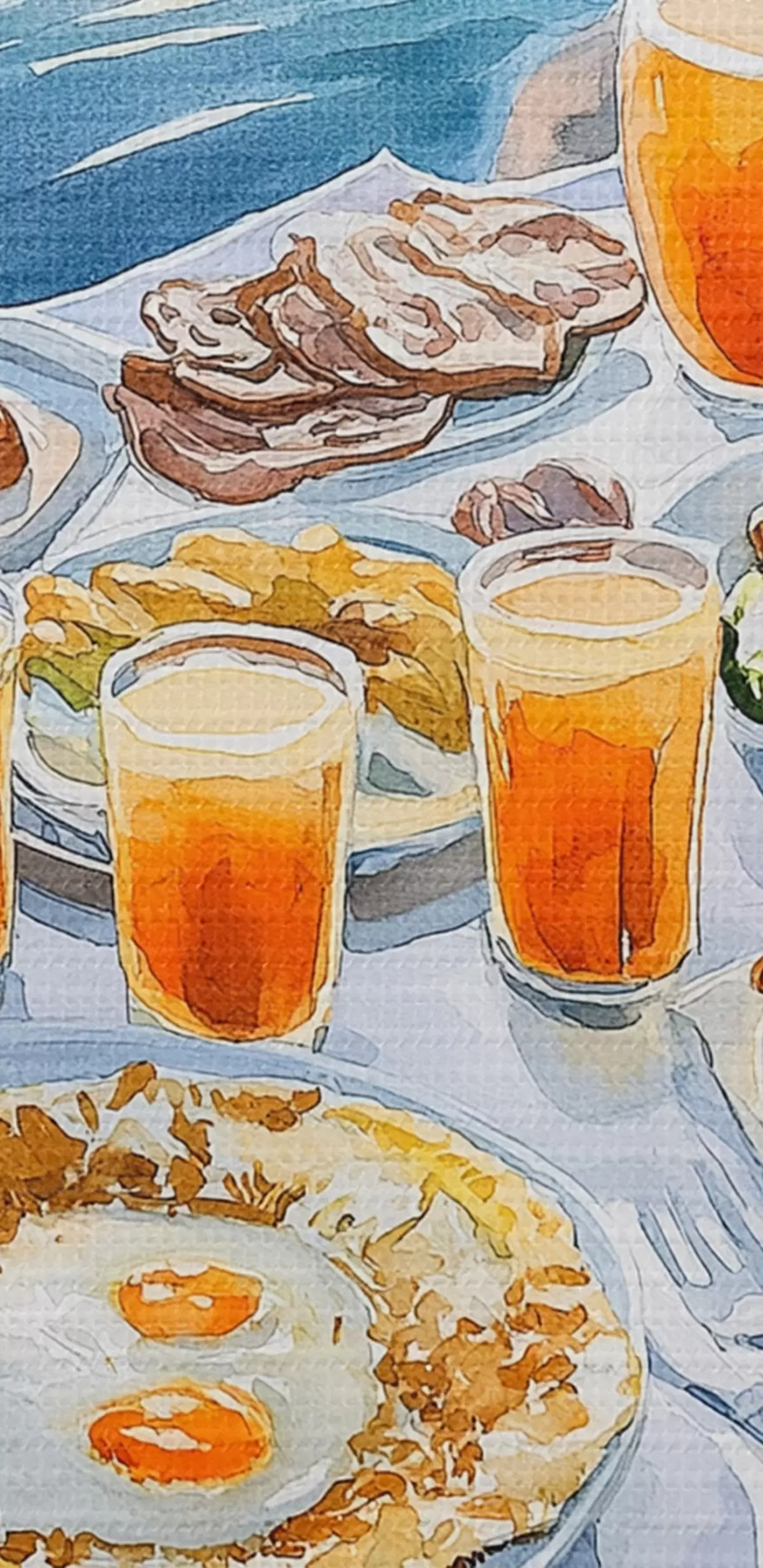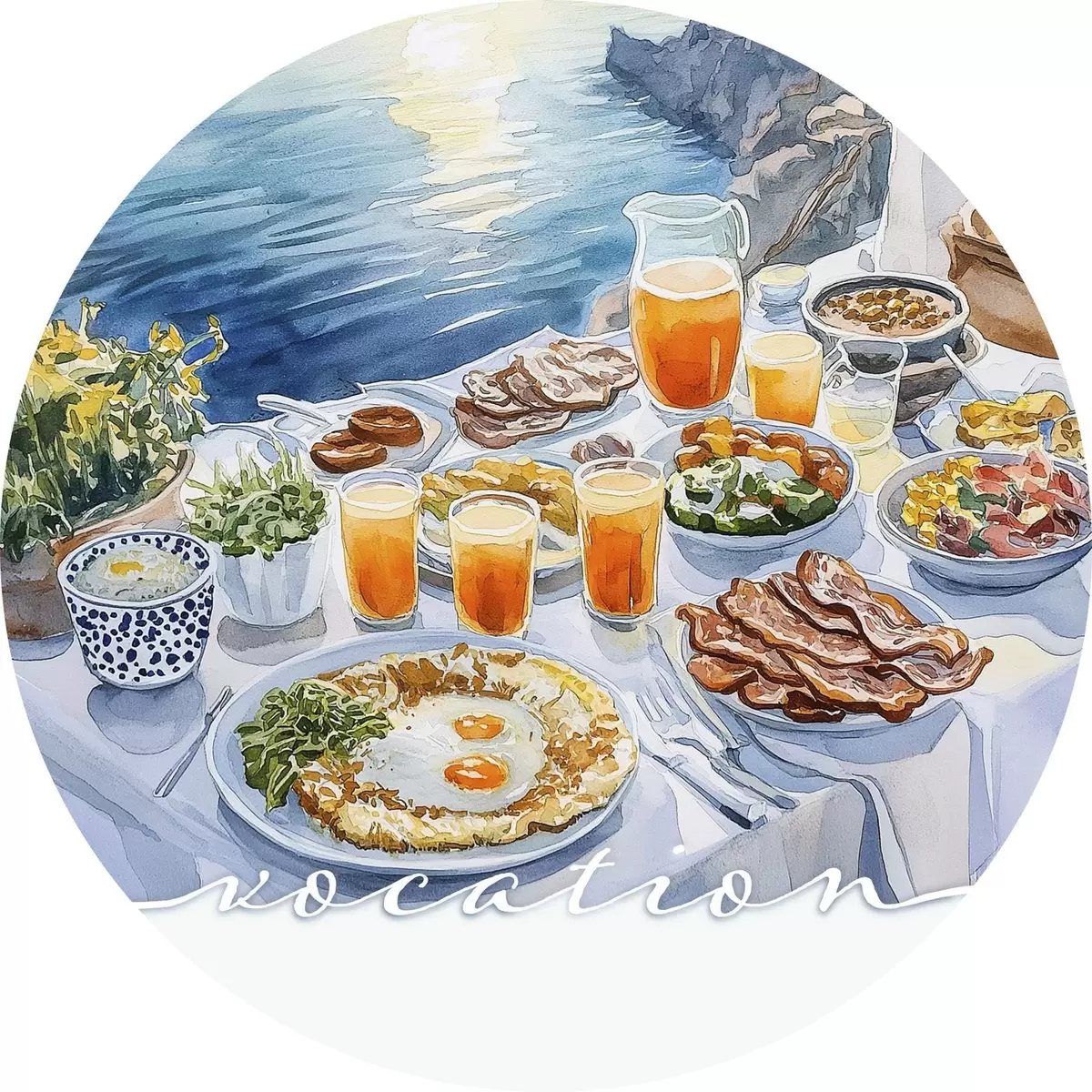 Pilt Romantiline kutsumus Kreekas, akvarellstiilis, hommikusöök, päikesetõus Nr r42453