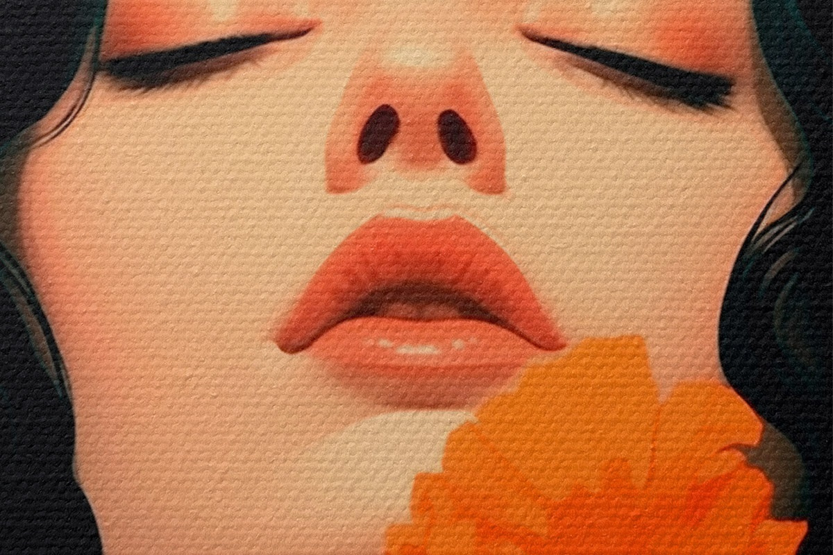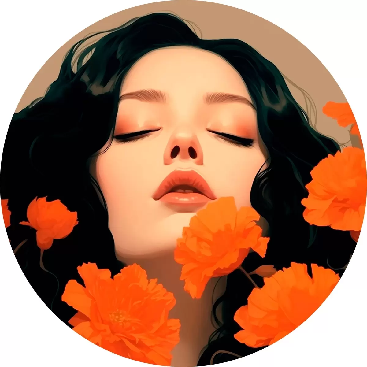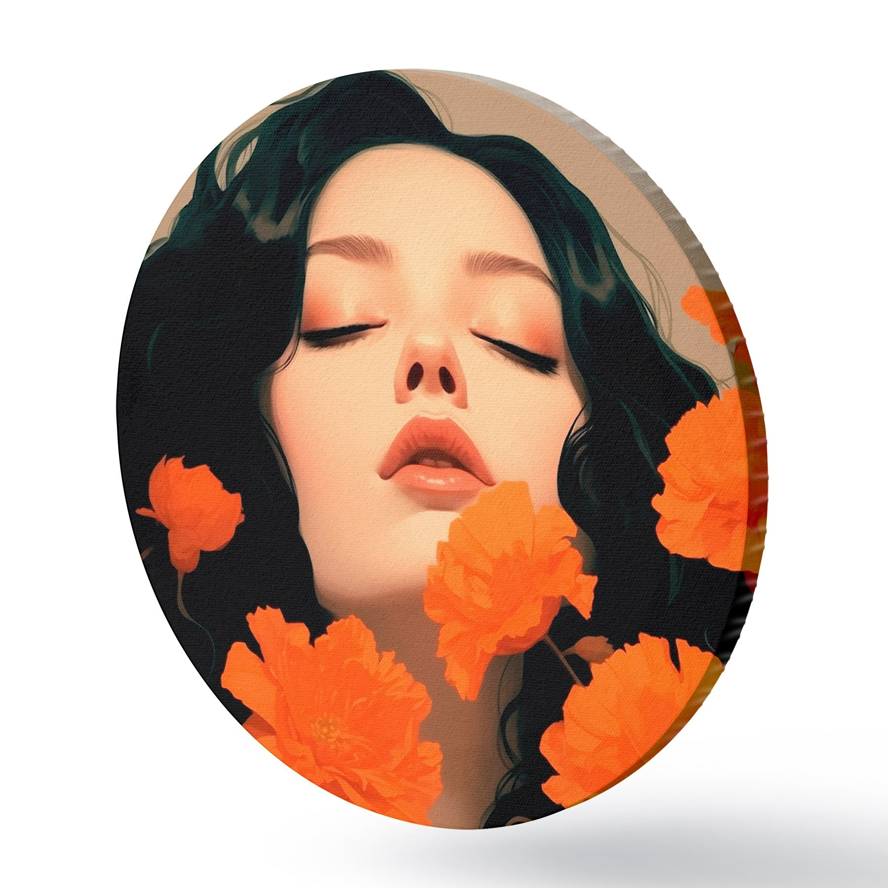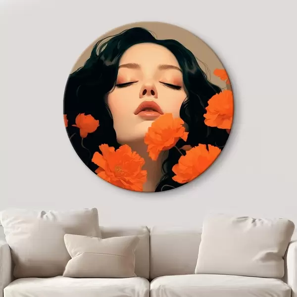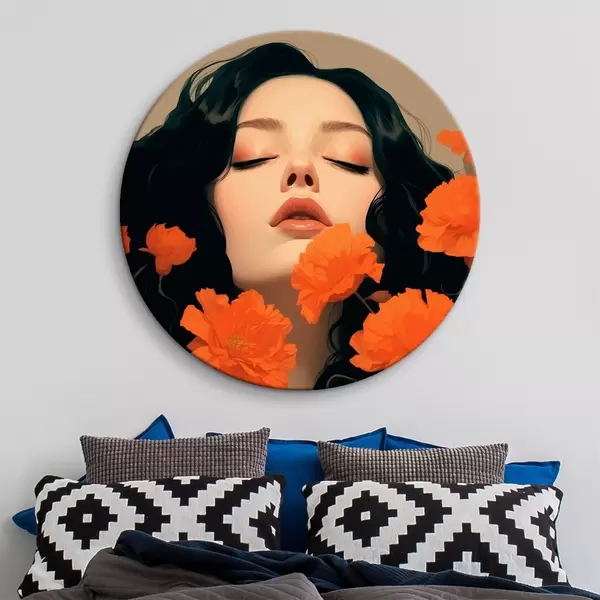 Pilt Naise portree punaste lillede vahel Nr r42478