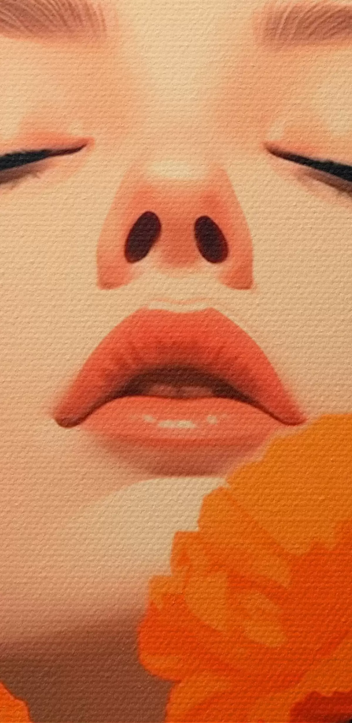 Selle lõuendi peenike niidipunus meenutab professionaalse kunstniku lõuendi pinda.