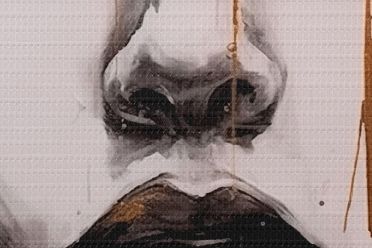 Selle lõuendi peenike niidipunus meenutab professionaalse kunstniku lõuendi pinda.